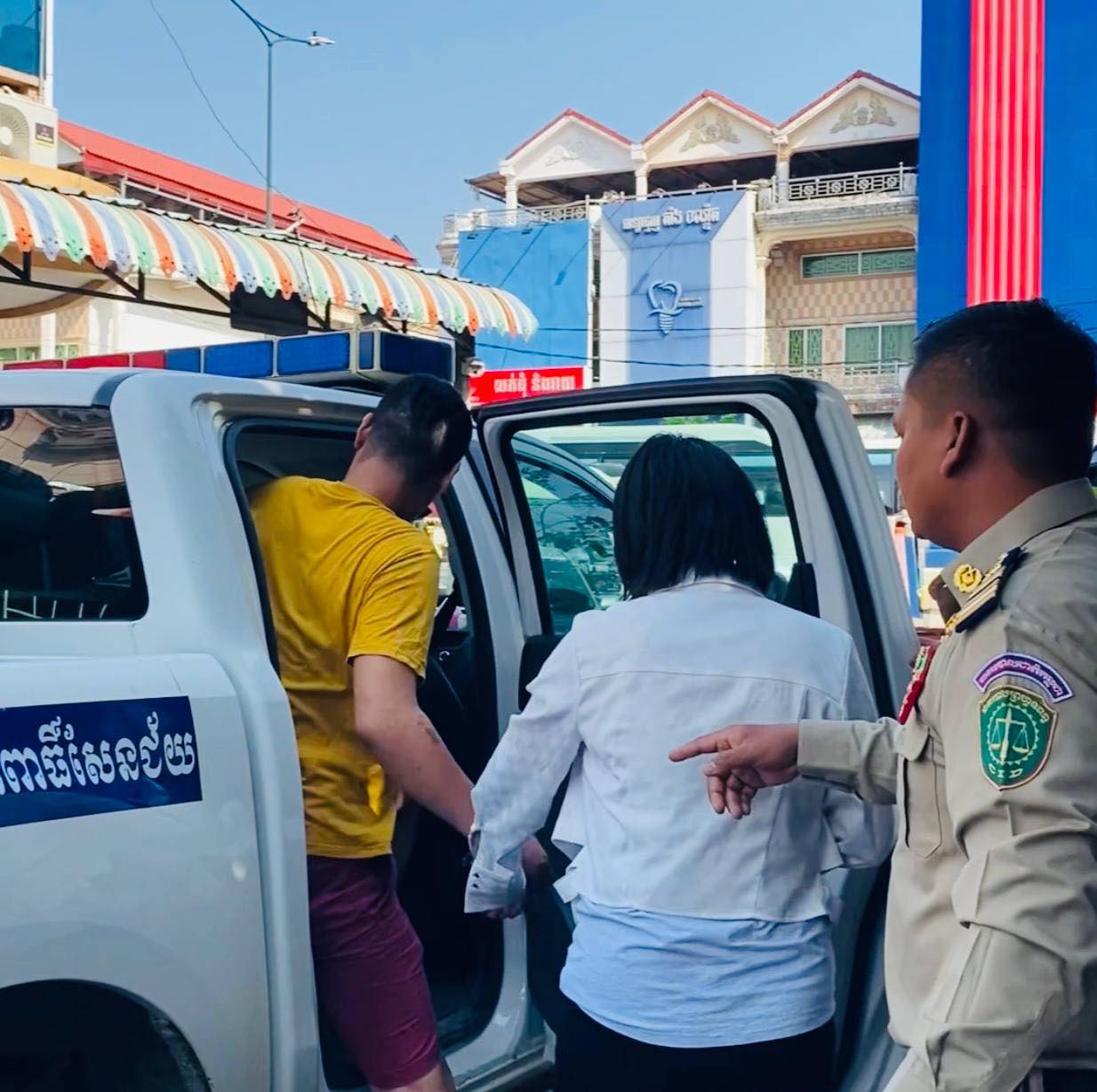 ជនសង្ស័យដែលត្រូវនគរបាលឃាត់ខ្លួនបាន២នាក់នោះទី១/ ឈ្មោះ Xen Gang ភេទប្រុសអាយុ៣៦ឆ្នាំ ជនជាតិចិន ទី២/ ឈ្មោះ Zhu Zhan Shan ភេទស្រី អាយុ៣៨ឆ្នាំ ជនជាតិចិន អ្នកទាំង២នេះស្នាក់នៅផ្ទះលេខ២១ ភូមិអណ្តូងតាអន សង្កាត់សំរោងក្រោម ខណ្ឌពោធិ៍សែនជ័យ រាជធានីភ្នំពេញ និងបក្ខពួកដែលកំពុងគេចខ្លួនមិនត្រូវបានស្គាល់អត្តសញ្ញាឡើយទេ ។