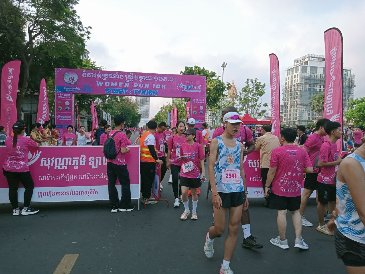 រាជធានីភ្នំពេញ ៖ ព្រឹត្តិការណ៍រត់ប្រណាំងស្ដ្រីចម្ងាយ១០គីឡូម៉ែត្រ (Women Run 10K) លើកទី៥ ដើម្បីអបអរទិវាអន្តរជាតិនារីធ្វើឡើងនៅមុខវត្តបទុមវតីកាលពីព្រឹកថ្ងៃទី៨ ខែមីនា ឆ្នាំ២០២៦ មានកីឡាករ កីឡាការិនីចូលរួមប្រមាណជាង៤ពាន់នាក់។ នេះបើតាមការឱ្យដឹងពីលោកសែម ផល្លា នាយកប្រតិបត្តិរៀបចំព្រឹត្តិការណ៍កីឡាម៉ារ៉ាតុងអមគណៈកម្មាធិការជាតិអូឡាំពិកកម្ពុជា។