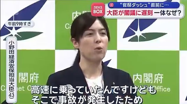 មតិខ្លះលើកឡើងថា «ការមកយឺត៥នាទីរបស់រដ្ឋមន្ត្រីសន្តិសុខសេដ្ឋកិច្ច អូណូដា គឺច្បាស់ណាស់ដោយសារតែករណីមិនអាចមើលឃើញមុន ព្រោះតែការកកស្ទះចរាចរណ៍បណ្តាលមកពីគ្រោះថ្នាក់លើផ្លូវហាយវេ។ តាមពិតទៅ ជាធម្មតា អូណូដា តែងមកដល់មុន ១៥ ទៅ ២០ នាទី បង្ហាញពីស្មារតីទទួលខុសត្រូវយ៉ាងខ្ពស់របស់នាង។