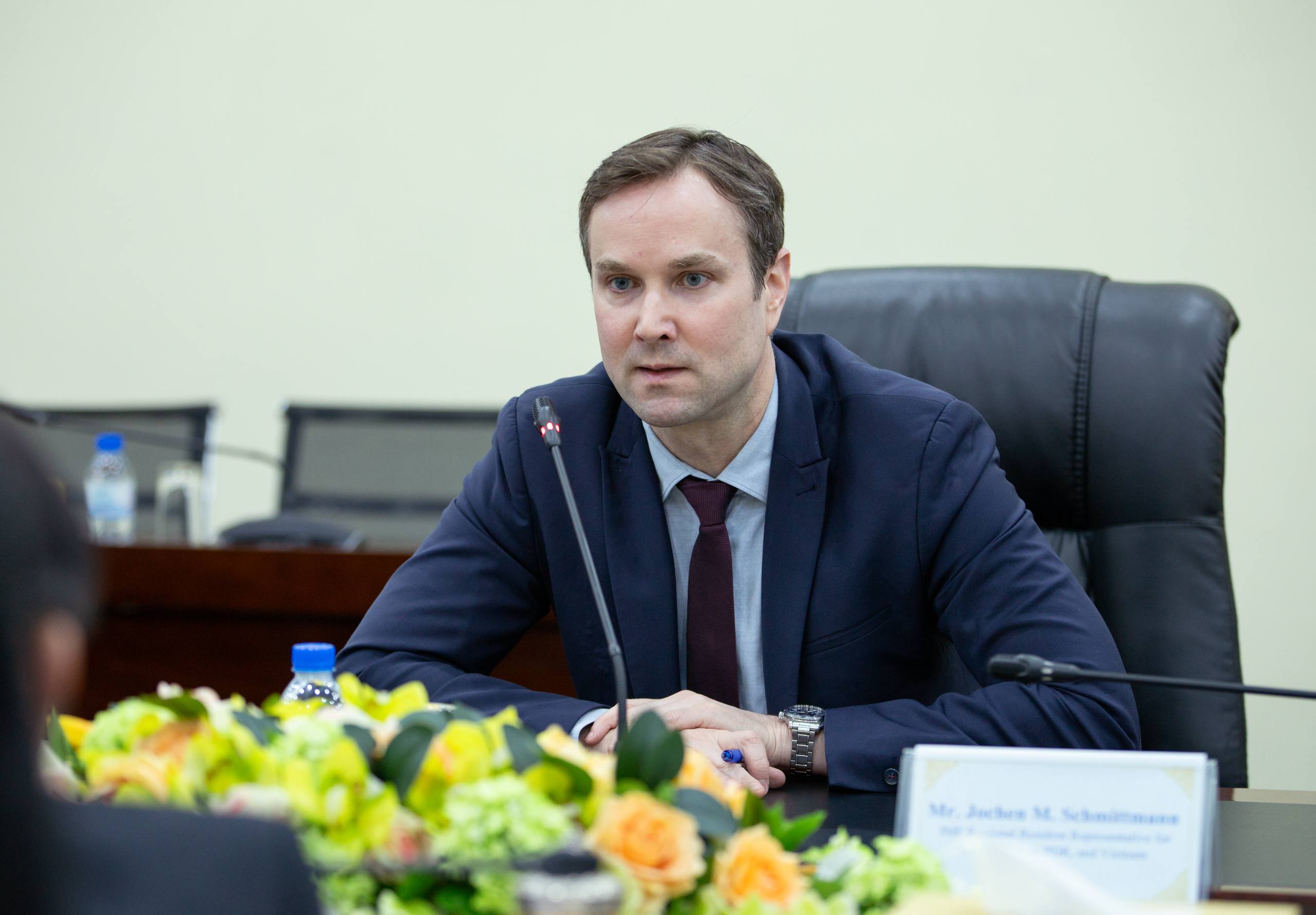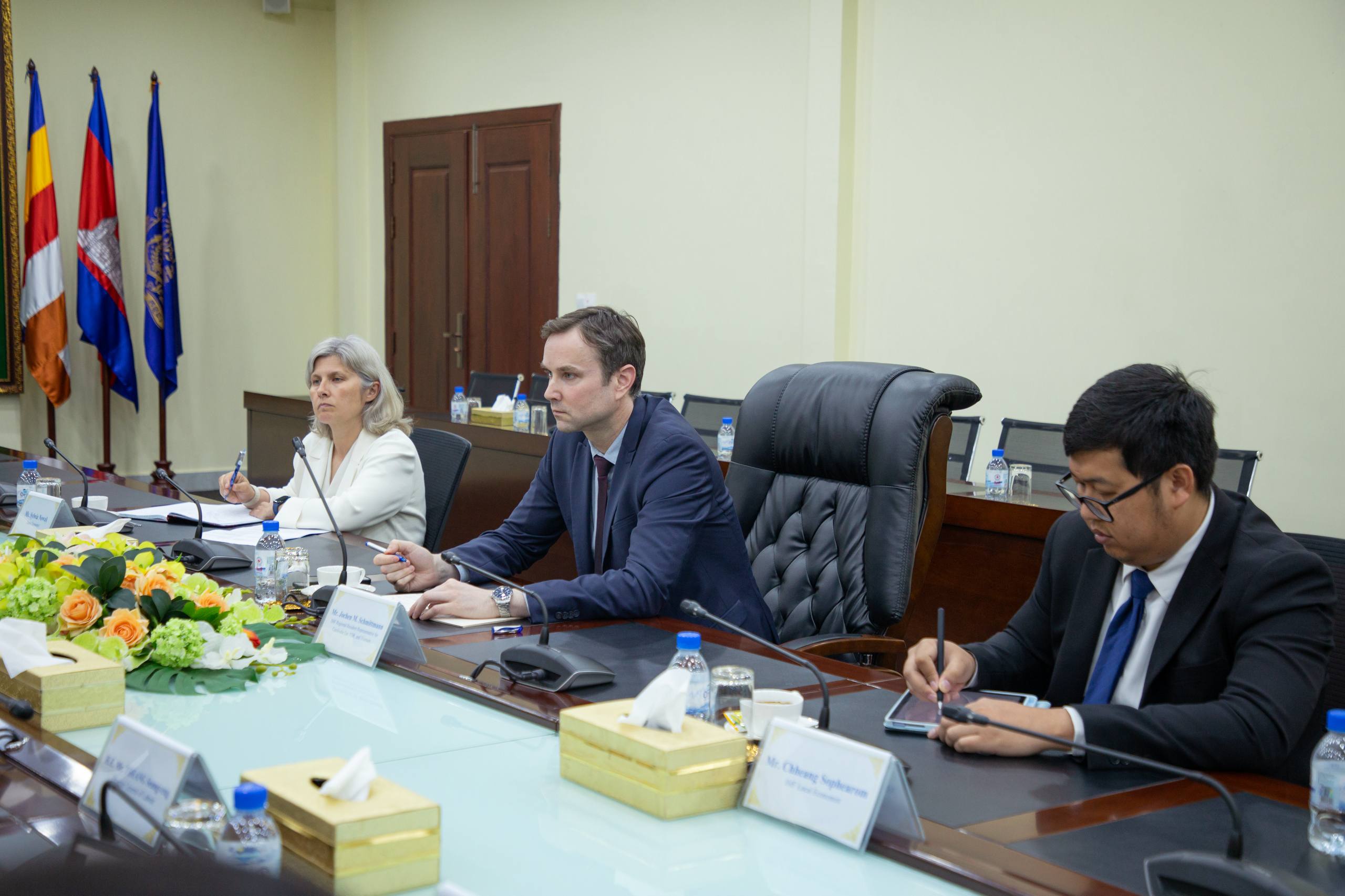 រាជធានីភ្នំពេញ៖ ឯកឧត្ដម ហេង សួរ រដ្ឋមន្ត្រីក្រសួងការងារ និងបណ្ដុះបណ្ដាលវិជ្ជាជីវៈ បានទទួលជួបសម្តែងការគួរសម និងពិភាក្សាការងារជាមួយលោក Jochen M. Schmittmann តំណាងប្រចាំតំបន់របស់មូលនិធិរូបិយវត្ថុអន្តរជាតិ (IMF) សម្រាប់កម្ពុជា ឡាវ និងវៀតណាម និងសហការី នាថ្ងៃចន្ទ ទី៩ ខែមីនា ឆ្នាំ២០២៦ នៅទីស្តីការក្រសួង ដើម្បីធ្វើបច្ចុប្បន្នភាពការងារ ផ្លាស់ប្តូរយោបល់លើការស្រូបទាញកម្លាំងពលកម្ម ការអភិវឌ្ឍជំនាញ ជាពិសេស ការធ្វើសមាហរណកម្មពលករទេសន្តរប្រវេសន៍មកពីប្រទេសថៃ ។