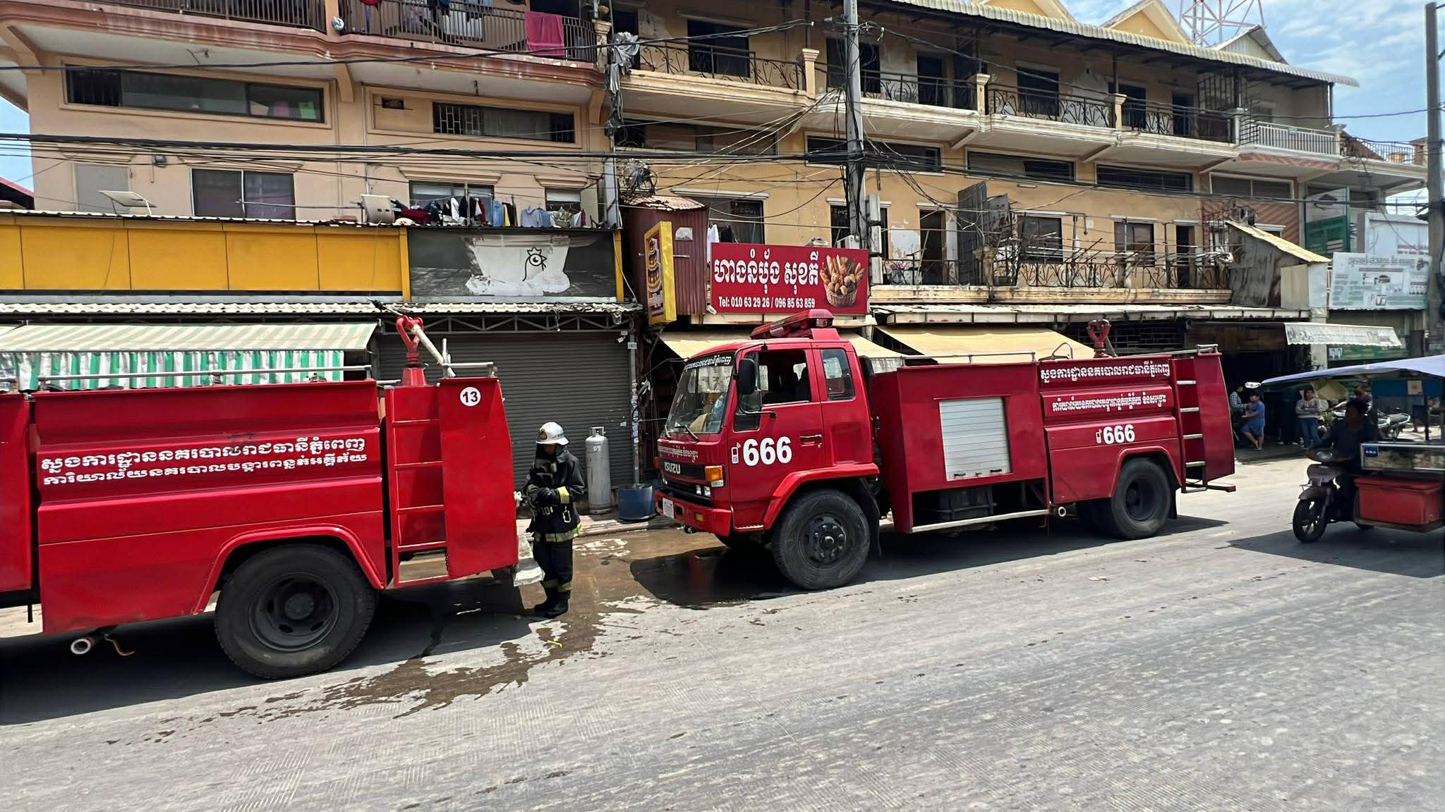 រាជធានីភ្នំពេញ ៖ ព្រះអគ្គិបានឆាបឆេះទូចំហុយកម្ដៅសាច់ប៉ាតេនៅក្នុងសិប្បកម្មផលិតសាច់ប៉ាតេនិងប្រហិតខ្នាតតូចគ្មានស្លាកយីហោមួយកន្លែង ដែលបង្កឡើងដោយការធ្លាយទុយោហ្គាស់ទូចំហុយនោះ ។ នៅពេលមានការឆាបឆេះភ្លាម ម្ចាស់សិប្បកម្មនិងកម្មករ បាននាំគ្នាយកបំពង់ពន្លត់អគ្គិភ័យបាញ់ពន្លត់ ប៉ុន្តែភ្លើងអត់រលត់នោះឡើយ រហូតរថយន្តពន្លត់អគ្គិភ័យ២គ្រឿងទៅដល់បាញ់ទឹកពន្លត់អស់១រថយន្ត ទើបភ្លើងរលត់ទៅវិញទាំងស្រុង ។