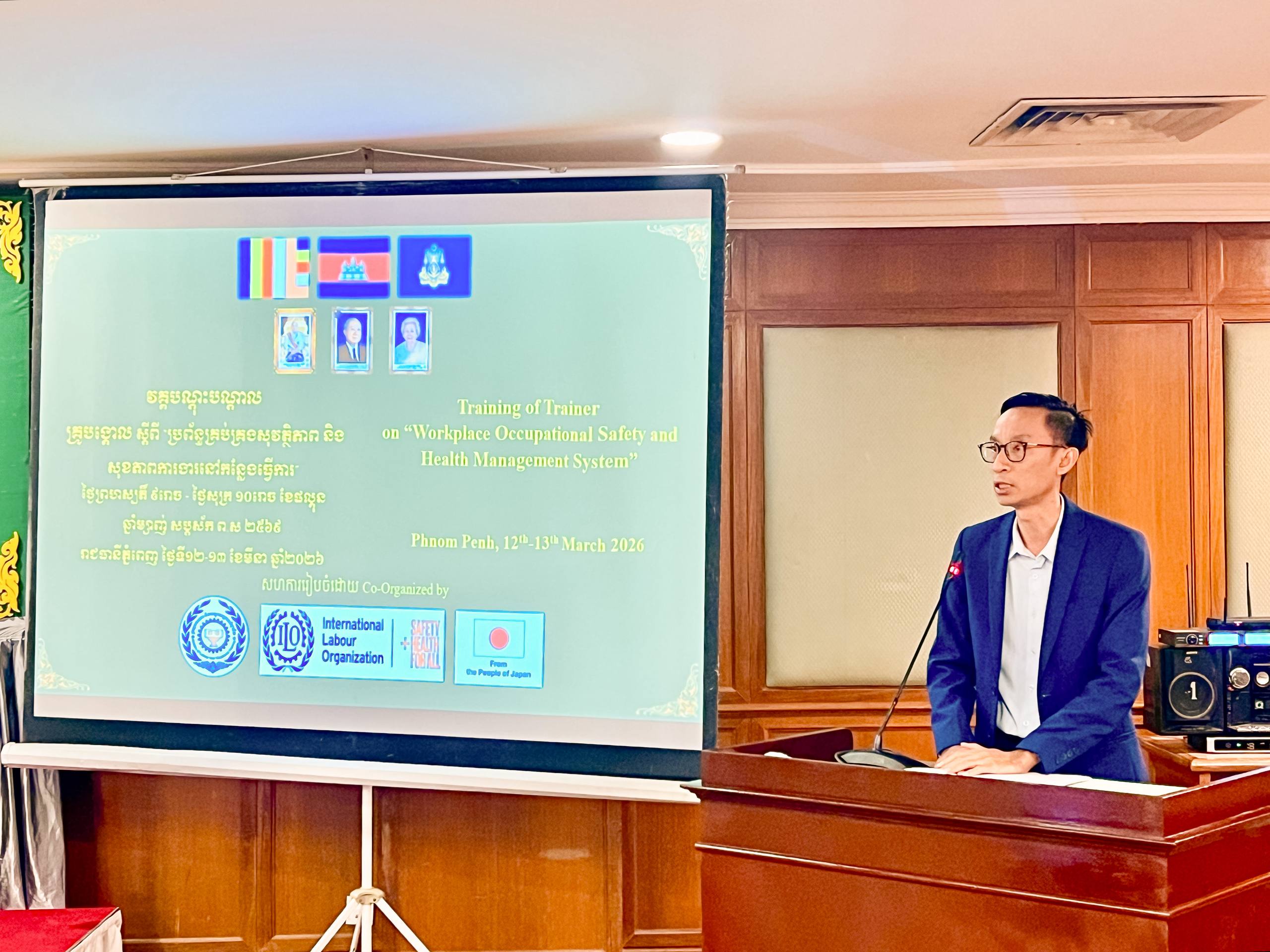 រាជធានីភ្នំពេញ ៖ នាព្រឹកថ្ងៃទី១២ ខែមីនា ឆ្នាំ២០២៦ វិទ្យាស្ថានជាតិការងារ នៃក្រសួងការងារ និងបណ្តុះបណ្តាលវិជ្ជាជីវៈ សហការជាមួយគម្រោង ILO-Japan នៃអង្គការអន្តរជាតិខាងការងារ ដើម្បីបើកវគ្គបណ្តុះបណ្តាលគ្រូបង្គោលស្តីពី «ប្រព័ន្ធគ្រប់គ្រងសុវត្ថិភាព និងសុខភាពការងារនៅកន្លែងធ្វើការ»។ កម្មវិធីនេះត្រូវបានរៀបចំឡើងសម្រាប់អធិការការងារ អធិការពេទ្យការងារ និងមន្ត្រីជំនាញ ក្រោមអធិបតីភាព ឯកឧត្តម លឹម ស៊ុយហុង អនុរដ្ឋលេខាធិការ នៃក្រសួងការងារ និងបណ្តុះបណ្តាលវិជ្ជាជីវៈ ។