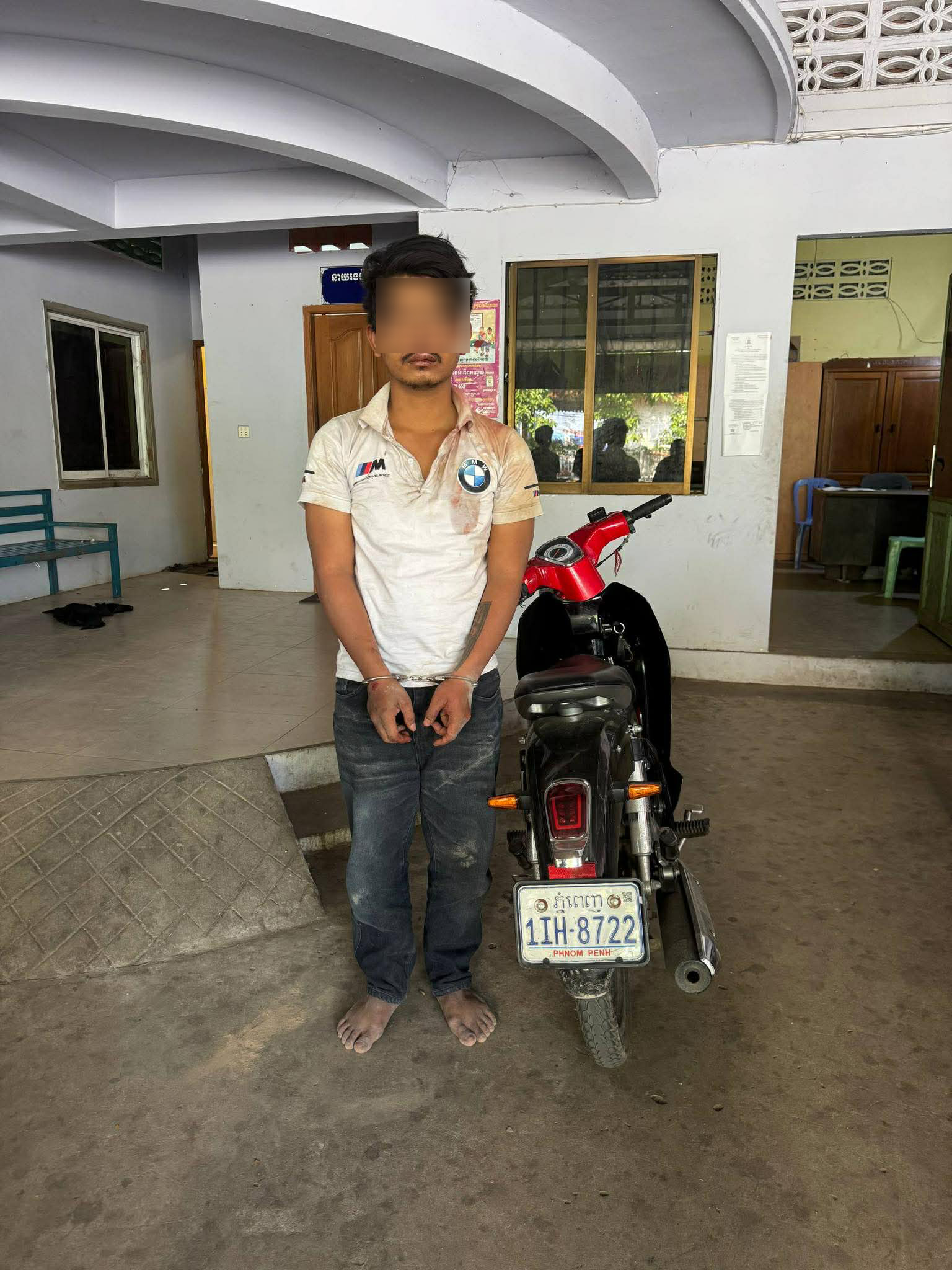 នគរបាលបានប្រាប់ឲ្យដឹងថា នៅថ្ងៃកើតហេតុ ជនរងគ្រោះបានអូសម៉ូតូរបស់ខ្លួនខាងលើចេញពីក្នុងផ្ទះមកទុកនៅខាងមុខផ្ទះដោយភ្លេចដកកូនសោចេញ រួចក៏បានដើរត្រលប់ចូលទៅក្នុងផ្ទះវិញ ។ ខណៈនោះស្រាប់តែជនសង្ស័យបានដើរទៅលួចយកជិះចេញគេចខ្លួន ប៉ុន្តែត្រូវបានជនរងគ្រោះឃើញទាន់ក៏បានស្រែកឆោឡោថា«ចោរៗ»ហើយបងប្រុសជីដូនមួយរបស់ជនរងគ្រោះម្នាក់ បានជិះម៉ូតូដេញតាម ។