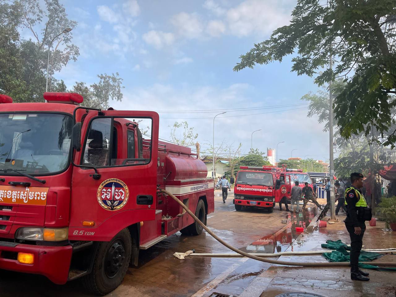 ដោយមានកម្លាំងសហការពីមន្ទីរសម្ភារៈបច្ចេកទេសជាមួយកងអន្តរាគមន៍ និងកងរាជអាវុធហត្ថក្រុង សរុប២៤នាក់ មានរថយន្តពន្លត់អគ្គិភ័យចំនួន២គ្រឿង រថយន្តពន្លត់អគ្គិភ័យរបស់ស្នងការដ្ឋាននគរបាលខេត្តសៀមរាប៣គ្រឿង រថយន្តពន្លត់អគ្គិភ័យផ្សារចាស់១គ្រឿងចេញអន្តរាគមន៍យ៉ាងក្ដៅគគុក ។ ការពន្លត់បានជោគជ័យទាំងស្រុងនៅម៉ោង១០និង២០នាទីបានរលត់អស់ទាំងស្រុង ។