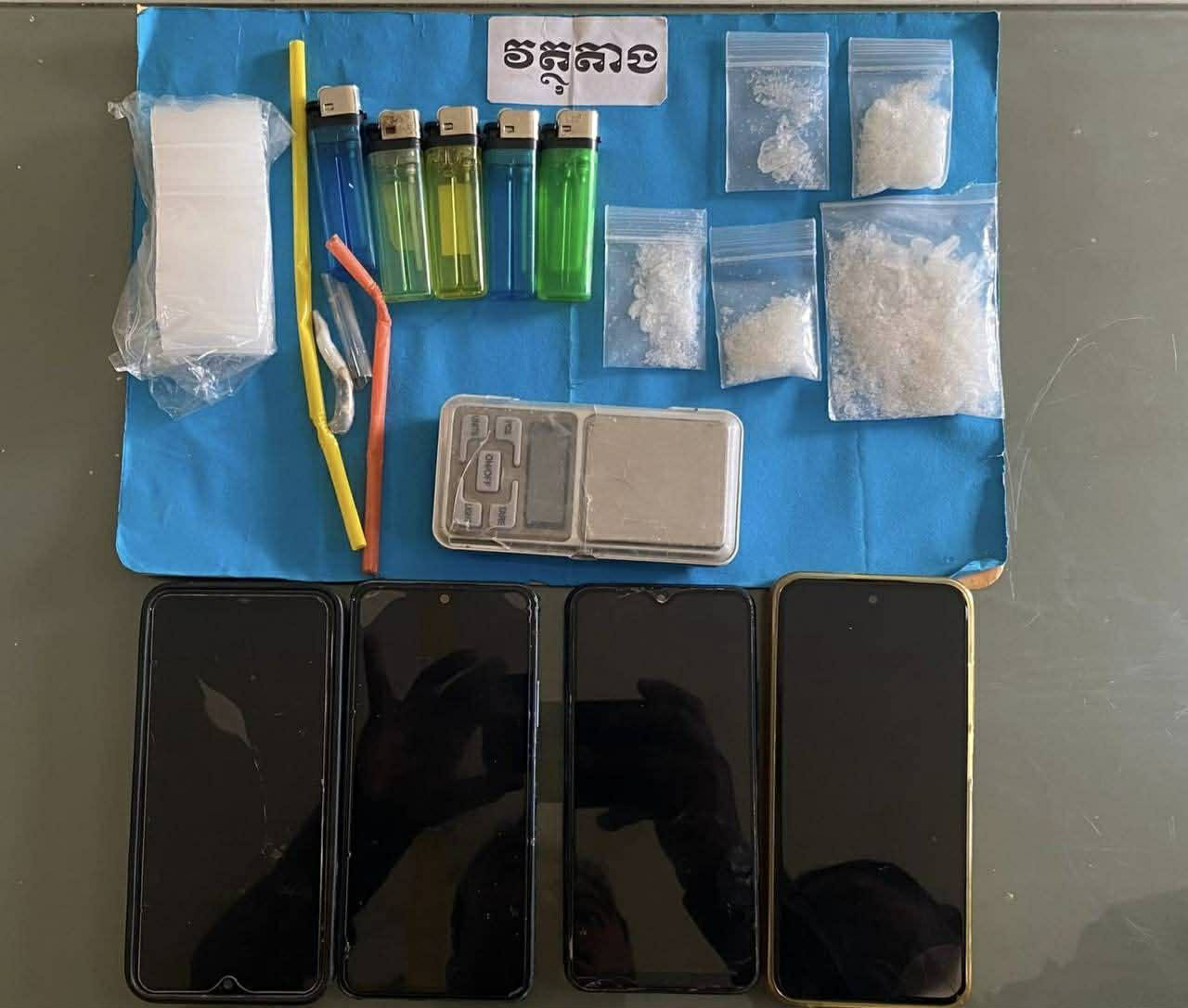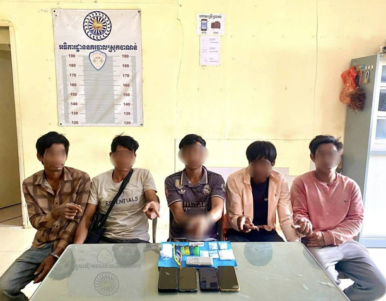 បើតាមរបាយការណ៍ ក្រុមនេះ មានមុខរបរជាជាងធ្វើផ្ទះ តែត្រូវកម្លាំងផ្នែកប្រឆាំងគ្រឿងញៀន ចុះឃាត់ខ្លួនពីបទ «រក្សាទុកនូវសារធាតុញៀនដោយខុសច្បាប់» ខណៈដែលក្រុមជាងផ្ទះនេះ បាននិងកំពុងប្រព្រឹត្តជាក់ស្ដែង ទាំងកណ្ដាលថ្ងៃនៅកន្លែងធ្វើការងារ ។ ជាមួយនឹងការឃាត់ខ្លួនក្រុមជាងធ្វើផ្ទះនេះ មន្ត្រីជំនាញដកហូតបានវត្ថុតាងរួមមាន៖ ថ្នាំញៀនប្រភេទ ICE (ម៉ាទឹកកក) ចំនួន០៥ថង់ ជញ្ជីងសម្រាប់ថ្លឹងថ្នាំញៀនចំនួន០១ ថង់សម្រាប់ច្រកថ្នាំញៀនមួយចំនួន និងសម្ភារសម្រាប់ប្រើប្រាស់ថ្នាំញៀនមួយចំនួនទៀត ។