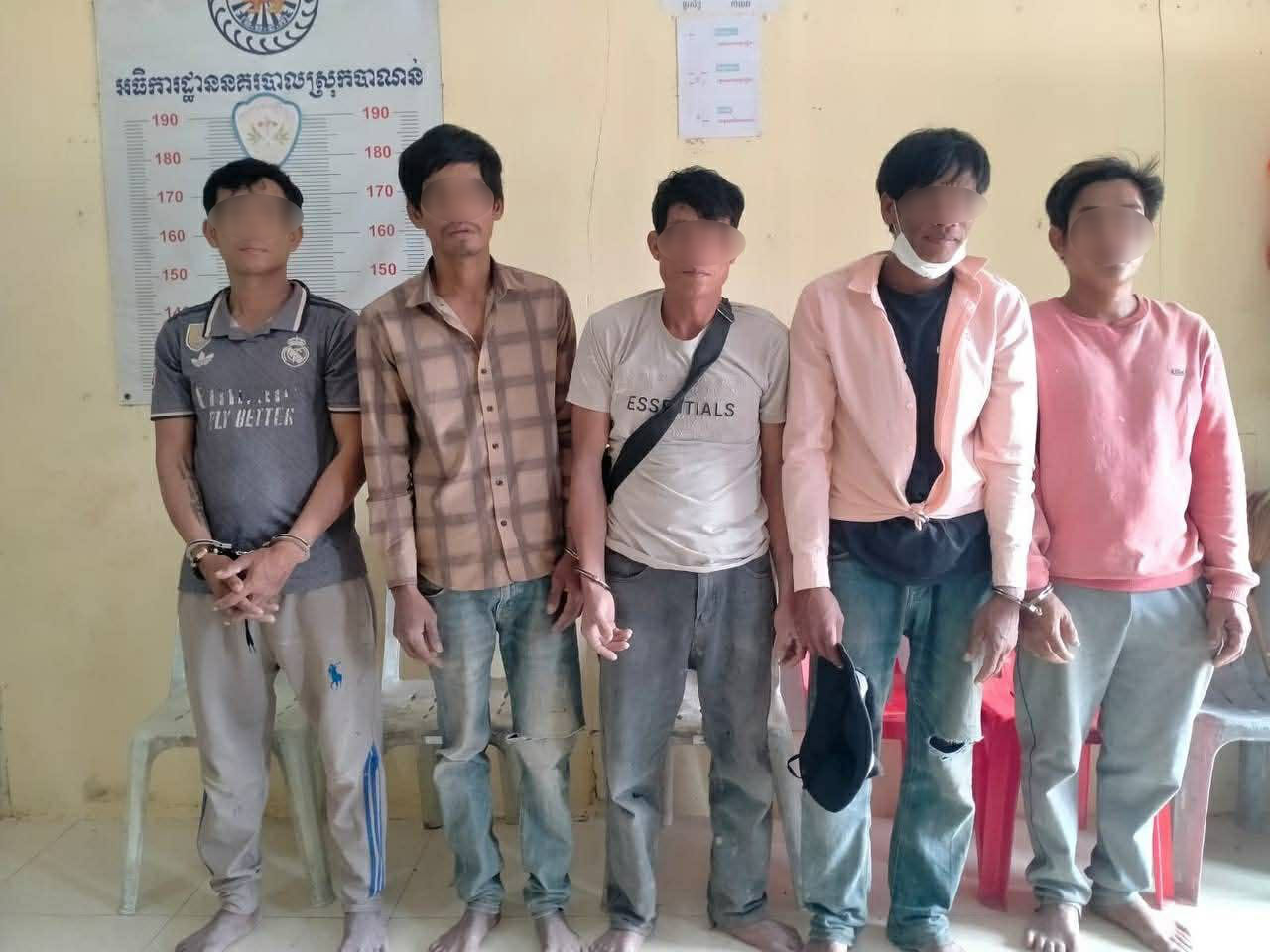យោងតាមរបាយការណ៍មន្ត្រីផ្នែកគ្រឿងញៀននៃអធិការស្រុកបាណន់បានឱ្យដឹងថា ជនសង្ស័យទាំង០៥នាក់ ដែលត្រូវឃាត់ខ្លួនរួមមាន៖ ១-ឈ្មោះ ជ័័យ វិសាល ភេទប្រុស អាយុ៣៩ឆ្នាំ ២-ឈ្មោះ ស៊ុំ មិនា ភេទប្រុស អាយុ៣៨ឆ្នាំ ៣-ឈ្មោះ ធឿន ហ៊ា ភេទប្រុស អាយុ៣៣ឆ្នាំ ៤-ឈ្មោះ រី រ៉េន ភេទប្រុស អាយុ៤០ឆ្នាំ ទាំង០៤នាក់នេះ រស់នៅភូមិទូលច្រនៀង ឃុំបាយដំរាំ ស្រុកបាណន់ និង ៥-ឈ្មោះ សួង ធេន ភេទប្រុស អាយុ៣៥ឆ្នាំ នៅភូមិកំពង់ចែង ឃុំបាយដំរាំ ស្រុកបាណន់ ។
