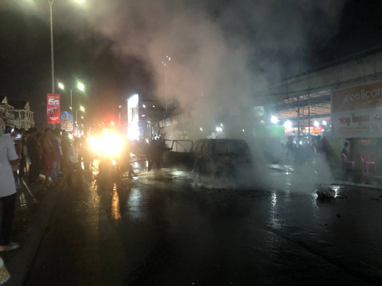 ក្រោយមកក៏កងកម្លាំងមានកងរាជអាវុធហត្ថនឹងកម្លាំងបញ្ជាការពារសាលាសង្កាត់និងប៉ុស្តិ៍រដ្ឋបាលបានបិទផ្លូវវេងស្រេងមួយចំហៀងកន្លែងកើតហេតុ ដើម្បីអោយរថយន្តម៉ូតូទៅធ្វើដំណើរបញ្ច្រាសផ្លូវម្ខាងទៀតជាមួយរថយន្តម៉ូតូដែលធ្វើដំណើរបញ្ច្រាសគ្នាដោយសារសមត្ថកិច្ចការពារសុវត្ថិភាពអ្នកដំណើរគ្រោះដែលអណ្ដាតភ្លើងកំពុងឆេះរថយន្តខ្លាចឆេះប៉ះអ្នកដំណើរទើបសម្រេចបិទចរាចរណ៍មួយចំហៀងរហូតដល់រថយន្តត្រូវបានការិយាល័យជំនាញពន្លត់អគ្គិភ័យបានបាញ់ពន្លត់ទៅវិញ ។