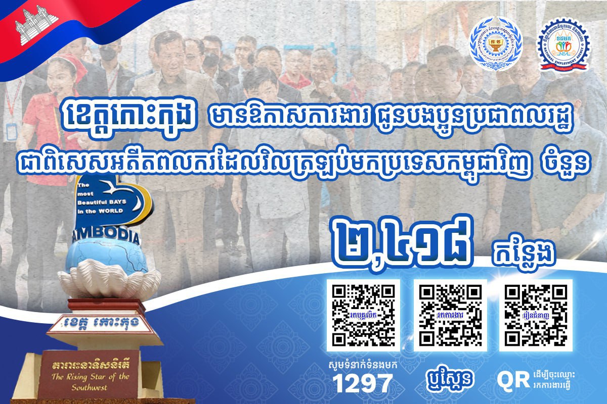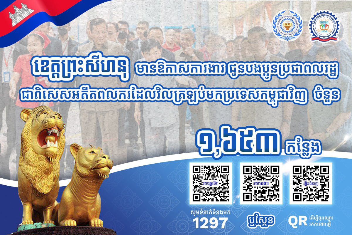 តាមរយៈការផ្សព្វផ្សាយ ក្រសួងការងារ បានឱ្យដឹងថា គិតត្រឹមថ្ងៃទី១៤ ខែមីនា ឆ្នាំ២០២៦នេះ ខេត្តព្រះសីហនុ កំពត កោះកុង និងខេត្តកែប មានឱកាសការងារសរុបចំនួន ៤,០៩០កន្លែង កំពុងរង់ចាំបងប្អូនអតីតពលករត្រឡប់មកពីប្រទេសថៃ និងអ្នកកំពុងស្វែងរកការងារធ្វើ នៅក្នុងវិស័យឧស្សាហកម្ម និងវិស័យសេវាកម្ម ។