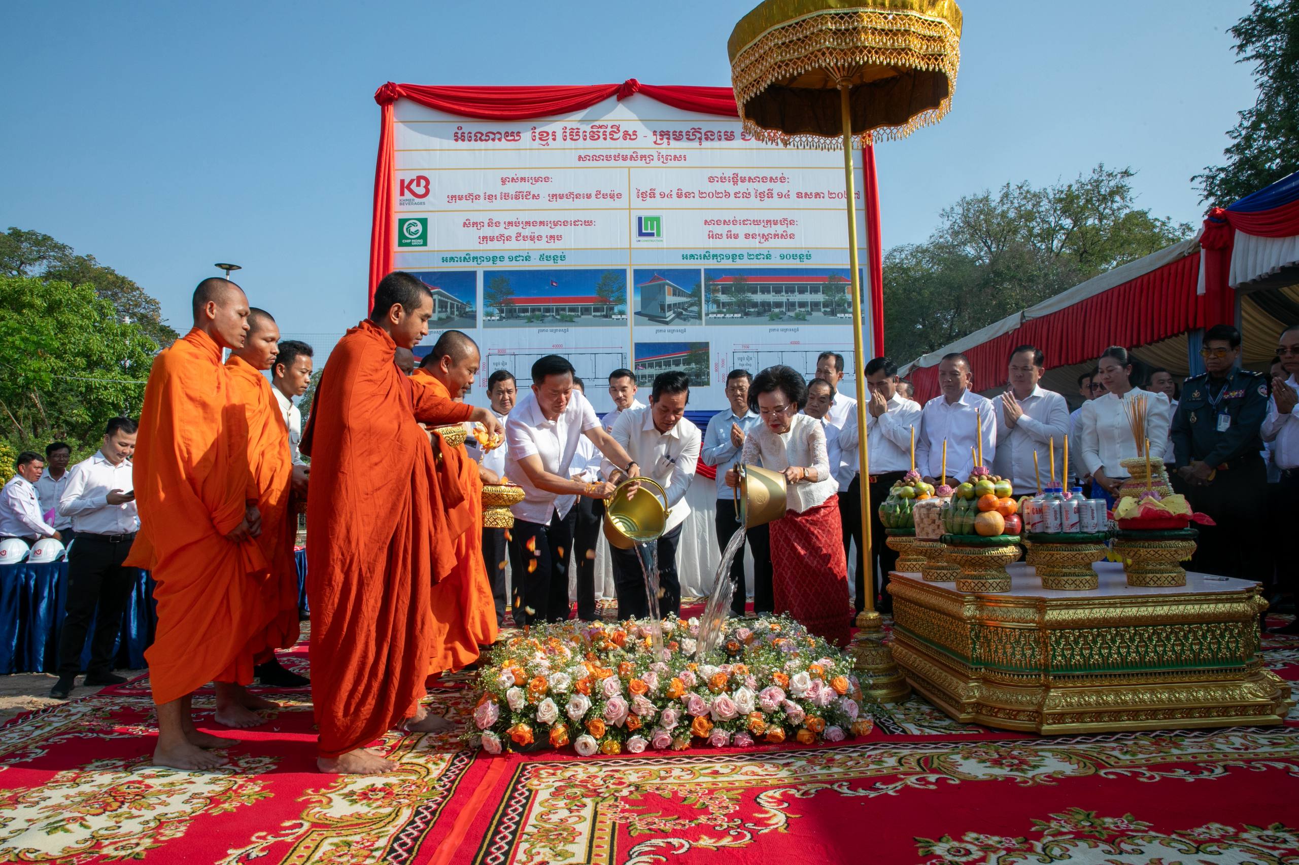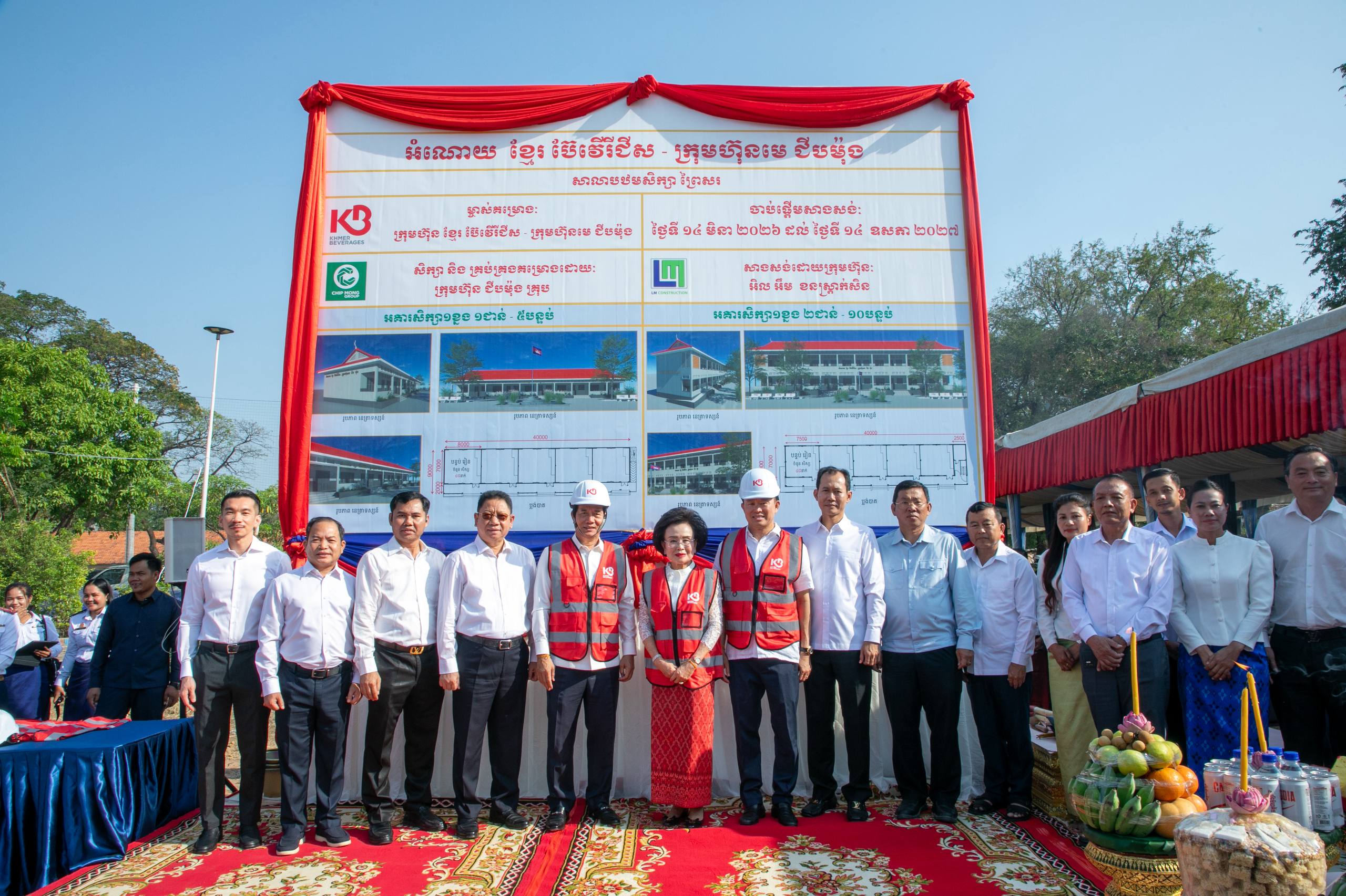 រាជធានីភ្នំពេញ ៖ ក្រោមអធិបតីភាពរបស់ឯកឧត្តម ឃួង ស្រេង អភិបាលរាជធានីភ្នំពេញ លោកអ្នកឧកញ៉ា ភាព ហៀក ស្ថាបនិកក្រុមហ៊ុន ជីប ម៉ុង និងអ្នកឧកញ៉ា លាង ម៉េង សហស្ថាបនិកក្រុមហ៊ុន ខ្មែរ ប៊ែវើរីជីស បានអញ្ជើញចូលរួម ក្នុងពិធីក្រុងពាលី ជាមួយលោកគ្រូ អ្នកគ្រូ សិស្សានុសិស្ស និងមន្ត្រីរាជការជាច្រើនរូប ដើម្បីបើកការដ្ឋានសាងសង់អគារសិក្សា ១ ខ្នង កម្ពស់ ៣ ជាន់ មានចំនួន ១៥ បន្ទប់ ព្រមទាំងរបងសាលា នៅសាលាបឋមសិក្សាព្រៃស ស្ថិតនៅសង្កាត់ព្រៃស ខណ្ឌដង្កោ ដែលជាអំណោយរបស់ក្រុមហ៊ុន ខ្មែរ ប៊ែវើរីជីស ដែលជាពាណិជ្ជកម្មមួយក្រោមក្រុមហ៊ុនមេ ជីប ម៉ុង ។