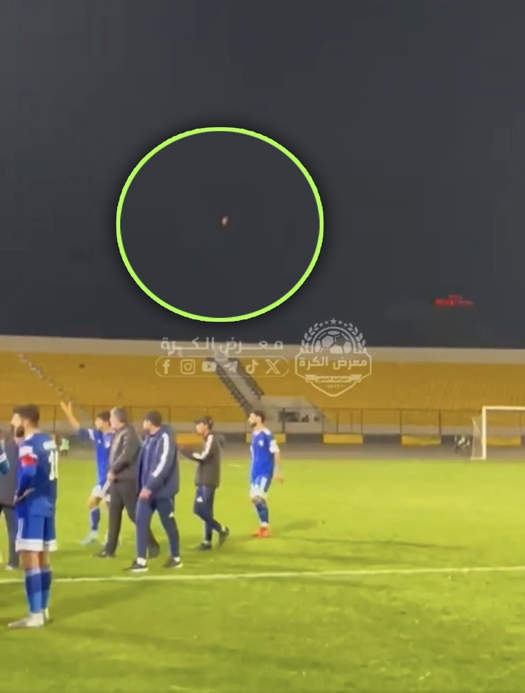 ខណៈពេលដែលការប្រកួតកំពុងដំណើរការនៅកីឡដ្ឋាន Franso Hariri នៅក្នុងទីក្រុង Erbil មនុស្សជាច្រើនបានឃើញបណ្តាមីស៊ីលហោះជ្រែកមេឃពីលើតំបន់ក្បែរនោះ។ ហើយភ្លាមៗ អាជ្ញាកណ្តាលបានសម្រេចបញ្ឈប់ការប្រកួត ដើម្បីធានាសុវត្ថិភាពអ្នកគ្រប់គ្នា។ កីឡាករមកពីក្រុមទាំងពីរត្រូវបានឱ្យចាកចេញពីទីលាន ខណៈកម្លាំងសន្តិសុខបានត្រួតពិនិត្យតំបន់ជុំវិញនោះ។ ប៉ុន្តែរូបភាព និងវីដេអូដែលចែកចាយលើបណ្តាញទំនាក់ទំនងសង្គមបានបង្ហាញឱ្ជឃើញថា អ្នកមានវត្តមានលើទីលានហាក់ដូចជាគ្មានការភិតភ័យស្លន់ស្លោខ្លាំងពេកនោះទេ។