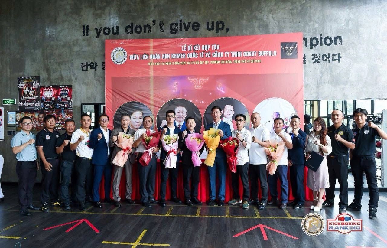 ប្រទេសវៀតណាម ៖ ឯកឧត្តមខូវ ឆាយអគ្គលេខាធិការសហព័ន្ធកីឡាប្រដាល់គុនខ្មែរអន្តរជាតិតំណាងឯកឧត្តមវ៉ាត់ ចំរើន ប្រធានសហព័ន្ធ កាលពីថ្ងៃទី១២ ខែមីនា បានចូលរួមជាសក្ខីភាពក្នុងការចុះអនុស្សរណៈយោគយល់ដ៏សំខាន់មួយនៅទីក្រុងហូជីមីញ ប្រទេសវៀតណាមដើម្បីពង្រឹងការអភិវឌ្ឍកីឡាប្រដាល់គុនខ្មែរនៅក្នុងតំបន់និងឆាកអន្តរជាតិ។