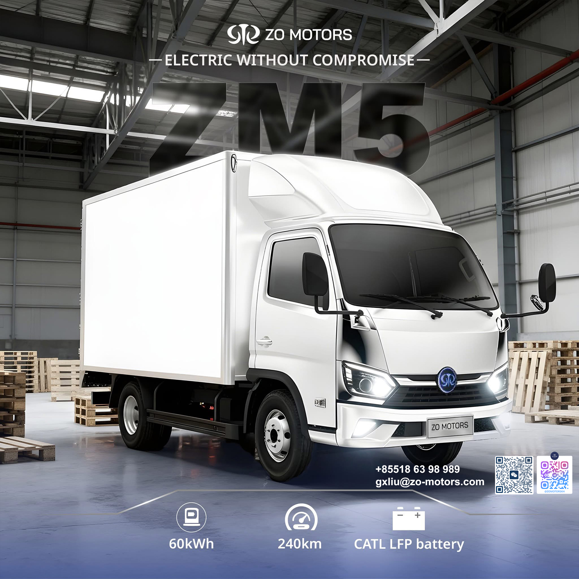 ដើម្បីរស់រាន និងរីកចម្រើន ដំណោះស្រាយដ៏សាមញ្ញបំផុតគឺ៖ ប្តូរពីរថយន្តប្រើប្រេងម៉ាស៊ូត មកប្រើរថយន្តអគ្គិសនីសម្រាប់ដឹកជញ្ជូន! ZO MOTORS (Elephant Truck) បាននាំមកជូននូវរថយន្តដឹកទំនិញប្រភេទអគ្គិសនី ZM5 ដែលរចនាឡើងយ៉ាងពិសេសសម្រាប់ការដឹកជញ្ជូនក្នុងទីក្រុង ជាមួយនឹងតម្លៃសមរម្យបំផុតដោយត្រឹមតែ ២៩,៨០០ ដុល្លារតែប៉ុណ្ណោះ ដែលវានឹងផ្តល់ត្រឡប់មកវិញនូវផលចំណេញយ៉ាងច្រើនមហិមា។