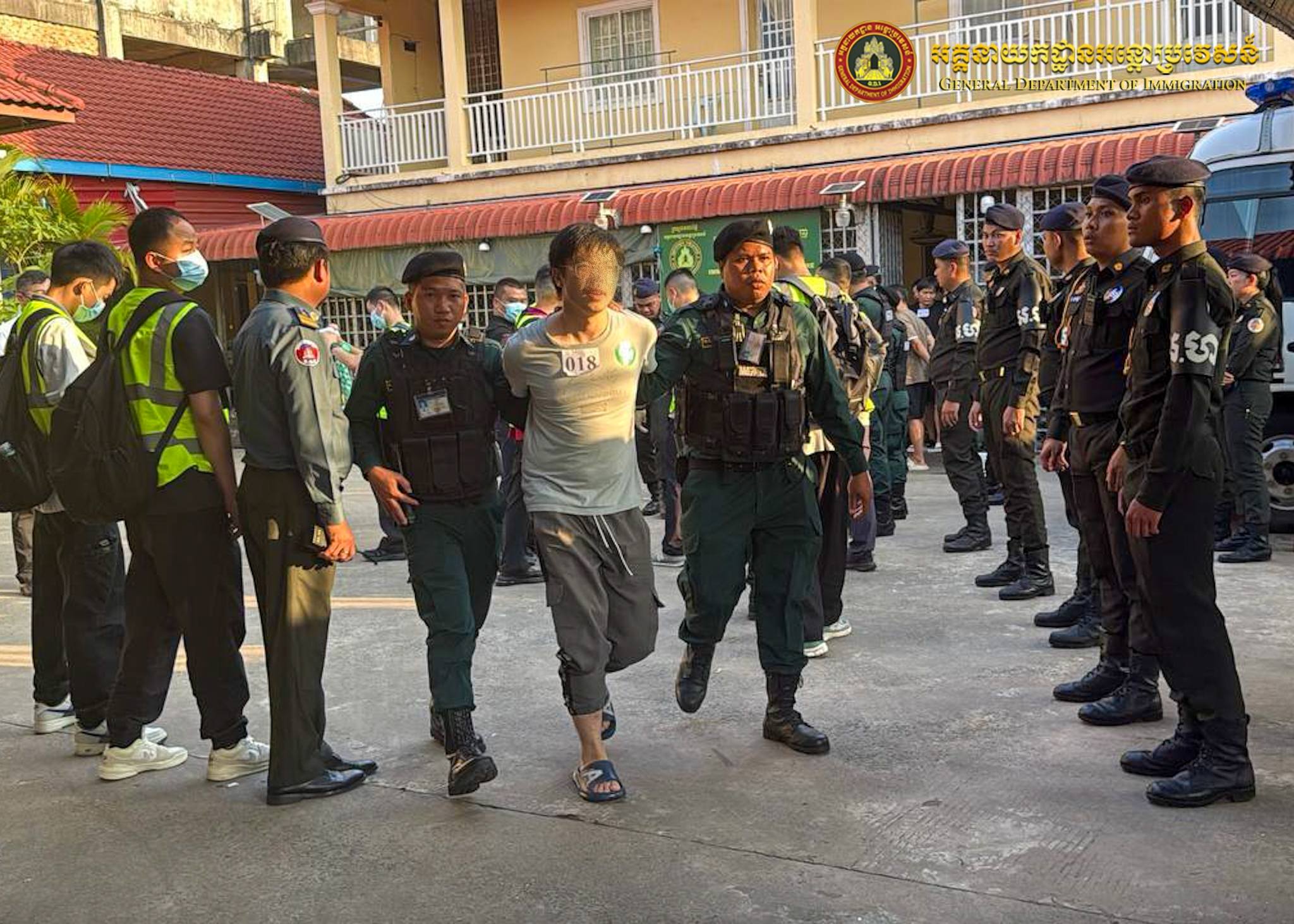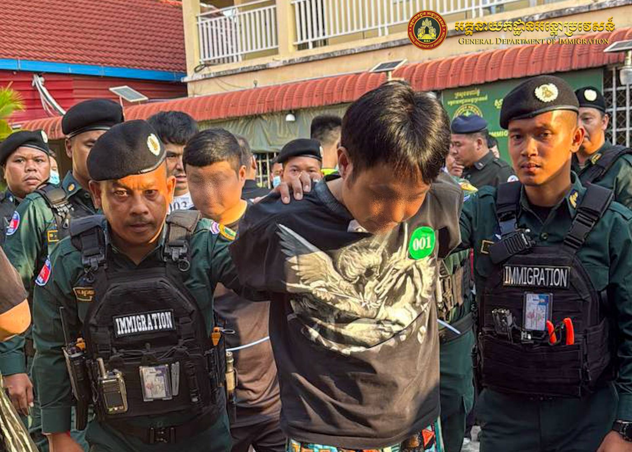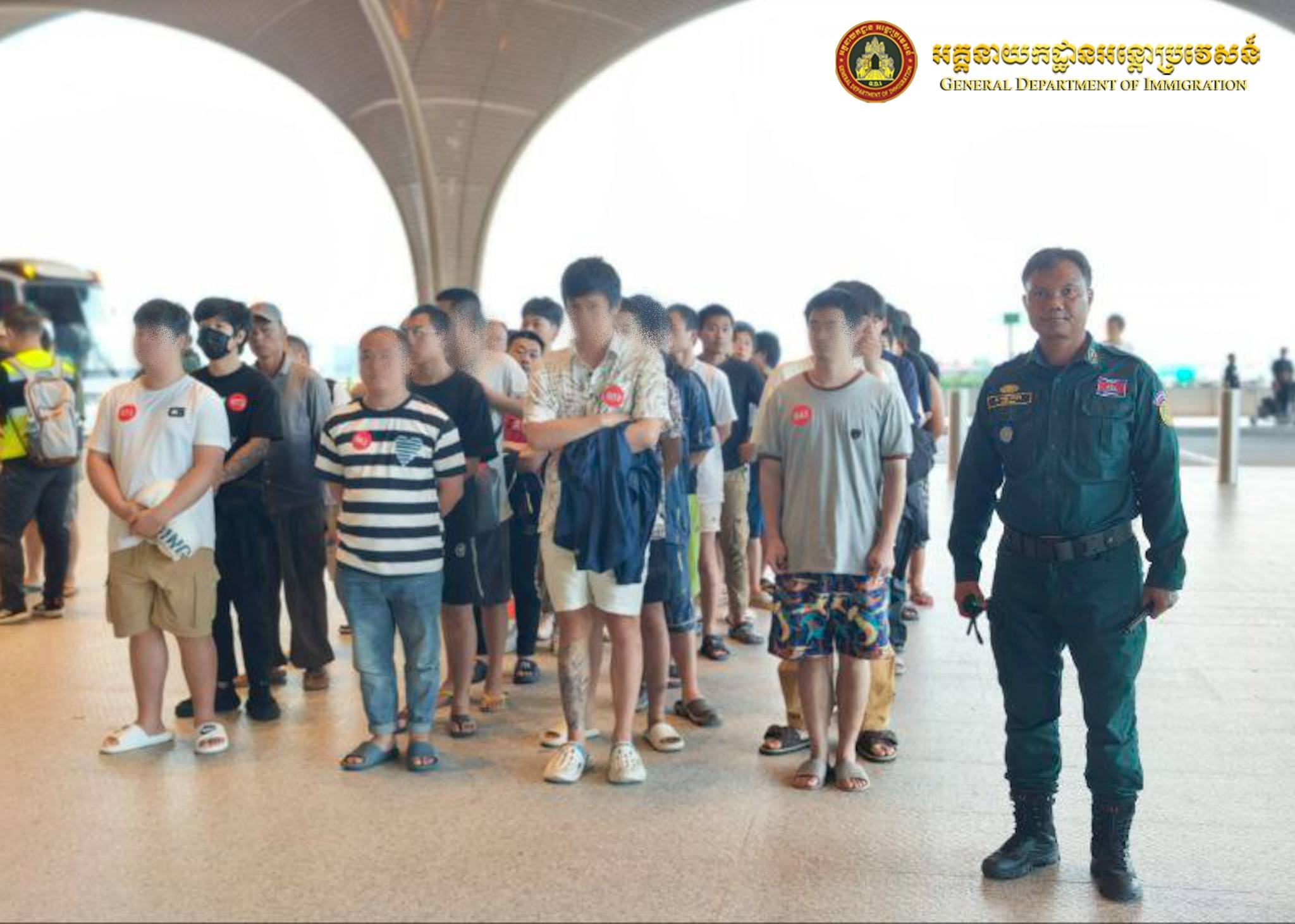 នៅយប់ថ្ងៃទី១៥ ឈានចូលថ្ងៃទី១៦ ខែមីនា ឆ្នាំ២០២៦ អនុវត្តតាមអនុសាសន៍ដ៏ខ្ពង់ខ្ពស់ របស់ឯកឧត្តមអភិសន្តិបណ្ឌិត ឧបនាយករដ្ឋមន្ត្រី រដ្ឋមន្ត្រីក្រសួងមហាផ្ទៃ ឯកឧត្តម សន្តិបណ្ឌិត និងថ្នាក់ដឹកនាំក្រសួងមហាផ្ទៃ ឯកឧត្តម ឧត្តមសេនីយ៍ឯក សុខ វាសនា អគ្គនាយកអន្តោប្រវេសន៍ បានណែនាំឱ្យនាយកដ្ឋានស៊ើបអង្កេត និងអនុវត្តនីតិវិធី សហាការជាមួយស្ថានទូតចិនប្រចាំនៅព្រះរាជាណាចក្រកម្ពុជា បន្តធ្វើការបណ្តេញជនជាតិចិនសរុបចំនួន ៥០០នាក់ (ស្រី១៣នាក់) ពាក់ព័ន្ធករណីឆបោកតាមប្រព័ន្ធអនឡាញ (Online Scams) និងករណីលួចស្នាក់នៅ ធ្វើការងារខុសច្បាប់ ត្រូវបានបណ្ដេញចេញតាមរយៈយន្តហោះពិសេស នៅប៉ុស្តិ៍នគរបាលច្រកទ្វារអាកាសអន្តរជាតិតេជោ និងប៉ុស្តិ៍នគរបាលច្រកទ្វារអាកាសកងកេង (ខេត្តព្រះសីហនុ) ។