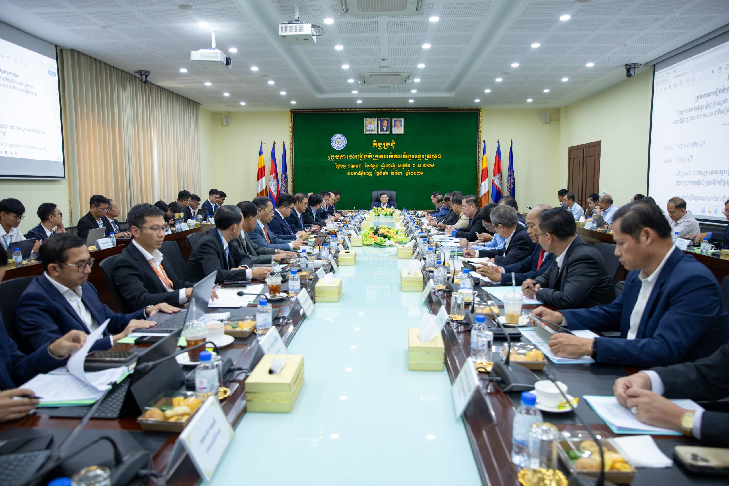 រាជធានីភ្នំពេញ ៖ នារសៀលថ្ងៃទី១៦ ខែមីនា ឆ្នាំ២០២៦ នៅទីស្តីការក្រសួង ឯកឧត្តម ហេង សួរ រដ្ឋមន្ត្រីក្រសួងការងារ និងបណ្តុះបណ្តាលវិជ្ជាជីវៈ និងជាប្រធានក្រុមការងាររៀបចំក្រុមអធិការកិច្ចអន្តរក្រសួង បានអញ្ជើញជាអធិបតីដឹកនាំកិច្ចប្រជុំ ដើម្បីពិនិត្យវឌ្ឍនភាពការងារឆ្នាំ២០២៥ និងលើកទិសដៅការងារបន្តសម្រាប់ឆ្នាំ២០២៦ ។