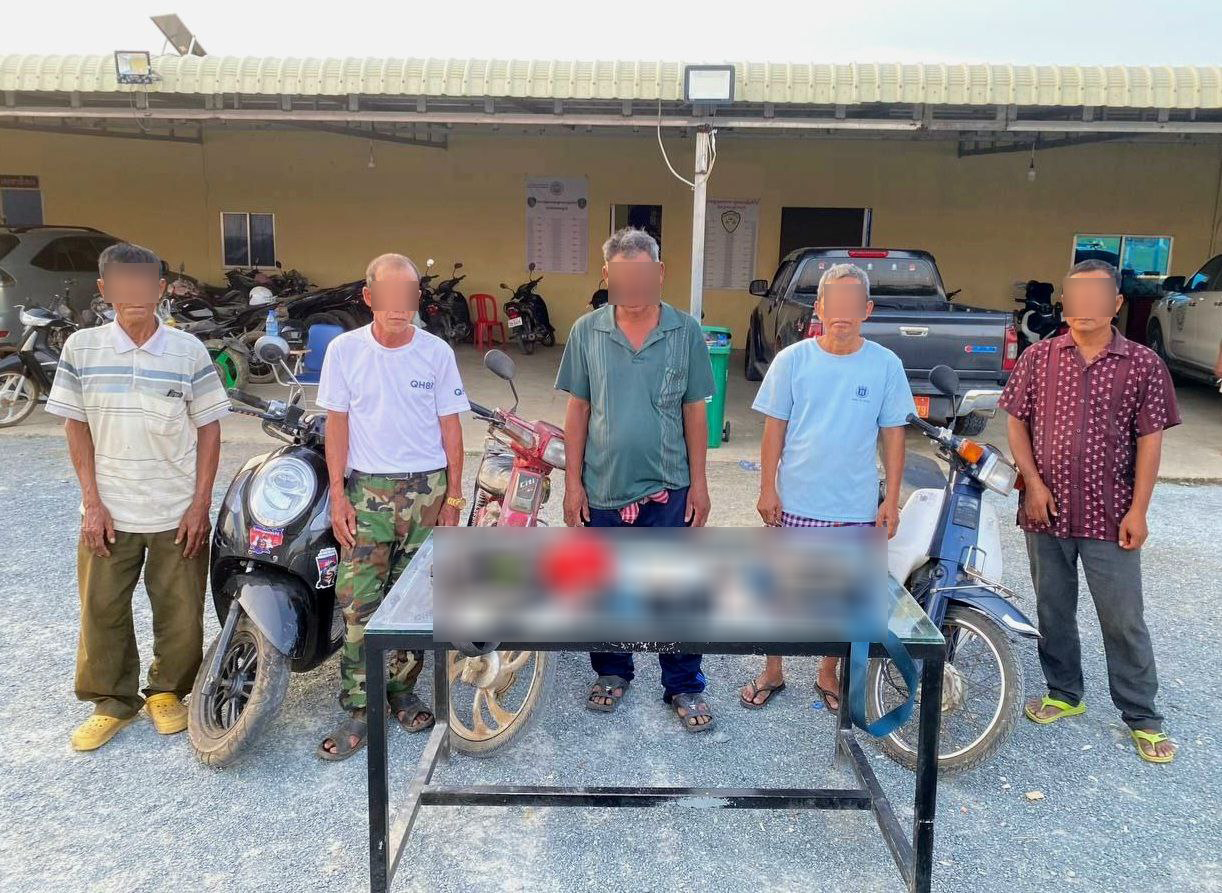 ខេត្តកំពង់ស្ពឺ ៖ អ្នកញៀនល្បែង(អាប៉ោង)ចំនួន៥ នាក់ត្រូវបានកម្លាំងនគរបាលស្រុកសាមគ្គីមុន្នីជ័យធ្វើការឃាត់ខ្លួន ខណៈដែលកំពុងនាំគ្នាអ៊ុតអាប៉ោង ហើយកម្លាំងចុះបង្ក្រាបបនល្បែងខុសច្បាប់រត់បាតជើងសព្រាត។