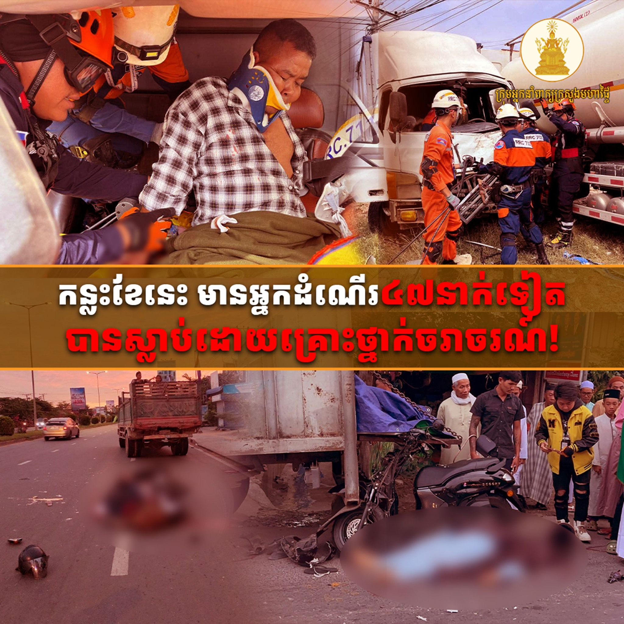 ជាក់ស្តែងបើយោងតាមផេក អគ្គនាយកដ្ឋានអន្តោប្រវេសន៍ បានប្រកាសនាថ្ងៃទី១៨ ខែមីនានេះថា ៖ កន្លះខែមកនេះ គិតចាប់ពីថ្ងៃទី១ ដល់ថ្ងៃទី១៥ ខែមីនា ឆ្នាំ២០២៦ មានករណីគ្រោះថ្នាក់ចរាចរណ៍ផ្លូវគោកទូទាំងប្រទេស កើតឡើងចំនួន៩២ករណី បណ្តាលឱ្យមានមនុស្សស្លា.ប់៤៧នាក់ និងរងរបួសធ្ងន់ស្រាល១១៧នាក់ ។ នេះបើតាមរបាយការណ៍ក្រសួងមហាផ្ទៃ ។