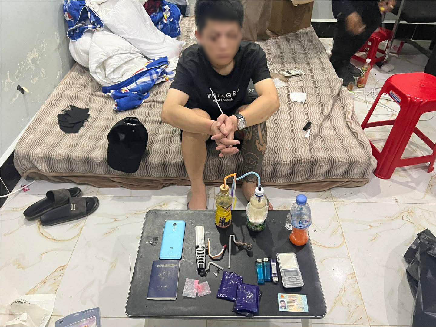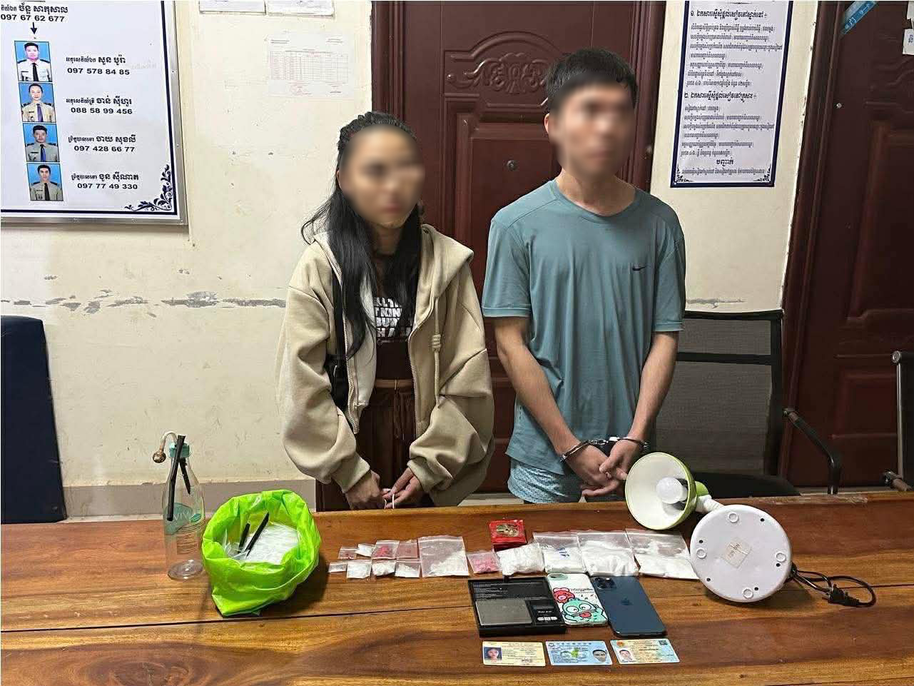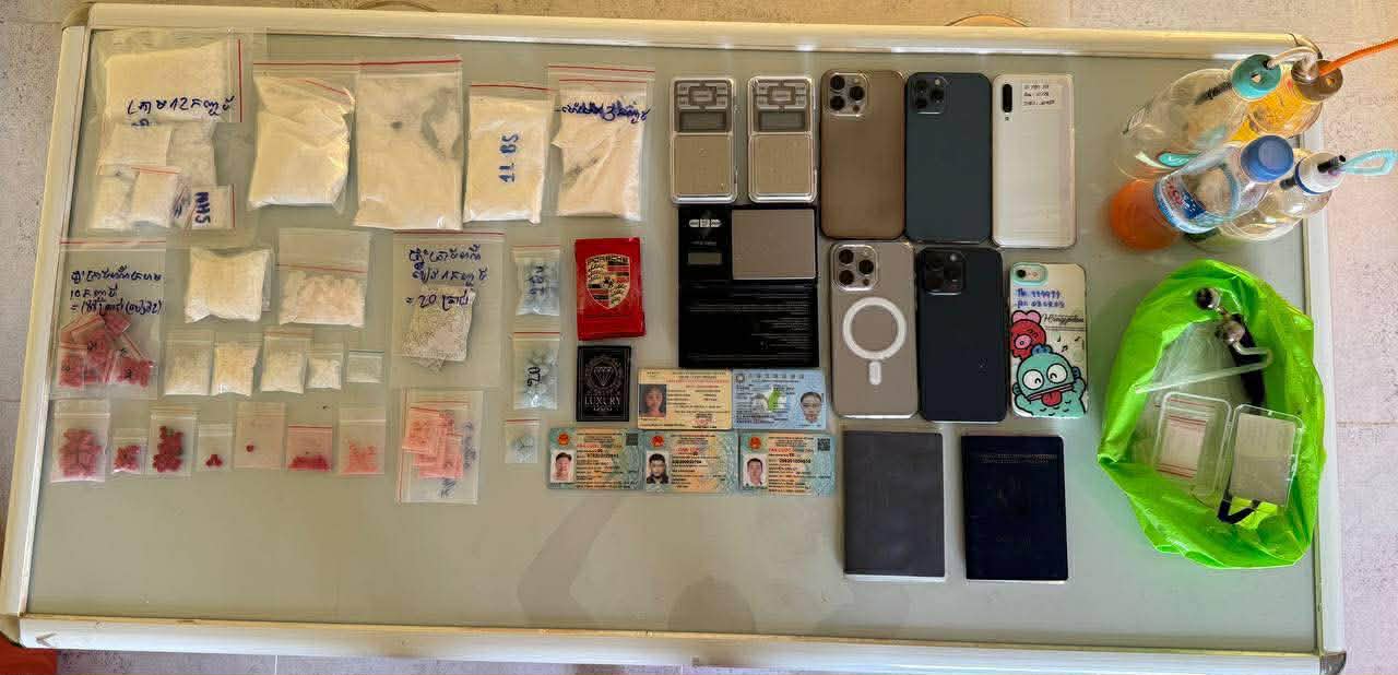 ដកហូតវត្ថុតាងរួមមាន ៖ សារធាតុញៀនមួយចំនួនធំ, រថយន្ត០១គ្រឿង, ទូរសព្ទដៃ០៦គ្រឿង, ជញ្ជីងថ្លឹង ០៣គ្រឿង និងសម្ភារប្រើប្រាស់មួយចំនួនទៀត ។