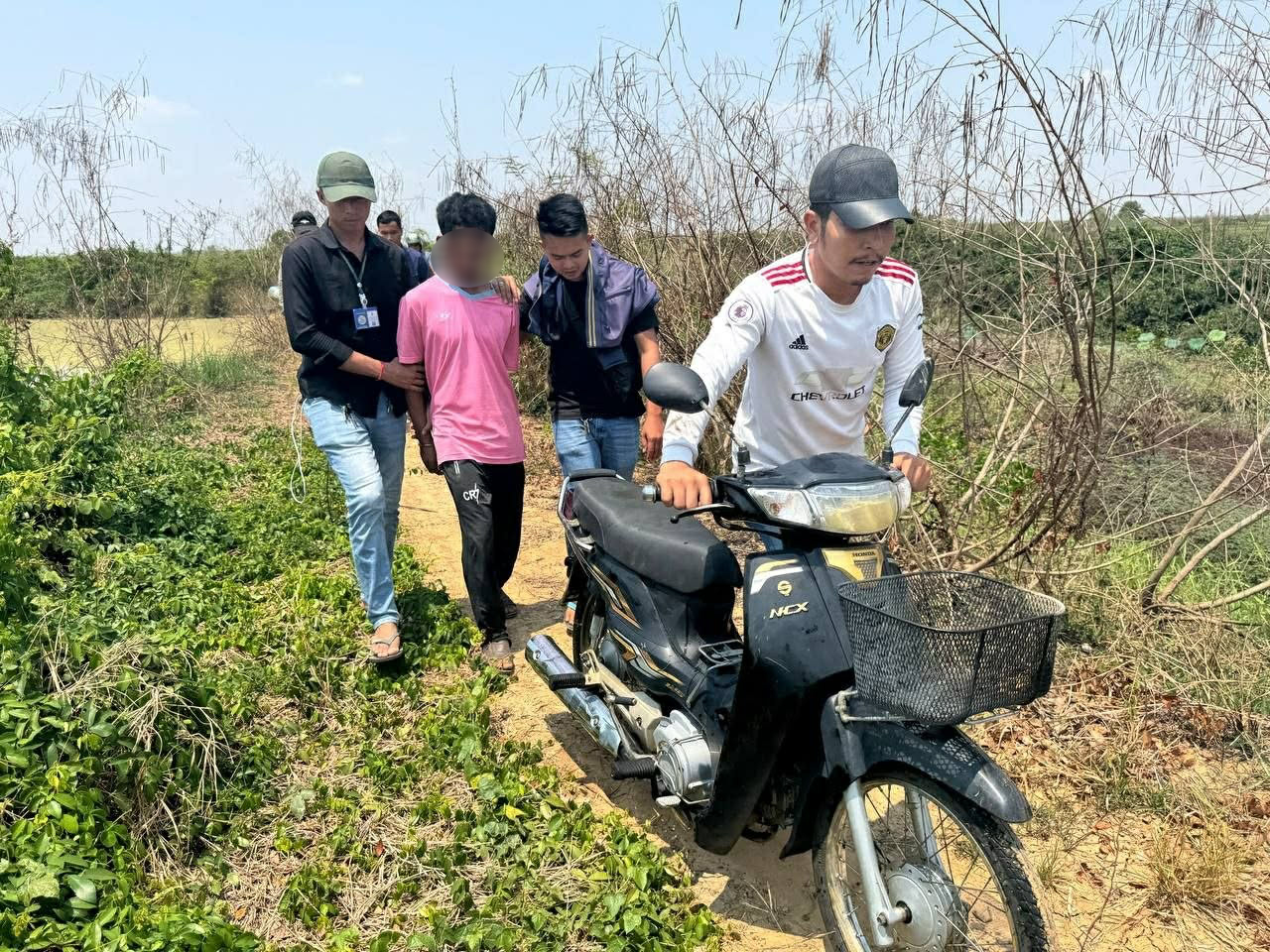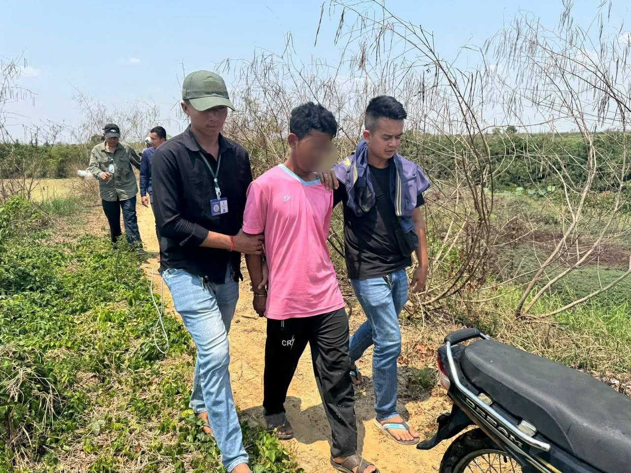 សមត្ថកិច្ចបានផ្ដល់ព័ត៌មានថា ជនសង្ស័យដែលមន្ត្រីជំនាញឃាត់ខ្លួនបានម្នាក់ មានឈ្មោះ ភឿក សារ៉ាវុធ ហៅ សម្បត្តិ ភេទប្រុស អាយុ៣៩ឆ្នាំ រស់នៅភូមិខ្នាចរមាស ឃុំខ្នាចរមាស ស្រុកបវេល (ជនសង្ស័យនិងជនរងគ្រោះរស់នៅក្នុងភូមិ-ឃុំជាមួយគ្នា ហើយជាពួកម៉ាកជិតស្និទ្ធនឹងគ្នាទៀត)។ បើតាមសមត្ថកិច្ចដដែល៖ ជនដៃដល់ម្នាក់ត្រូវកម្លាំងជំនាញក្របួច.កយកមកសួរនាំតាំងពីថ្ងៃទី២០ មីនា ពេលកំពុងអង្គុយមើល មន្ត្រីជំនាញពិនិត្យសាកសពជនរងគ្រោះនៅកន្លែងកើតហេតុ។