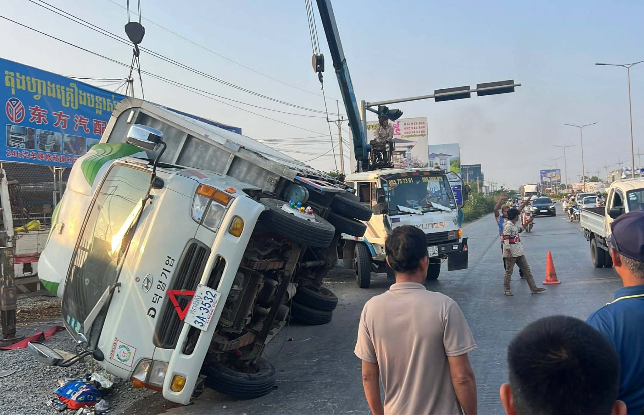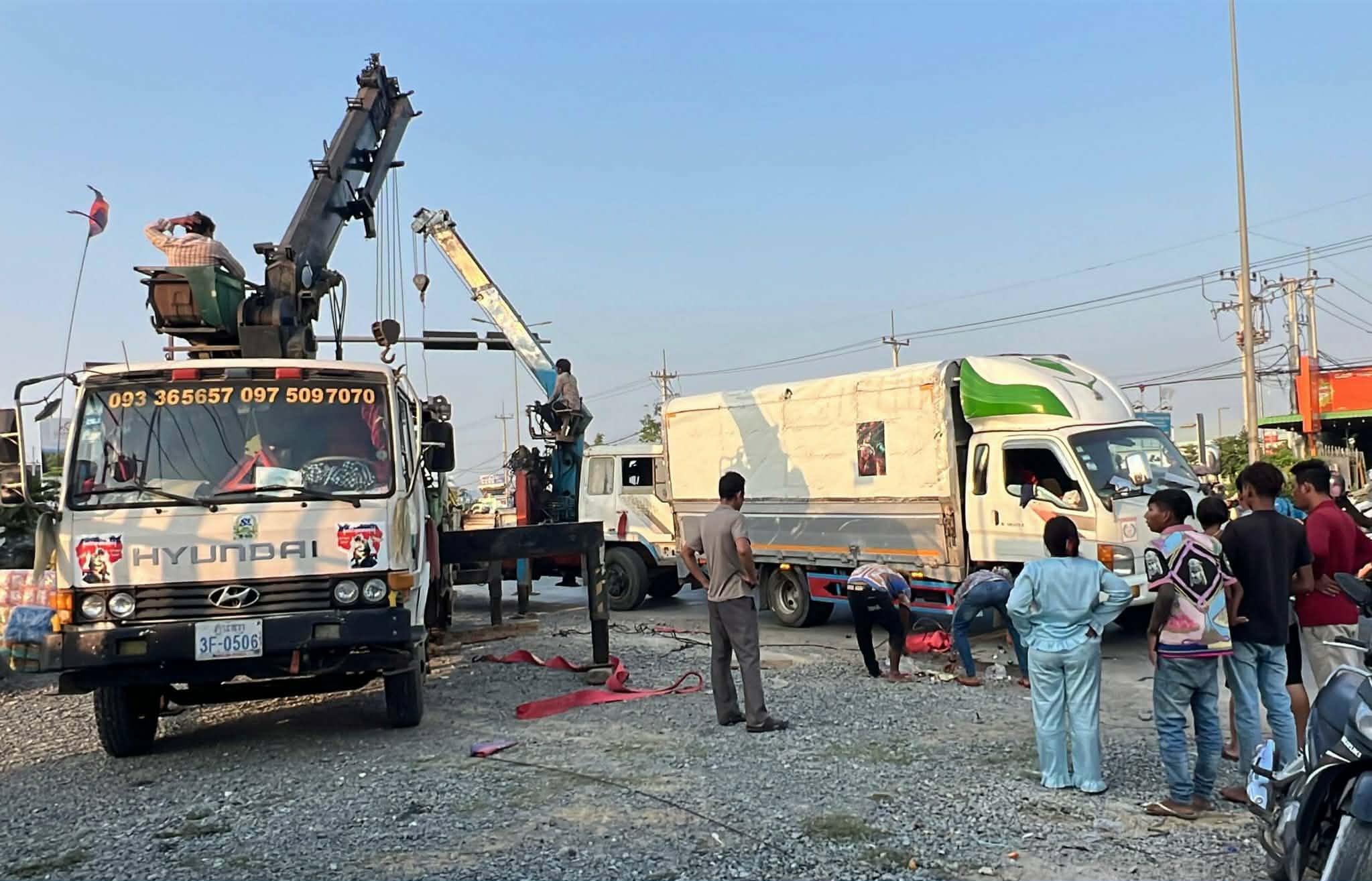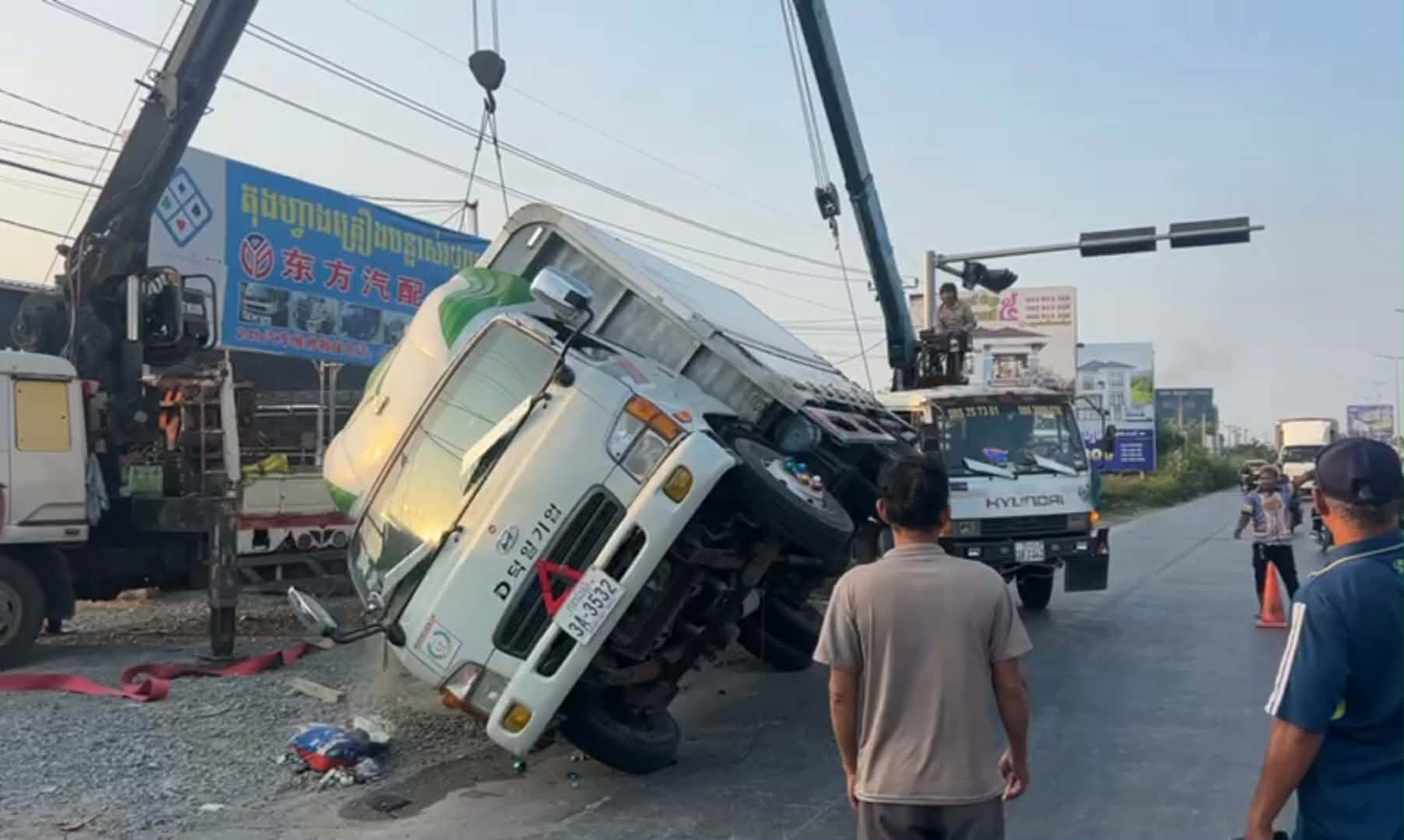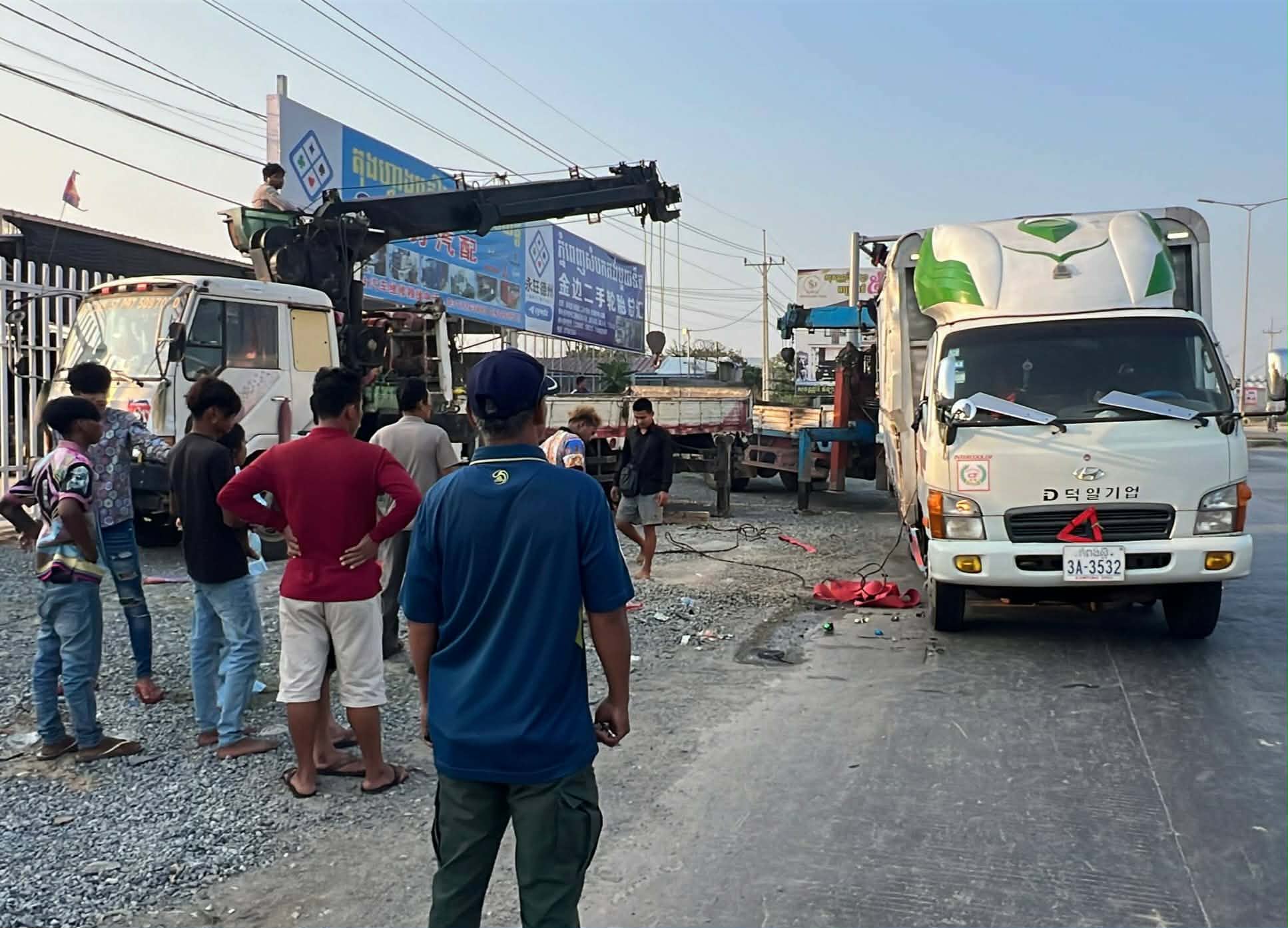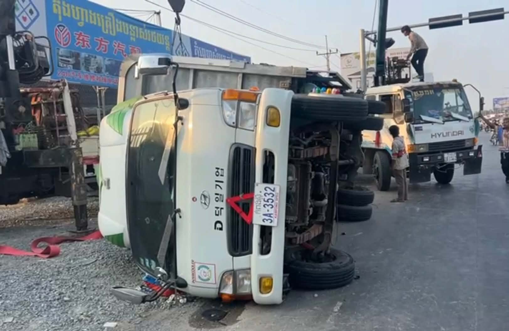 រថយន្តដែលជួបគ្រោះថ្នាក់ខាងលើម៉ាកហ៊ីយ៉ាន់ដាយ ពណ៌ស ពាក់ស្លាកលេខកំពង់ស្ពឺ ៣A-៣៥៣២ ជារថយន្តឃ្លុបដឹកទំនិញរបស់កងដឹកជញ្ជូនCT បើកបរដោយបុរសម្នាក់ពុំប្រាប់អោយស្គាល់អត្តសញ្ញាណឡើយ។