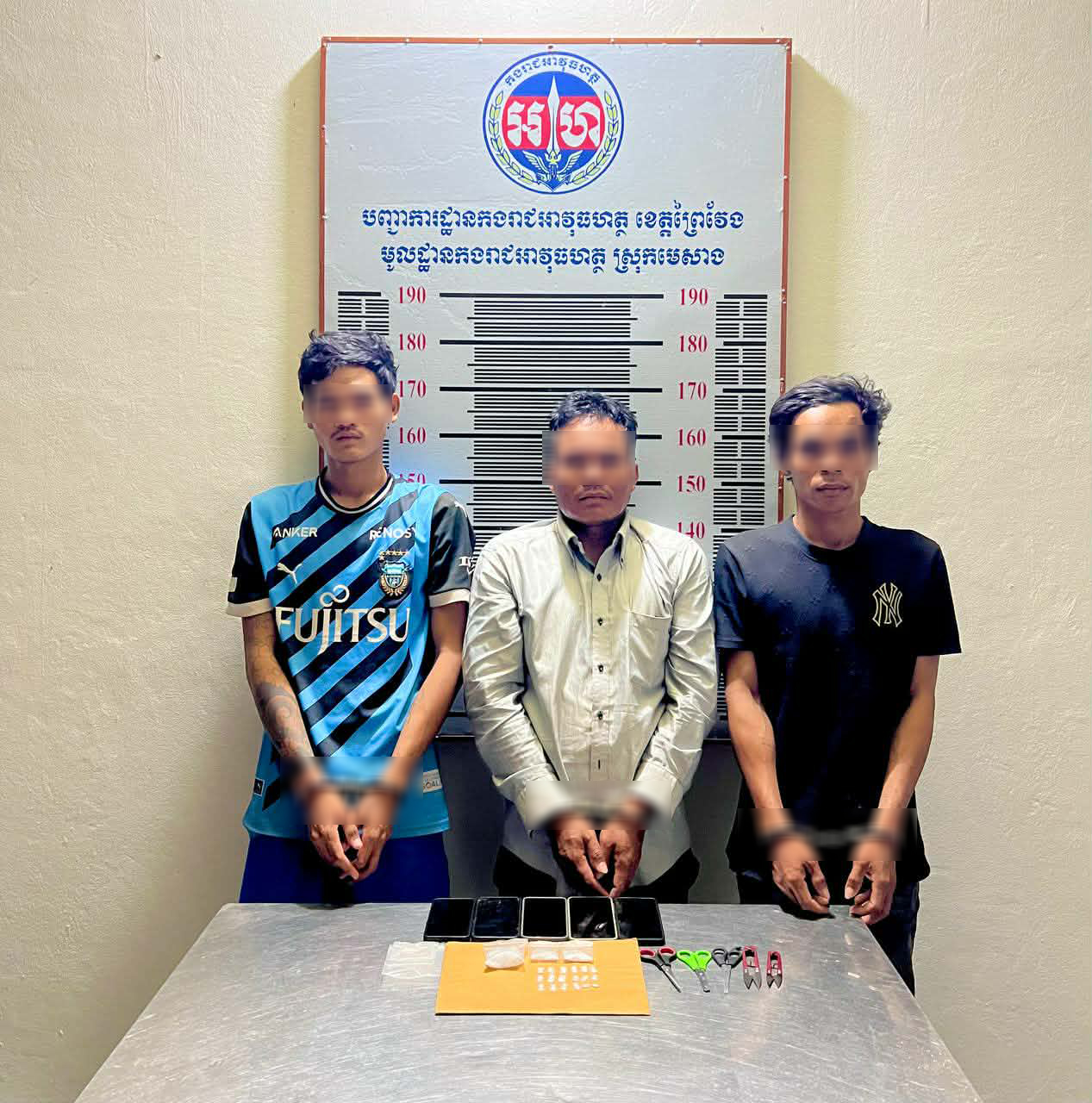 ខេត្តព្រៃវែង ៖ ជនសង្ស័យជាមុខសញ្ញាជួញដូរថ្នាំញៀន ចំនួន៣នាក់ ត្រូវបានកម្លាំងកងរាជអាវុធហត្ថខេត្តព្រៃវែង ចាប់ឃាត់ខ្លួនបានជាបន្តបន្ទាប់ និងដកហូតបានថ្នាំញៀនចំនួន ២០កញ្ចប់ ។