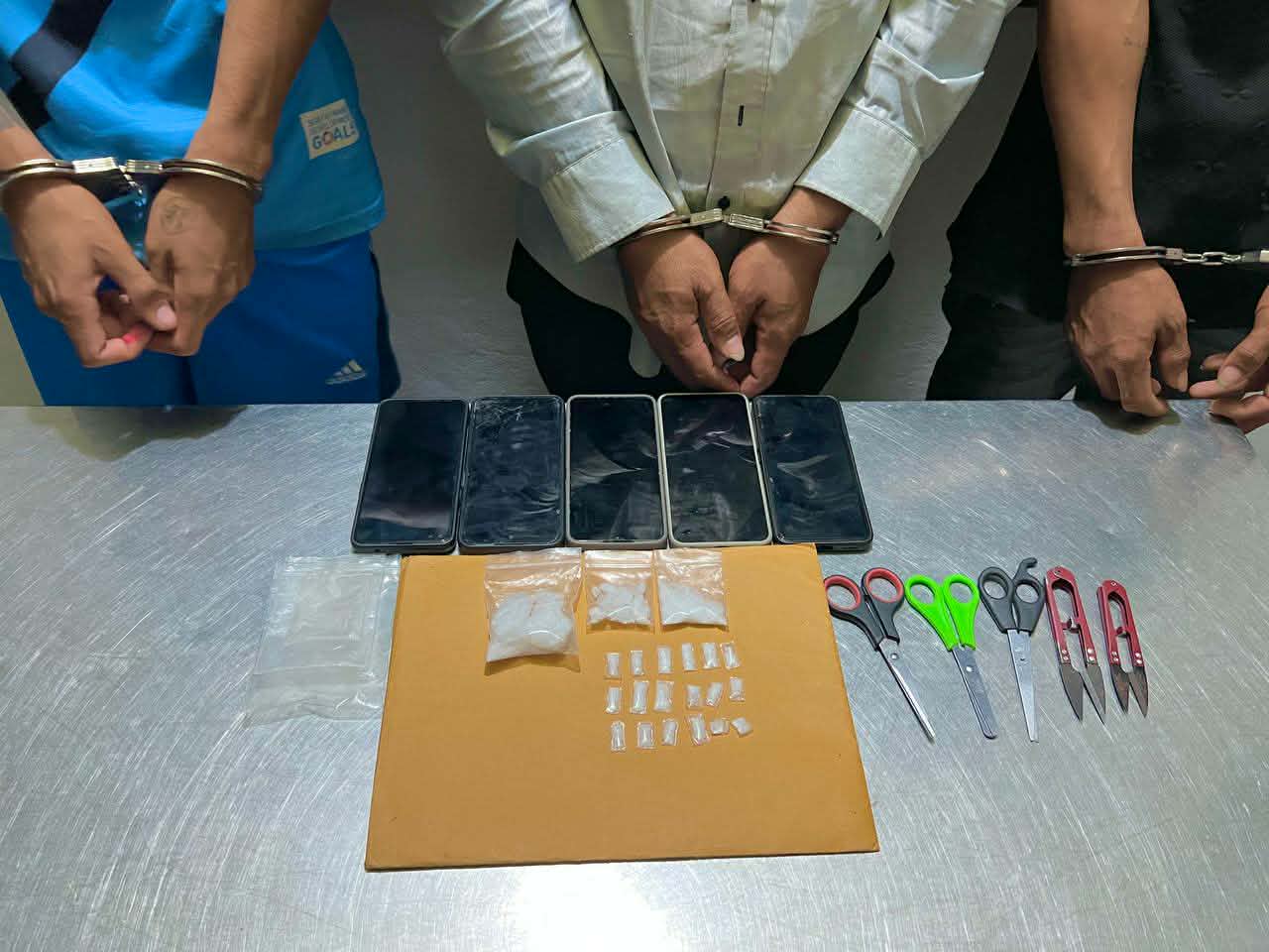 ចំណែកវត្ថុតាង ដែលដកហូតបានរួមមាន ៖ ម្សៅក្រាមពណ៌ស ចំនួន ២០ កញ្ចប់ ក្នុងនោះ ធំ ៣ កញ្ចប់ និងតូច ១៧កញ្ចប់ ទូរសព្ទដៃ៥គ្រឿង ម៉ូតូ២គ្រឿង និងឧបករណ៍សម្រាប់ជក់ថ្នាំមួយសម្រាប់។