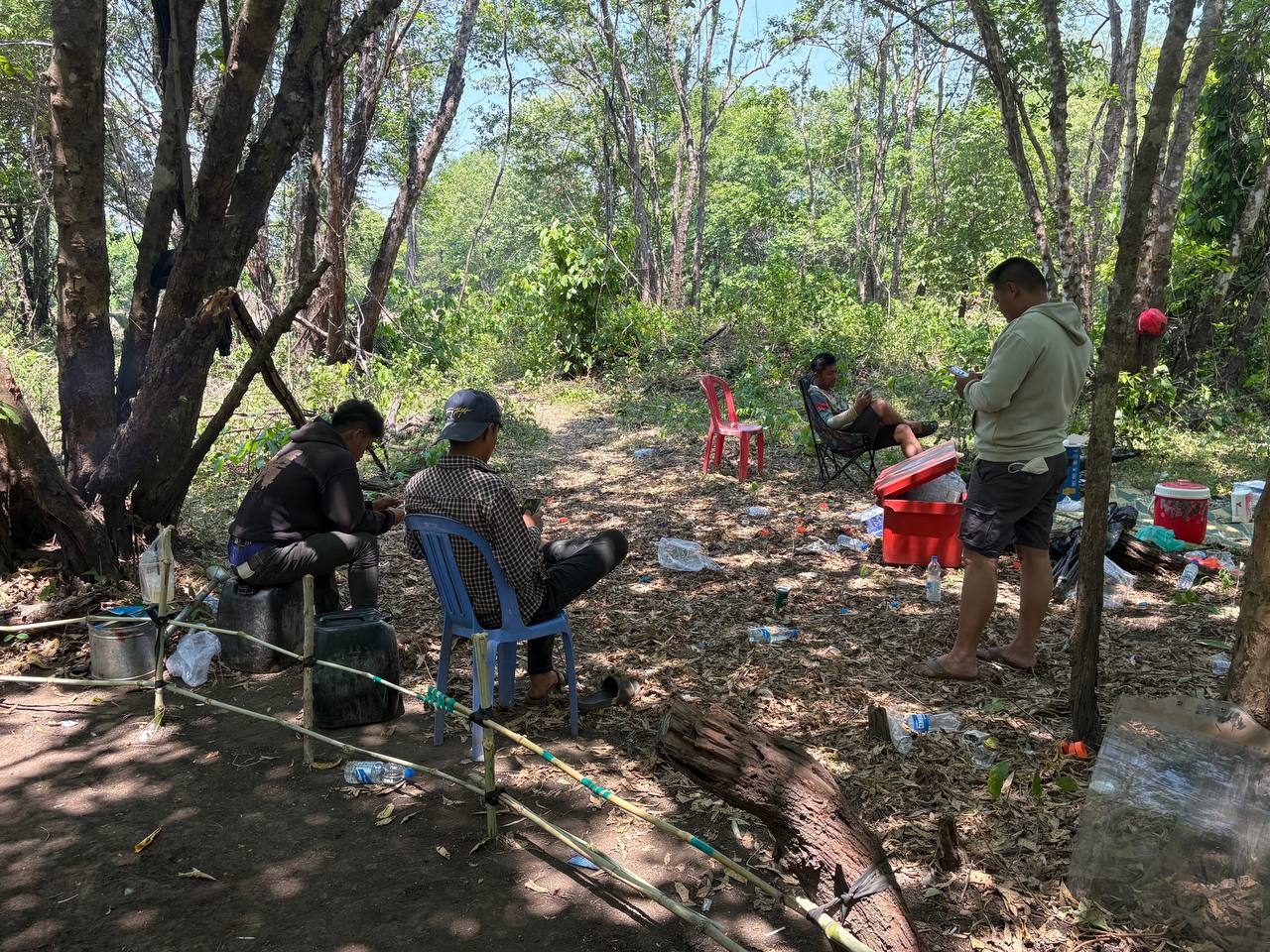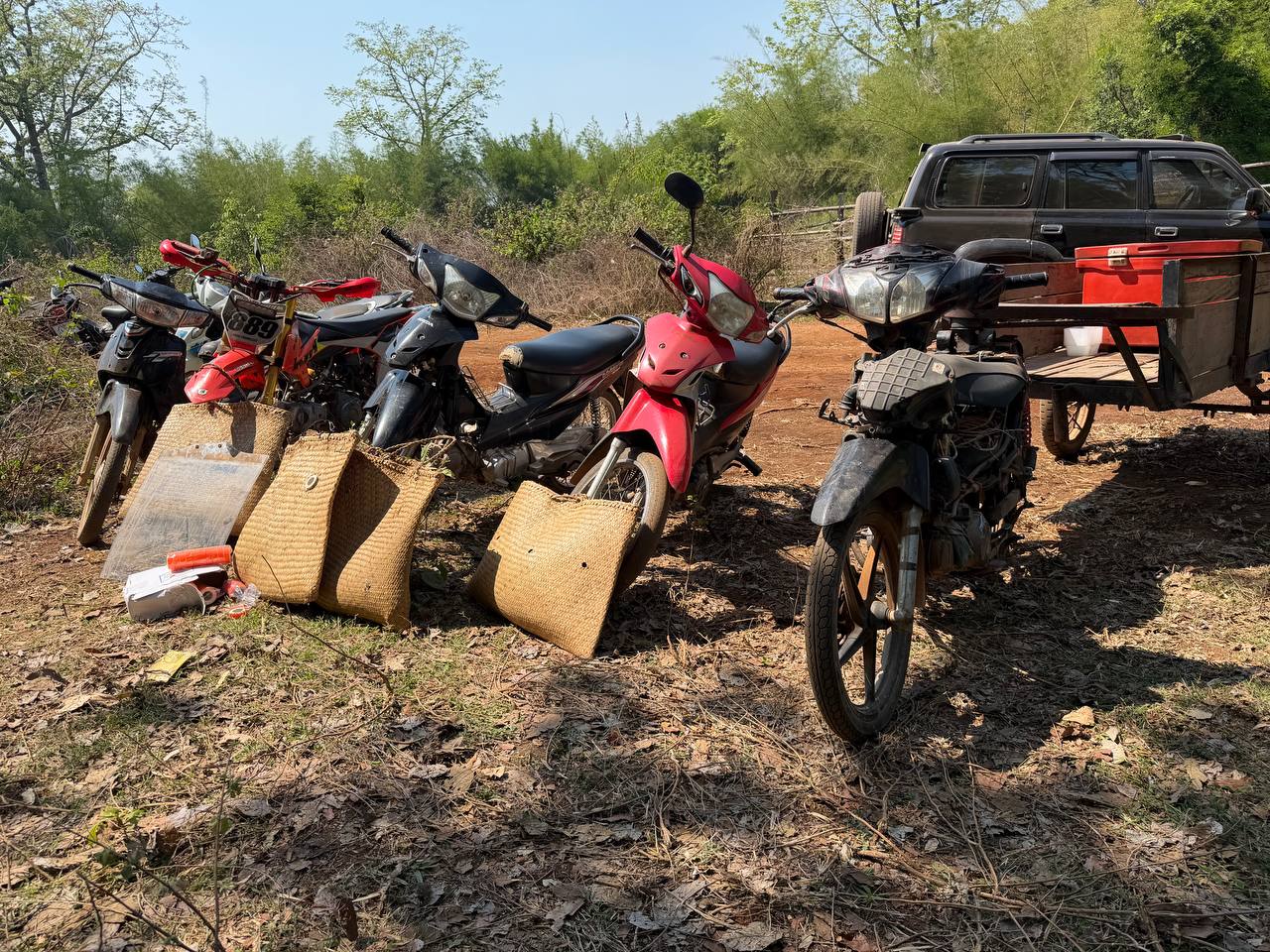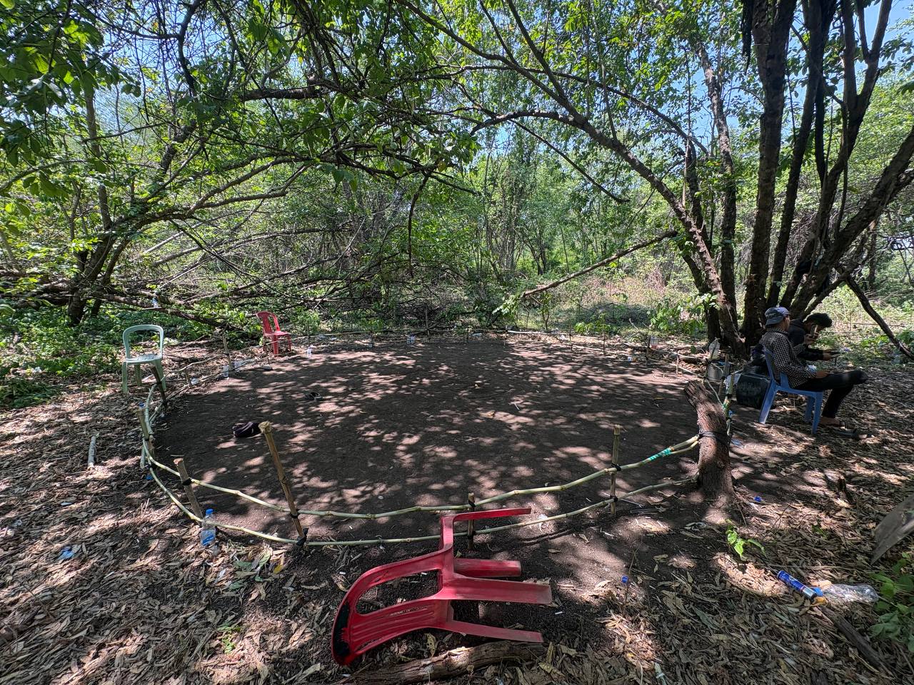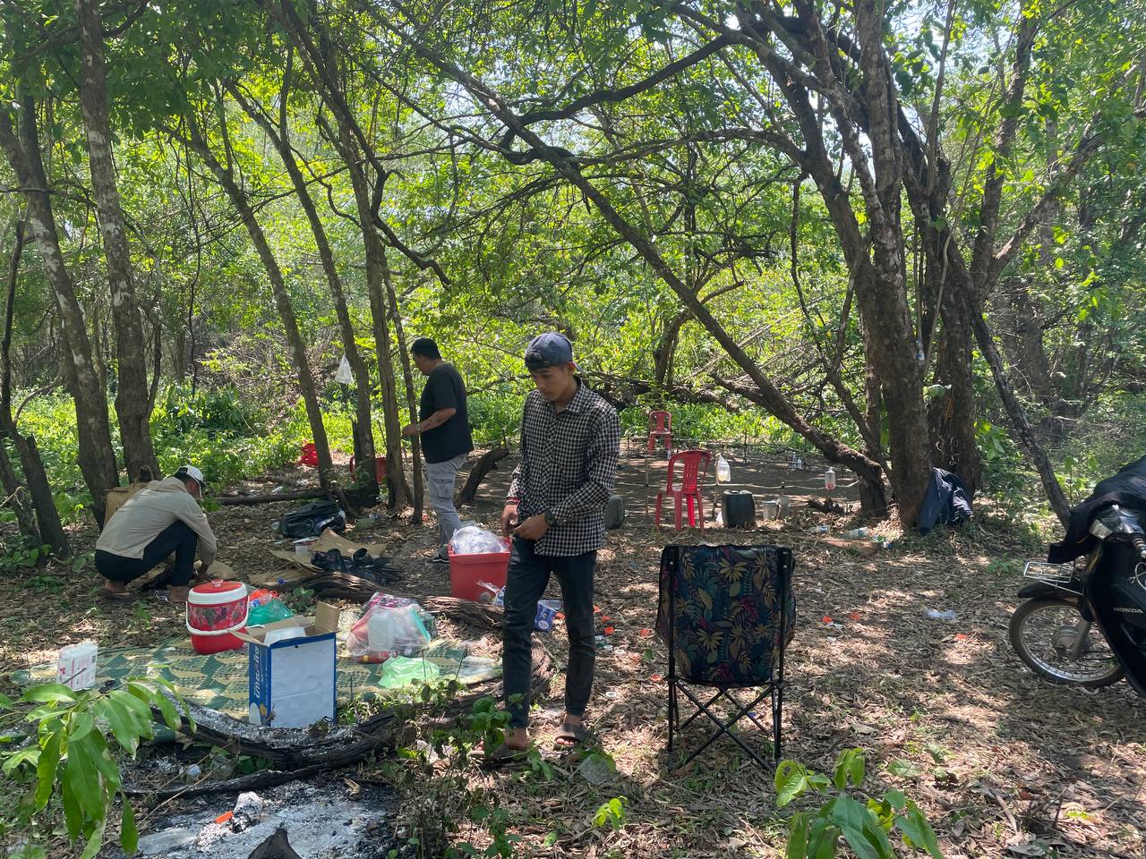 លោកស្រីបន្តថា ក្រុមអ្នកញៀនល្បែងដែលកំពុងប្រមូលផ្ដុំគ្នាជល់មាន់យ៉ាងពពាក់ពពូនបានដឹងខ្លួនជាមុន រួចក៏នាំគ្នាផ្អើលរត់គេចខ្លួនចូលព្រៃបាត់អស់ ដោយបន្សល់ទុកនូវវត្ថុតាងមួយចំនួននៅកន្លែងកើតហេតុ រួមមាន ១-ម៉ូតូចំនួន០៥គ្រឿង (ក្នុងនោះមានម៉ូតូអូសរម៉កចំនួន ០១គ្រឿង)។ ២-មាន់ជល់ចំនួន០៣ក្បាល។ ៣-អន្ដ្រកសម្រាប់ដាក់មាន់ជល់ និងសម្ភារៈពាក់ព័ន្ធមួយចំនួនទៀត ។