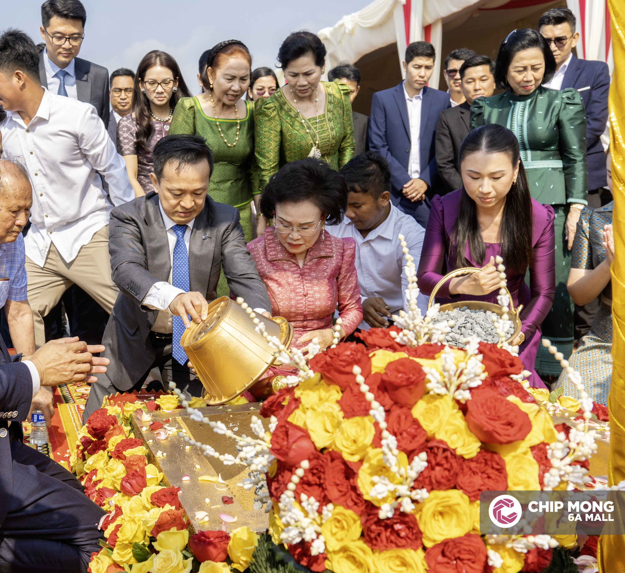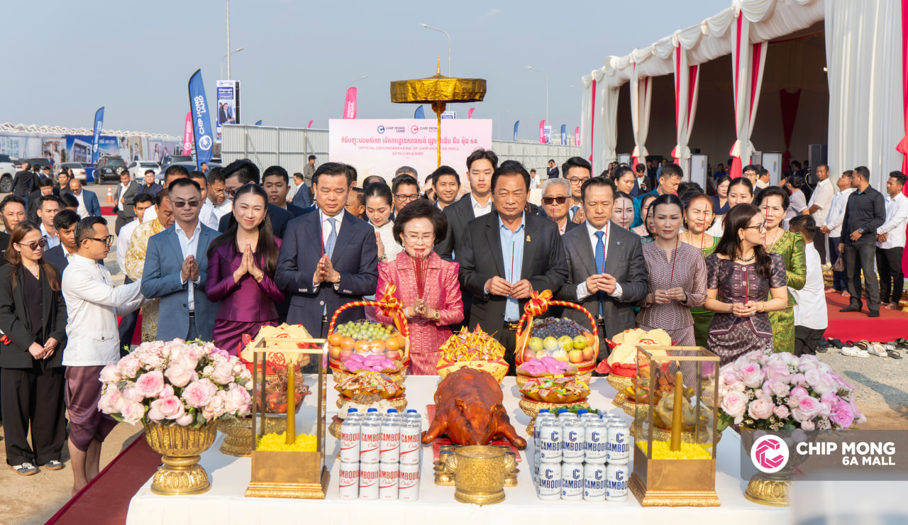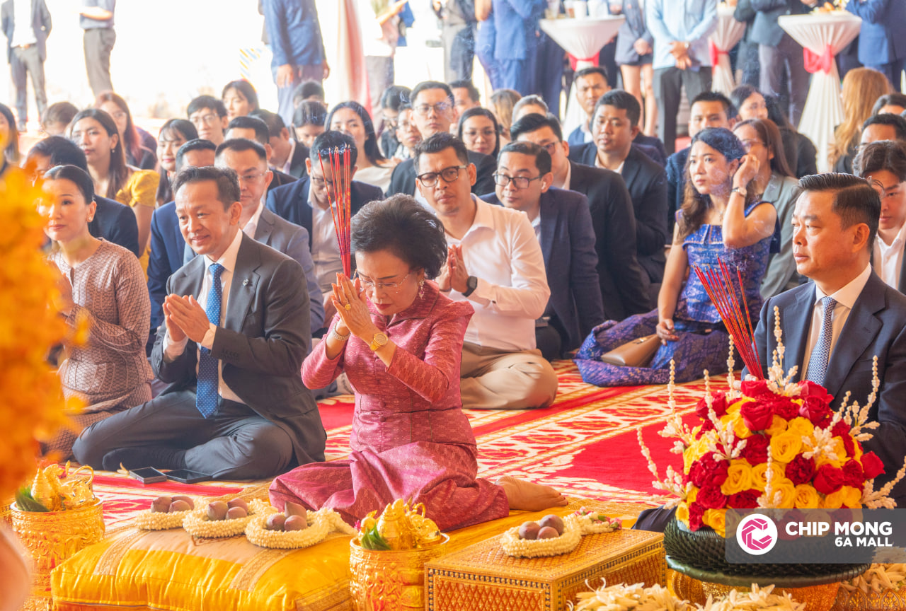 ពិធីបញ្ចុះបឋមសិលានេះ ត្រូវបានប្រព្រឹត្ដទៅក្រោមអធិបតីភាពរបស់លោកអ្នកឧកញ៉ា ភាព ហៀក ស្ថាបនិកក្រុមហ៊ុន ជីប ម៉ុង លោកអ្នកឧកញ៉ា លាង ឃុន សហស្ថាបនិក ក្រុមហ៊ុន ជីប ម៉ុង អ្នកឧកញ៉ា លាង ម៉េង សហស្ថាបនិក ក្រុមហ៊ុន ជីប ម៉ុង អ្នកឧកញ៉ា លាង ហួង (ហេនរី) អគ្គនាយកពហុពាណិជ្ជកម្ម ក្រុមហ៊ុន ជីប ម៉ុង លែន លោកជំទាវ គឹម ចាន់ណា សមាជិកក្រុមប្រឹក្សាភិបាលក្រុមហ៊ុន ជីប ម៉ុង លោកជំទាវ លី សុខឆេង នាយិកាក្រុមហ៊ុន ជីប ម៉ុង រីថែល និងលោកជំទាវ គីម ចាន់ថា អគ្គនាយិការក្រុមហ៊ុន ជីប ម៉ុង ត្រេឌីង ព្រមទាំងថ្នាក់ដឹកនាំជាន់ខ្ពស់របស់ក្រុមហ៊ុនជាច្រើនរូបទៀត ។