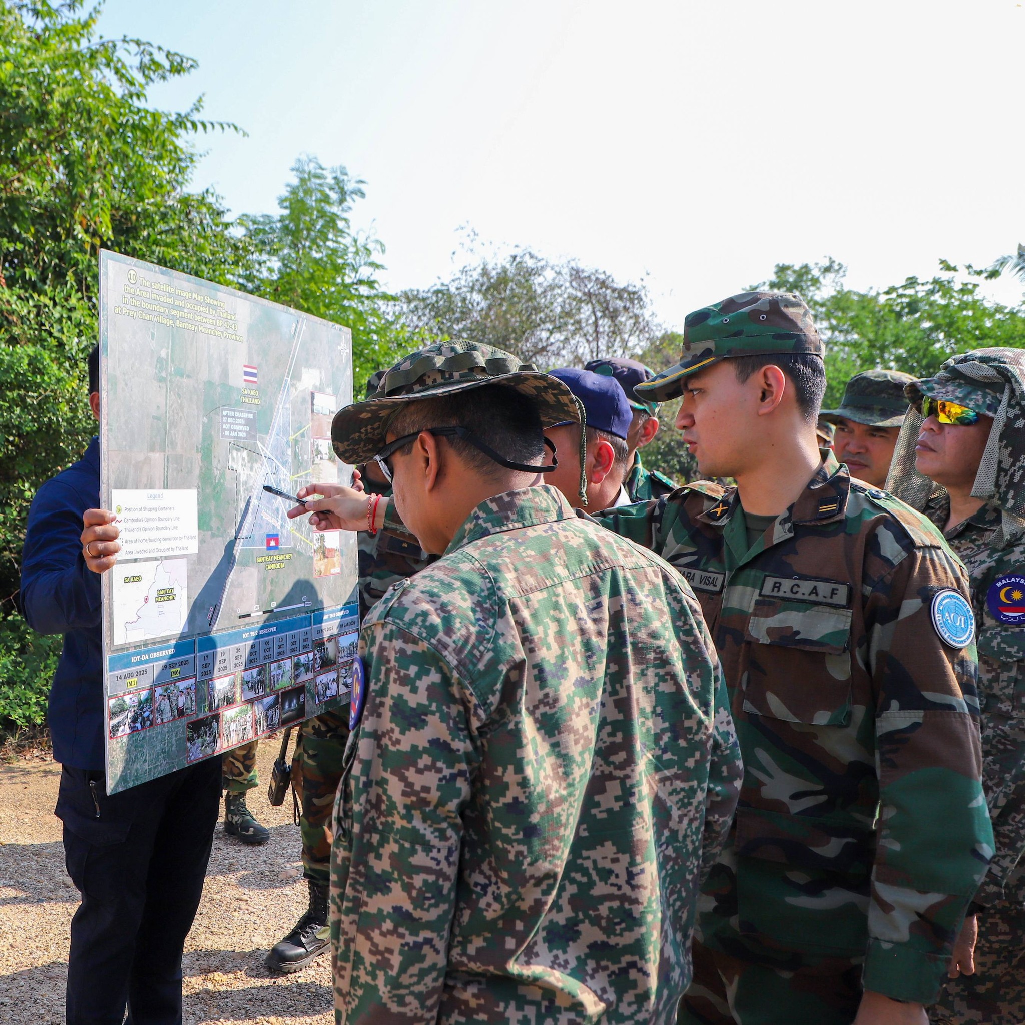 ក្រុមអ្នកសង្កេតការណ៍អាស៊ាន (AOT) ចុះពិនិត្យផ្ទៀងផ្ទាត់ស្ថានភាពព្រំដែននៅតំបន់ភូមិព្រៃចាន់