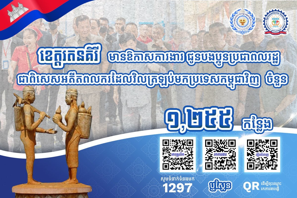 ជាមួយគ្នានេះ ក្រៅពីទំនាក់ទំនងផ្ទាល់ជាមួយក្រុមហ៊ុន សហគ្រាស និងរោងចក្រផ្ទាល់ អ្នកស្វែងរកការងារទាំងអស់ ជាពិសេសបងប្អូនអតីតពលករ ក៏អាចទាក់ទងមកប្រព័ន្ធទំនាក់ទំនងបន្ទាន់ ១២៩៧ ដើម្បីឱ្យក្រសួងការងារ និងបណ្ដុះបណ្ដាលវិជ្ជាជីវៈ ជួយសម្របសម្រួលស្វែងរកការងារជូនផងដែរ ៕ អត្ថបទសហការ