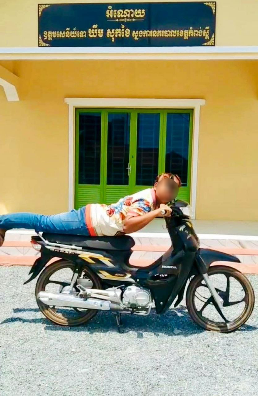 ខេត្តកំពង់ស្ពឺ៖ ក្មេងទំនើងម្នាក់ត្រូវបានកម្លាំងនគរបាលស្រុកគងពិសីធ្វើការឃាត់ខ្លួនក្រោយពីបង្ហោះម៉ូតូ បង្ហោះតាមបណ្ដាញសង្គមហ្វេសប៊ុកចែកចាយបន្តគ្នា នគរបាលស្រាវជ្រាវគាត់ខ្លួនបាន។