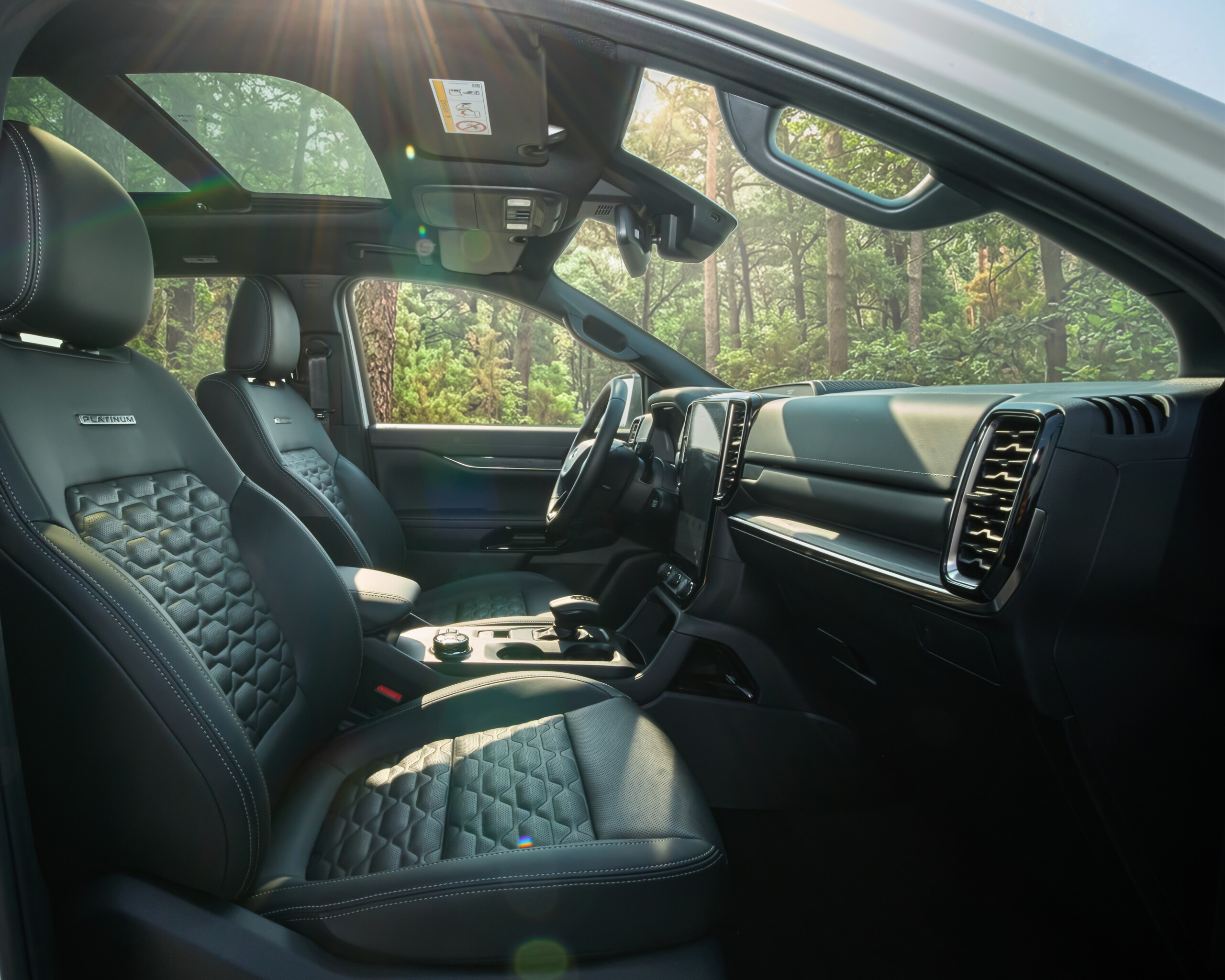 ផ្នែកខាងក្នុងមានការតុបតែងដោយពូកស្បែកគុណភាពខ្ពស់ រំលេចដោយថ្នេរពណ៌ទឹកប្រាក់ ក្បាច់រចនាបែបប្រណិត និងមានស្លាក “Platinum” នៅលើកៅអី ដែលបង្ហាញពីអត្តសញ្ញាណដ៏ល្អឥតខ្ចោះ និងឧត្តមភាពនៃម៉ូឌែលកំពូលនេះ ហើយក៏មានបំពាក់មកនូវមុខងារកៅអីក្តៅ/ត្រជាក់ និងមុខងារកំណត់អង់ចងចាំកៅអី (Memory Seat) ចំនួន 3 Sets សម្រាប់កៅអីខាងមុខដែលងាយស្រួលក្នុងការប្តូរសមាជិកបើកបរក្នុងគ្រួសារ ហើយកៅអីជួរទី 2 ក៏មានក្បាច់រថយន្តលក្ខណៈ Premium នឹងមានបំពាក់មកជាមួយមុខងារកៅអីកម្តៅផងដែរ ។ ជាមួយនឹងការកែលម្អទាំងនេះ Ford Everest កាន់តែបញ្ជាក់ពីសមត្ថភាព ផាសុកភាព និងបច្ចេកវិទ្យាទំនើប ដើម្បីឆ្លើយតបនឹងតម្រូវការរបស់អតិថិជនគ្រប់កម្រិត ខណៈដែលលក្ខណៈពិសេសបន្ថែមផ្សេងៗ នឹងត្រូវបានប្រកាសជាផ្លូវការនាពេលឆាប់ៗខាងមុខ ។
