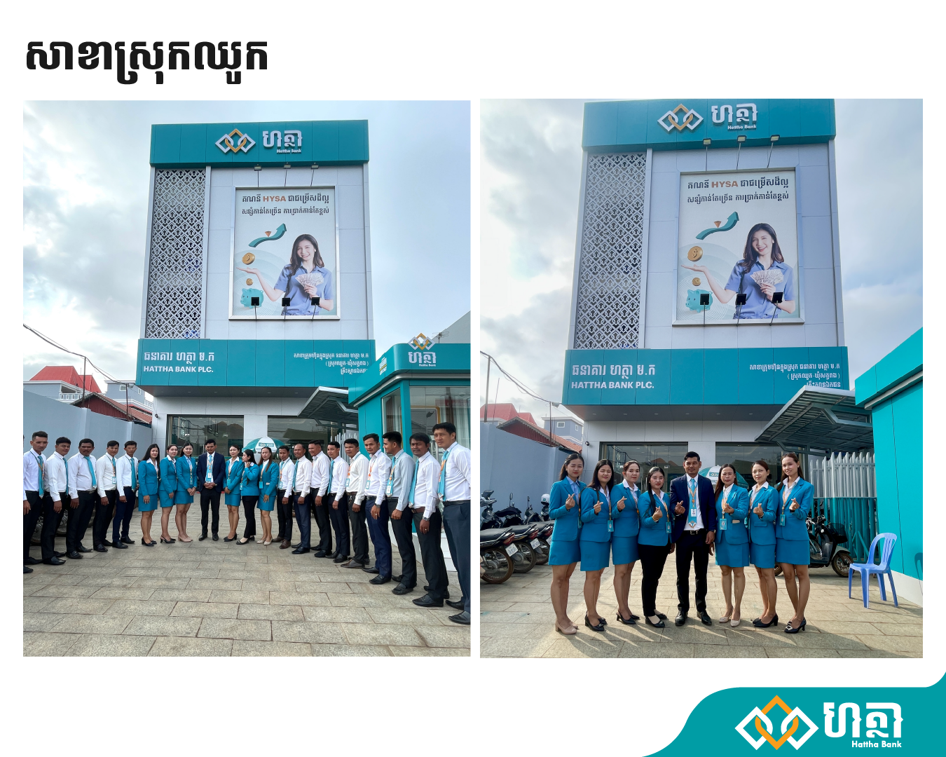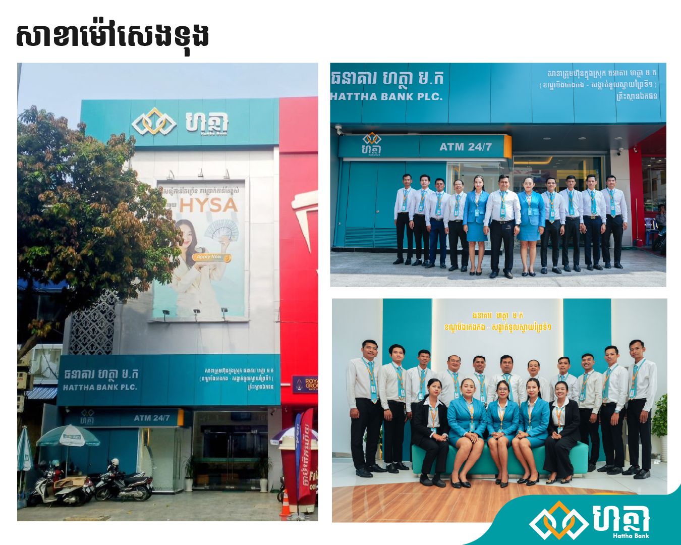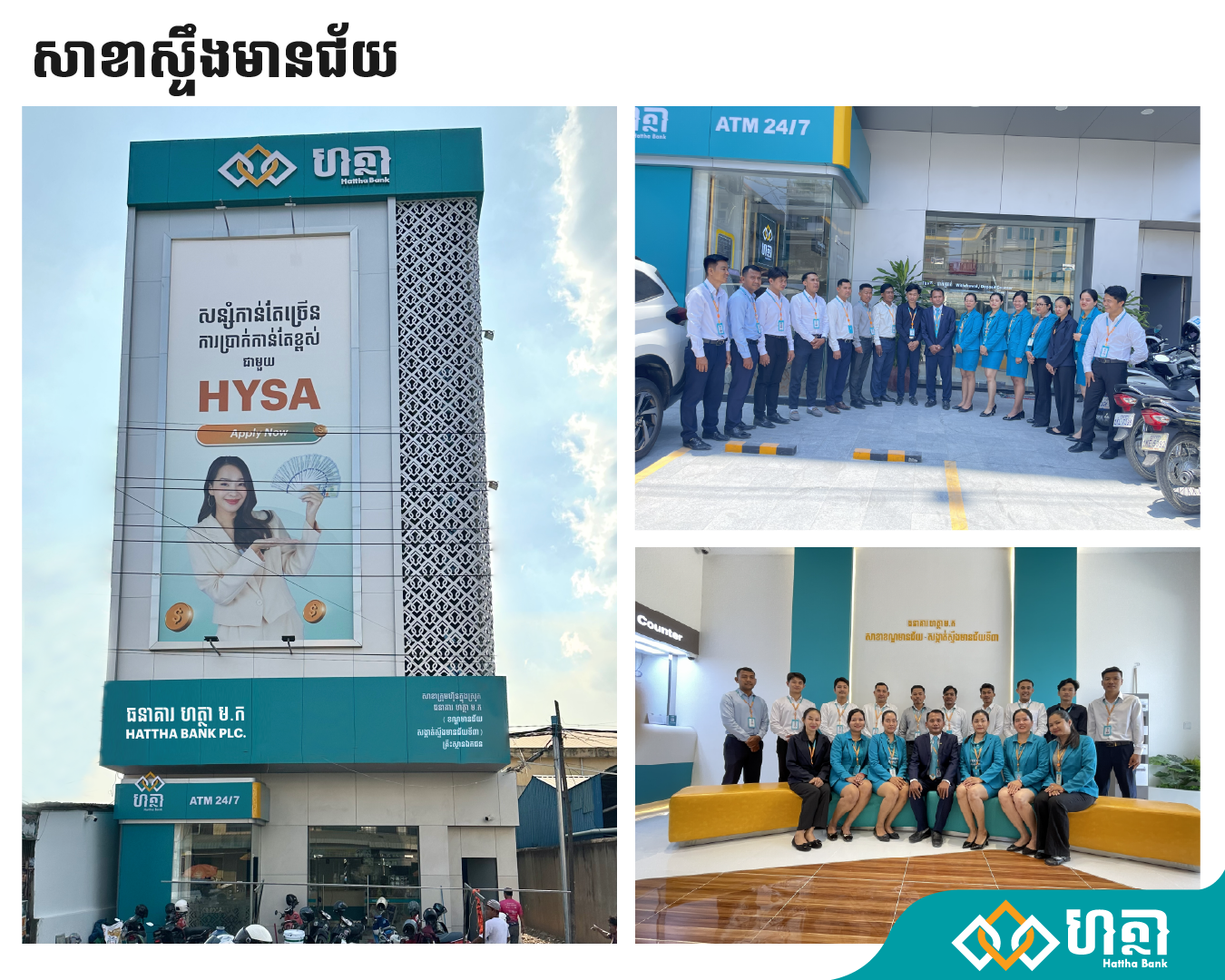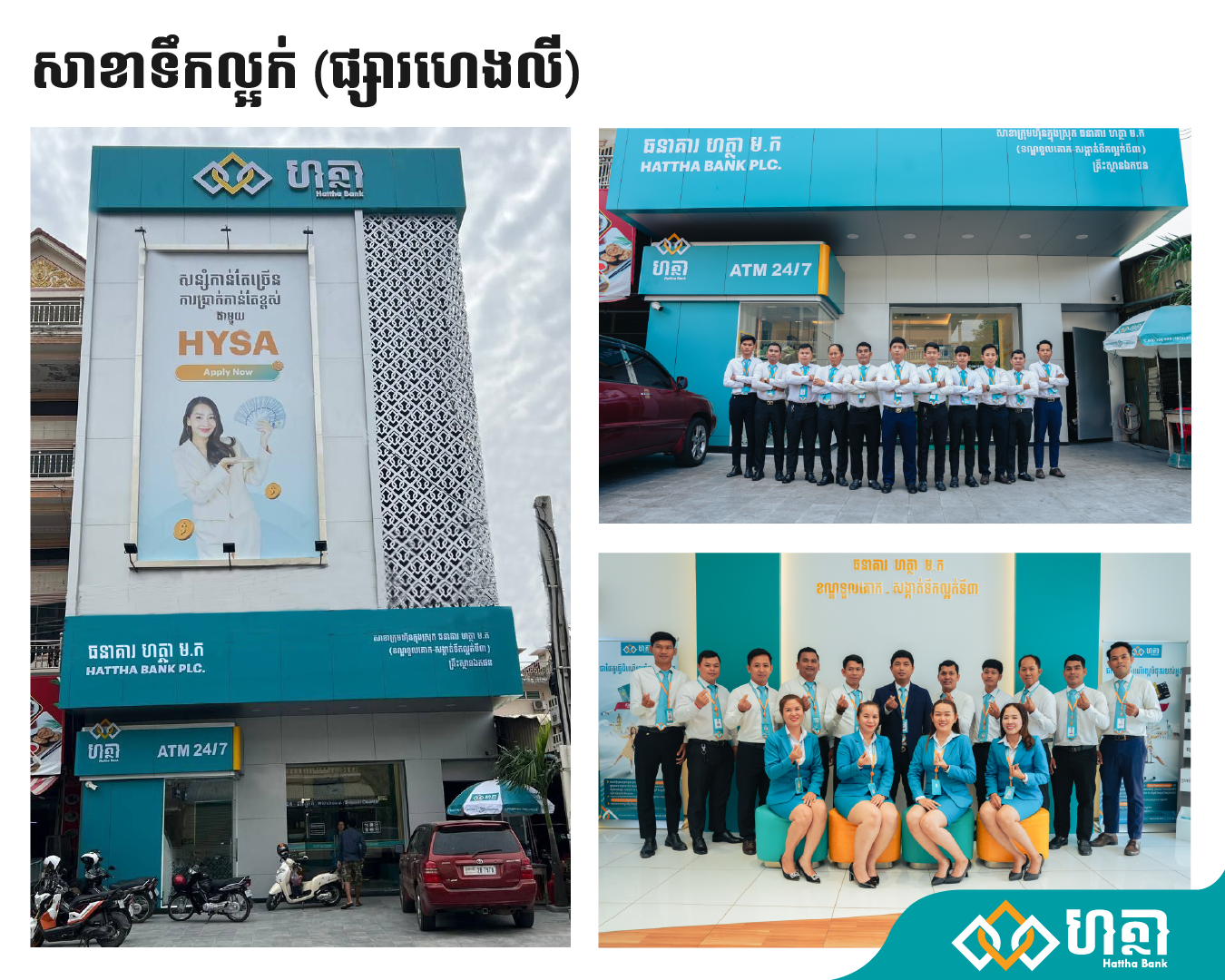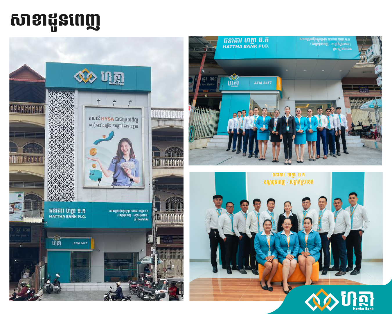 សាខាធនាគារ ហត្ថា រចនាថ្មីដែលបានដាក់សម្ពោធនិងប្រើប្រាស់ជាផ្លូវការក្នុងពេលនេះ រួមមាន ៖