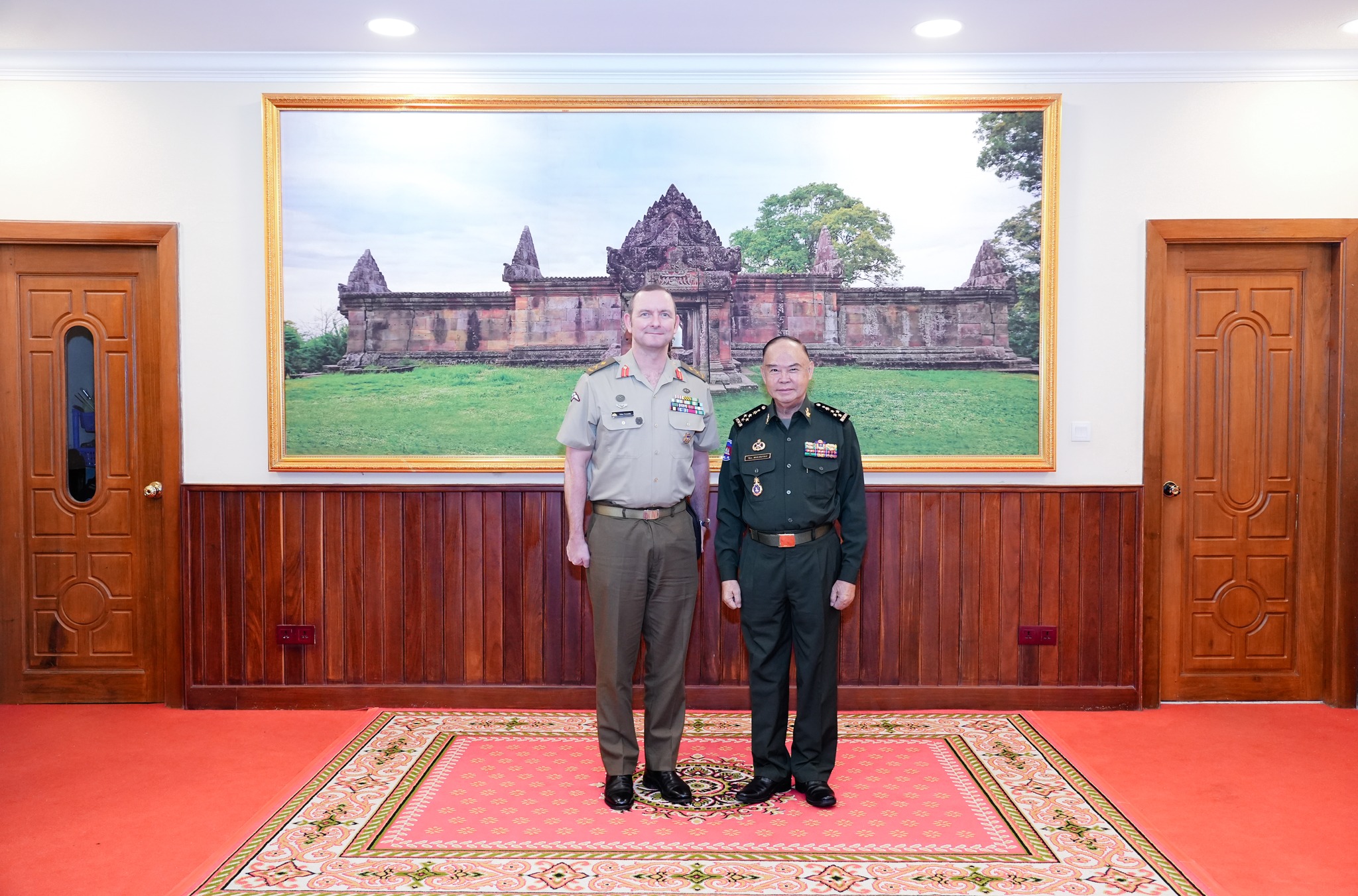 រាជធានីភ្នំពេញ ៖ នៅទីបញ្ជាការកងទ័ពជើងគោក នាថ្ងៃចន្ទ ទី៣០ ខែមីនា ឆ្នាំ២០២៦ នាយឧត្តមសេនីយ៍ ម៉ៅ សុផាន់ អគ្គមេបញ្ជាការរង នៃកងយោធពលខេមរភូមិន្ទ មេបញ្ជាការកងទ័ពជើងគោក បានទទួលជំនួបសម្ដែងការគួរសម និងពិភាក្សាការងារជាមួយ ឧត្តមសេនីយ៍ទោ GILES J.S. CORNELIA មេបញ្ជាការរងកងទ័ពជើងគោកសហរដ្ឋអាមេរិក ប្រចាំតំបន់ប៉ាស៊ីហ្វិក ។