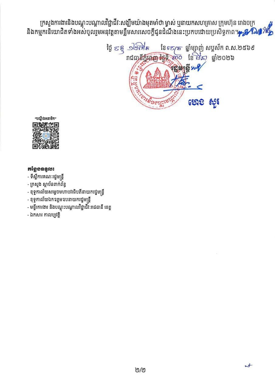 ក្រសួងការងារអំពាវនាវ និងជូនព័ត៌មាន ដល់បងប្អូនកម្មករនិយោជិត ម្ចាស់អាជីវកម្ម និងប្រជាពលរដ្ឋ ក្នុងអំឡុងពិធីបុណ្យចូលឆ្នាំថ្មី