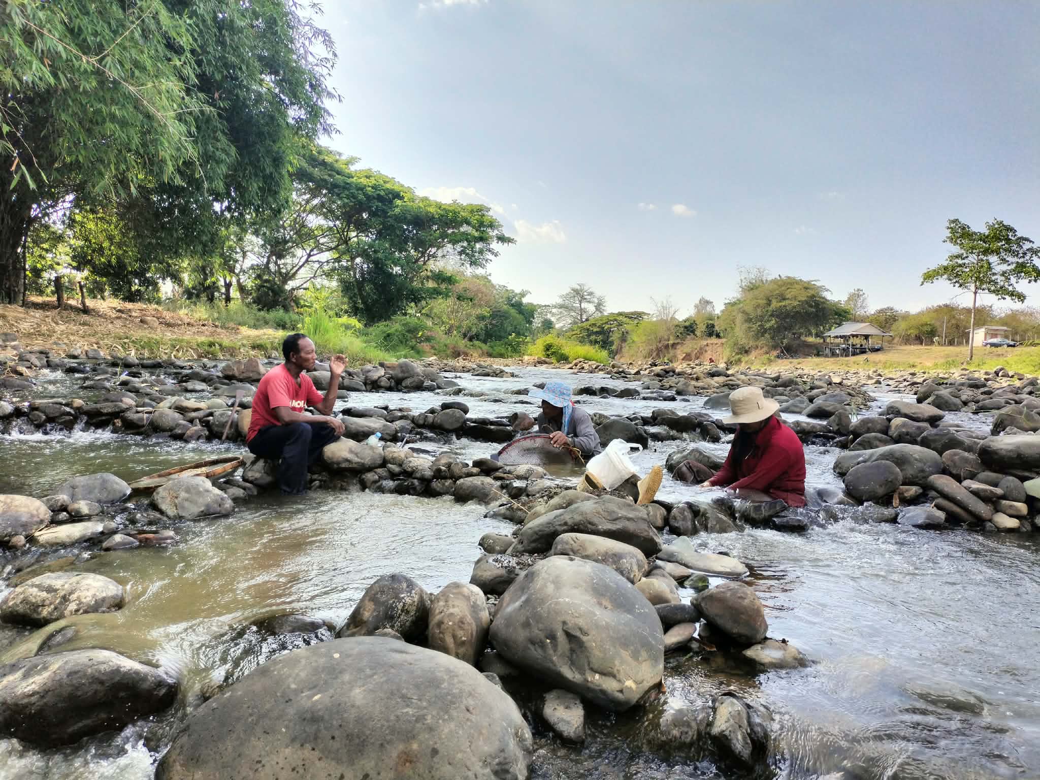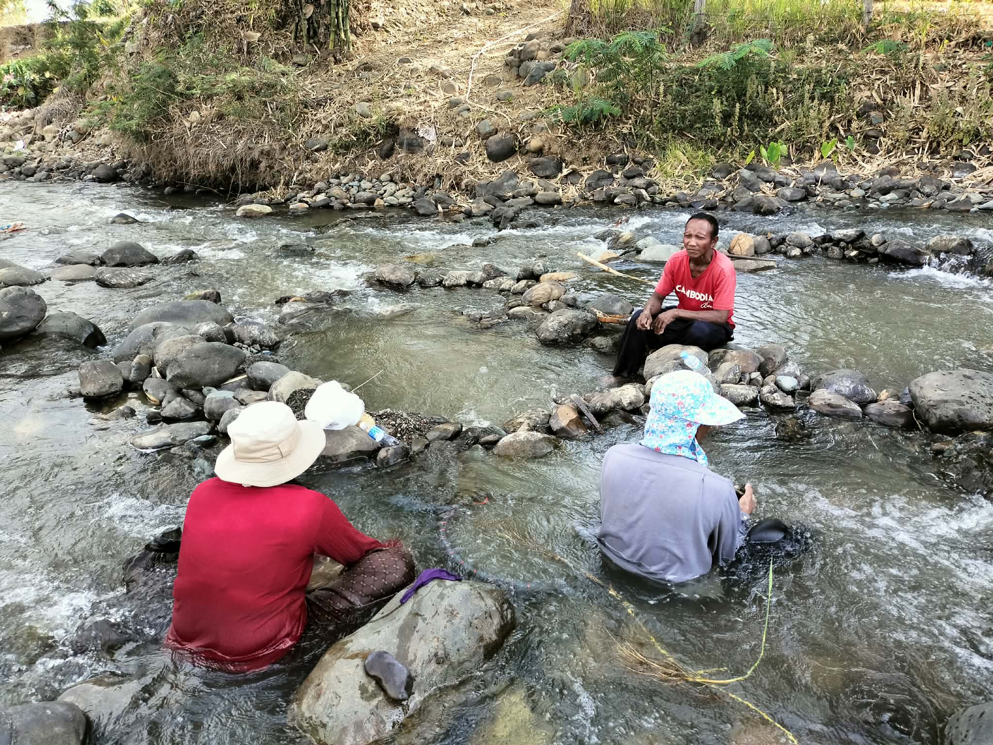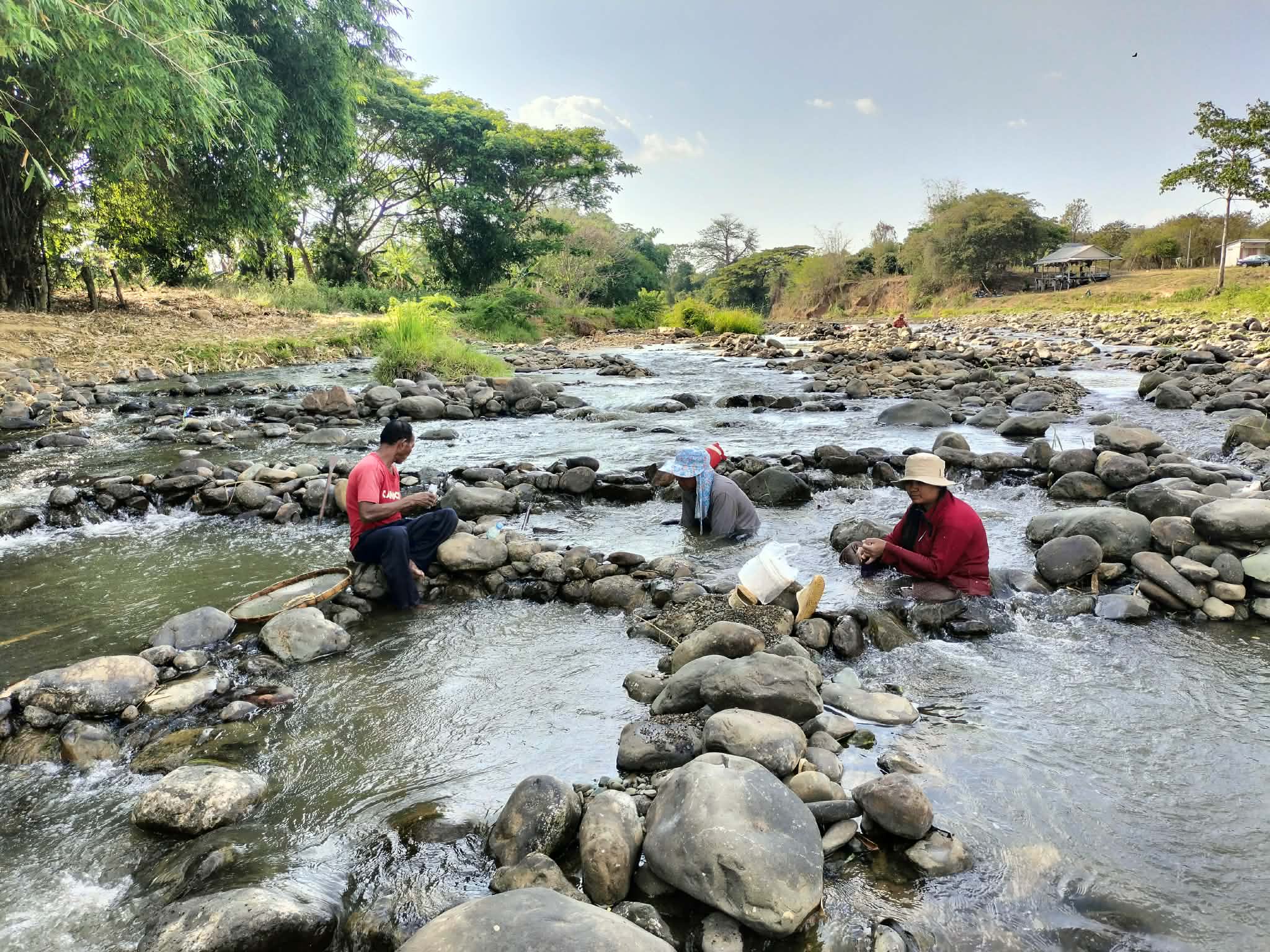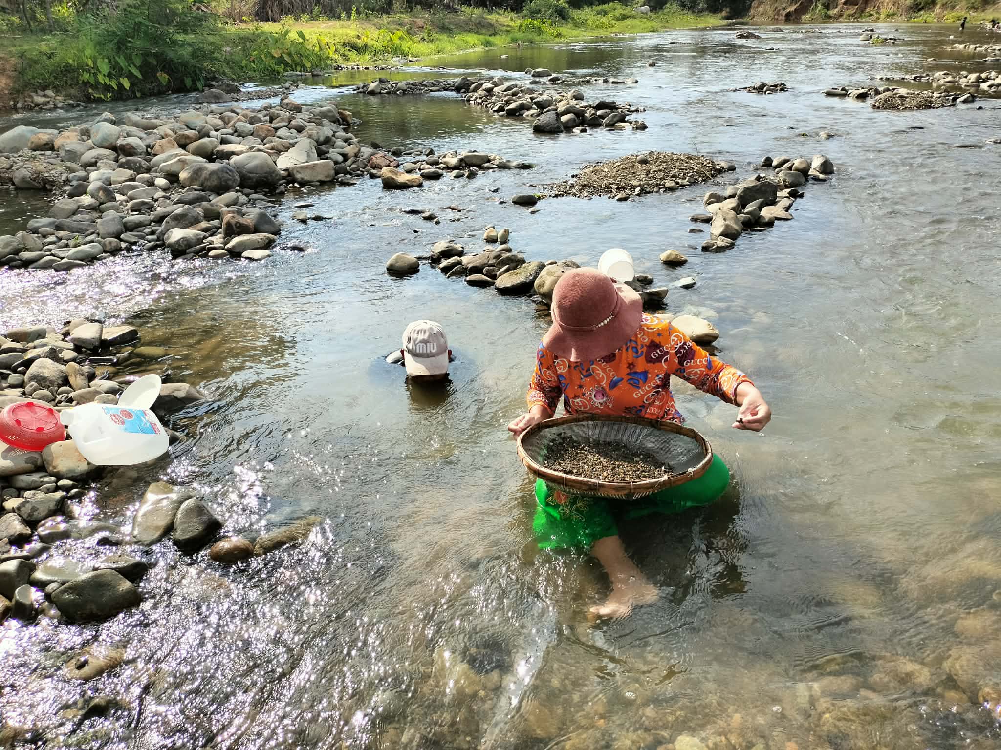 ប្រជាពលរដ្ឋក្មេងចាស់ប្រុសស្រី នាំគ្នាយកកញ្ច្រែងចុះទឹកស្ទឹងរាវរករ៉ែត្បូង នារដូវប្រាំង ផ្សងសំណាង ក្រែងបានលក់យកថវិកាផ្គត់ផ្គង់ជីវភាព