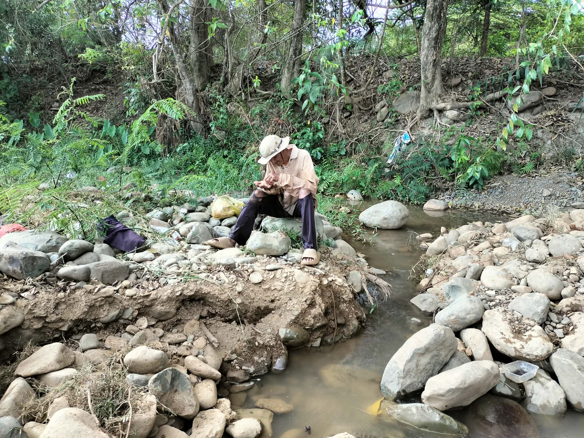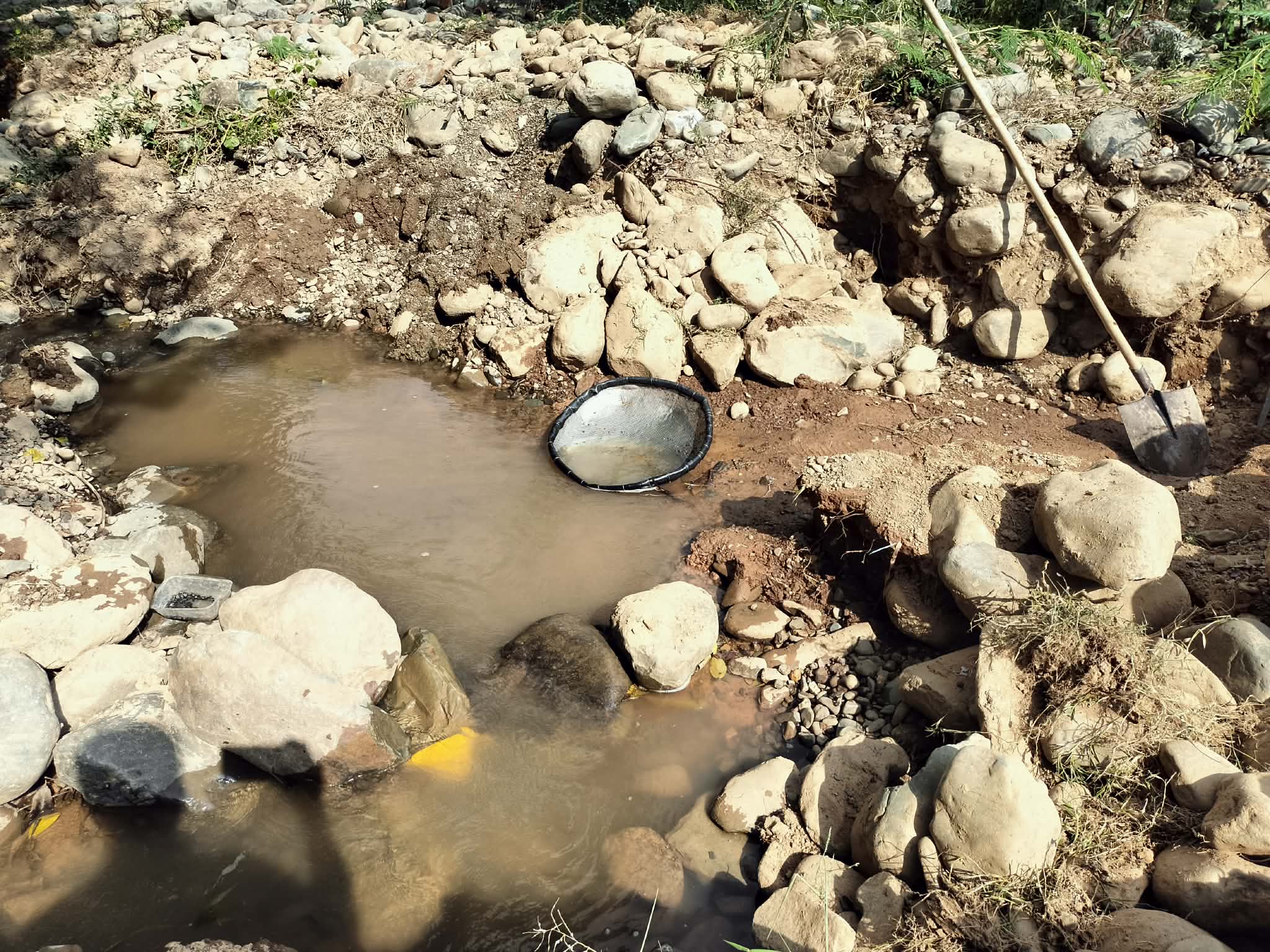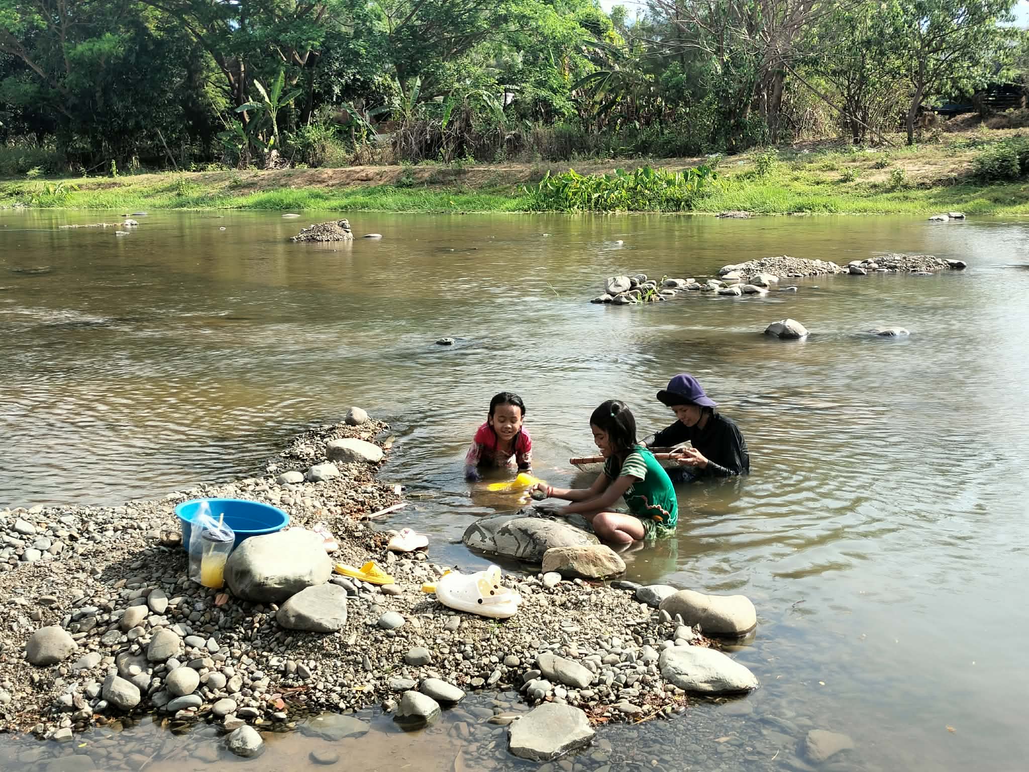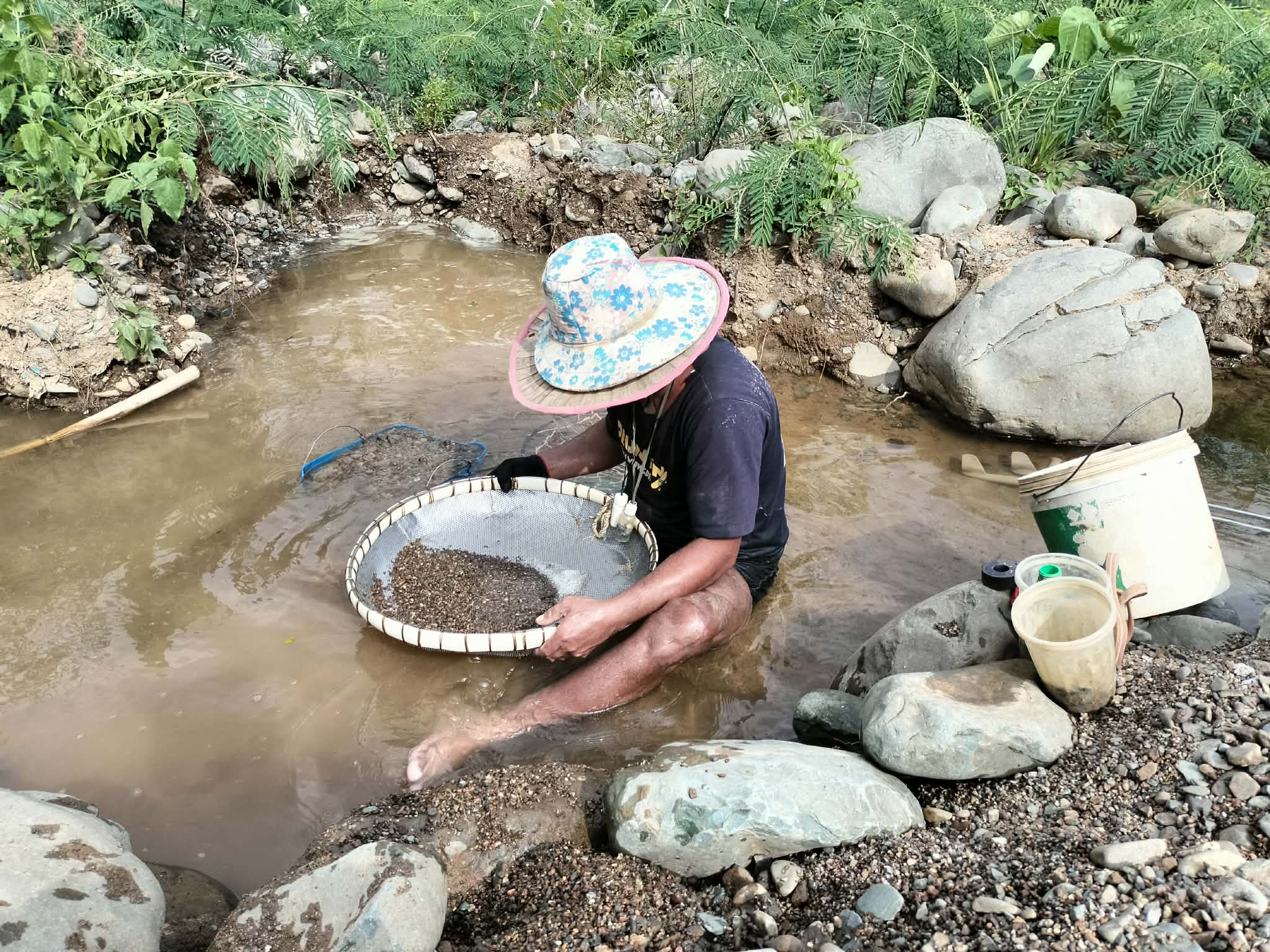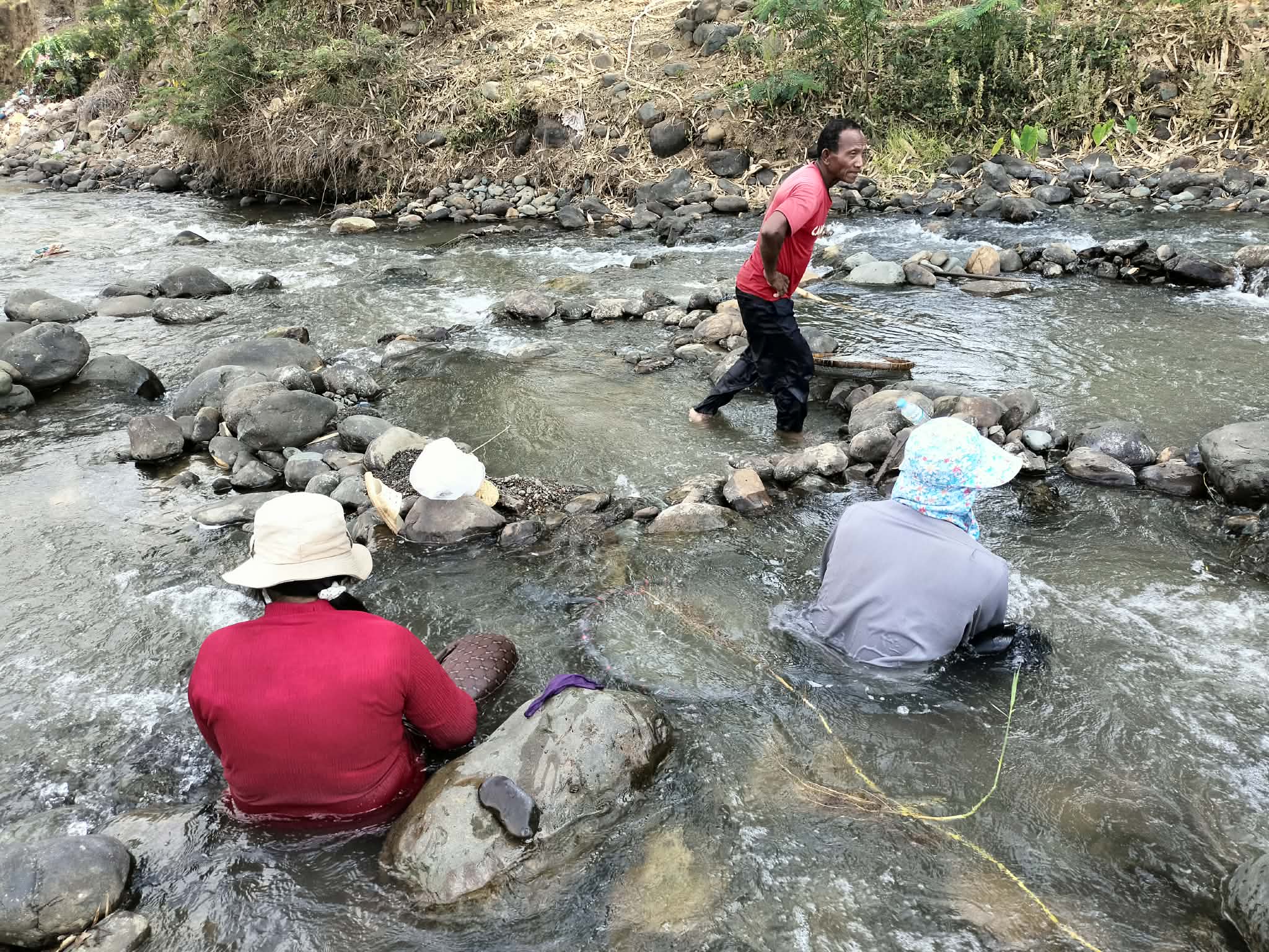 ប្រជាពលរដ្ឋក្មេងចាស់ប្រុសស្រី នាំគ្នាយកកញ្ច្រែងចុះទឹកស្ទឹងរាវរករ៉ែត្បូង នារដូវប្រាំង ផ្សងសំណាង ក្រែងបានលក់យកថវិកាផ្គត់ផ្គង់ជីវភាព