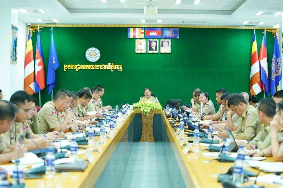 បាលជាតិ កាលពីរសៀលថ្ងៃទី៣១ ខែមីនា ឆ្នាំ២០២៦ ឯកឧត្តមឧត្តមសេនីយ៍ឯក ជួន ណារិន្ទ អគ្គស្នងការរង និងជាស្នងការនគរបាលរាជធានីភ្នំពេញ បានអញ្ជើញដឹកនាំកិច្ចប្រជុំបូកសរុបសភាពការណ៍លទ្ធផលនៃកិច្ចប្រតិបត្តិការការពារសន្តិសុខ រក្សាសណ្តាប់ធ្នាប់ សុវត្ថិភាពសង្គមប្រចាំត្រីមាសទី១ និងលើកទិសដៅការងារបន្តសម្រាប់ត្រីមាសទី២ ឆ្នាំ២០២៦ និងផ្សព្វផ្សាយផែនការការពារ សន្តិសុខ សណ្តាប់ធ្នាប់ និងសុវត្ថិភាពសង្គម ក្នុងឱកាសប្រារព្ធពិធីបុណ្យចូលឆ្នាំថ្មី និងព្រឹត្តិការណ៍ «នគរសង្ក្រាន្ត» ក្នុងរាជធានីភ្នំពេញ។ កិច្ចប្រជុំនេះដែរ មានការចូលរួមពីលោក-លោកស្រីស្នងការរង លោកអនុប្រធានផែនការងារ លោក-លោកស្រីនាយការិយាល័យជំនាញទាំង៣៣ លោកអធិការនគរបាលខណ្ឌទាំង១៤ និងមន្ត្រីពាក់ព័ន្ធមួយចំនួនទៀតផងដែរ។