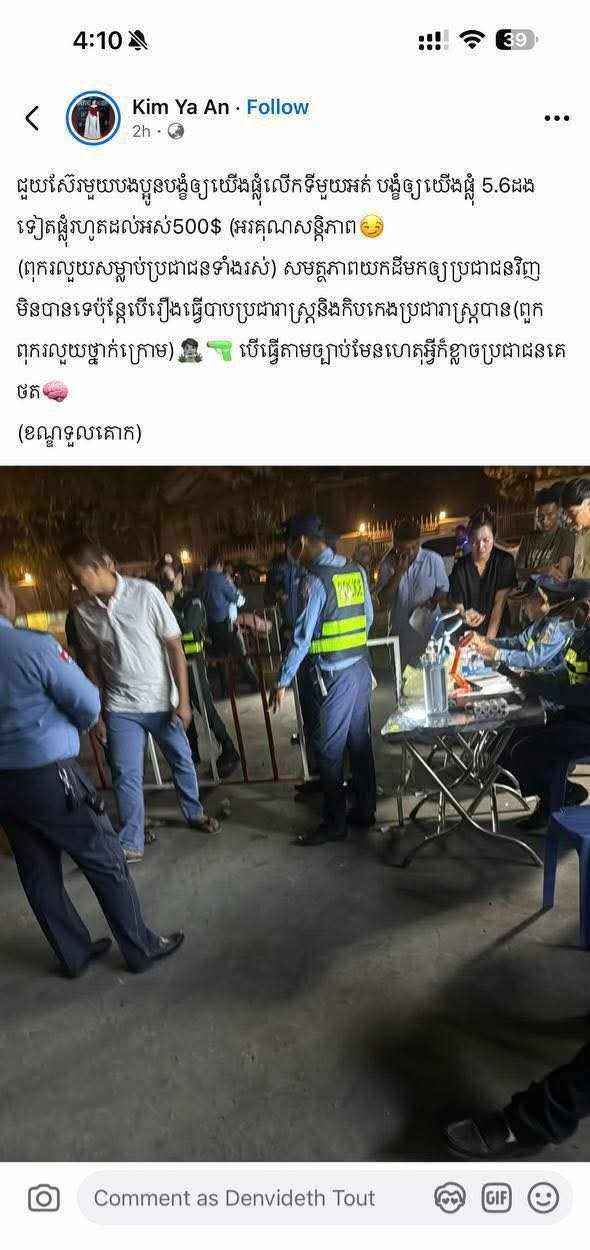 ឃាត់ខ្លួនម្ចាស់គណនីហ្វេសប៊ុកឈ្មោះ Kim Ya An ជាបុរសក្លែងជាស្រី ផ្សព្វផ្សាយព័ត៌មានញុះញង់ឱ្យមានការរើសអើងសមត្ថកិច្ច