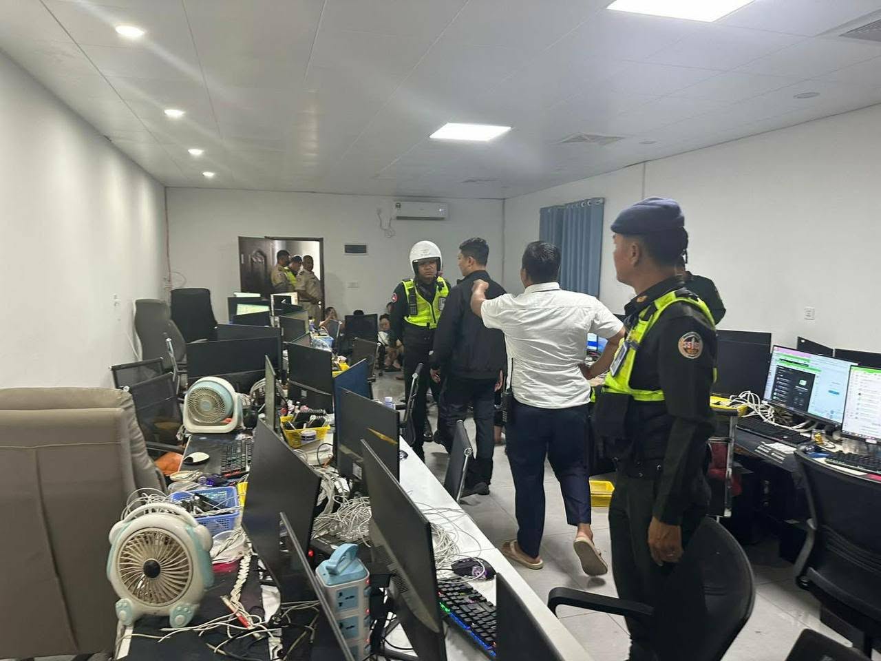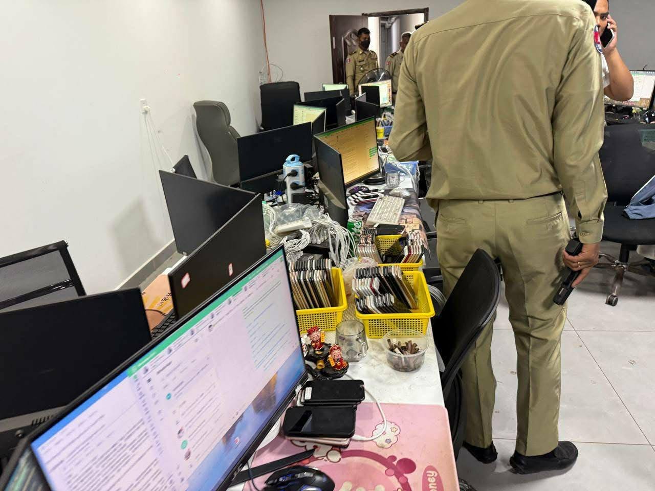 តាមព័ត៌មានបានឲ្យដឹងថា ដោយមានការស្រាវជ្រាវពីកម្លាំងជំនាញពីទីតាំងលួចលាក់ប្រព្រឹត្តបទល្មើស Online Scams កម្លាំងនគរបាលជំនាញនៃស្នងការដ្ឋាននគរបាលរាជធានីភ្នំពេញ សហការជាមួយកម្លាំងអាវុធហត្ថ និងអាជ្ញាធរចុះបង្ក្រាបឆែកឆេរតែម្ដង ។