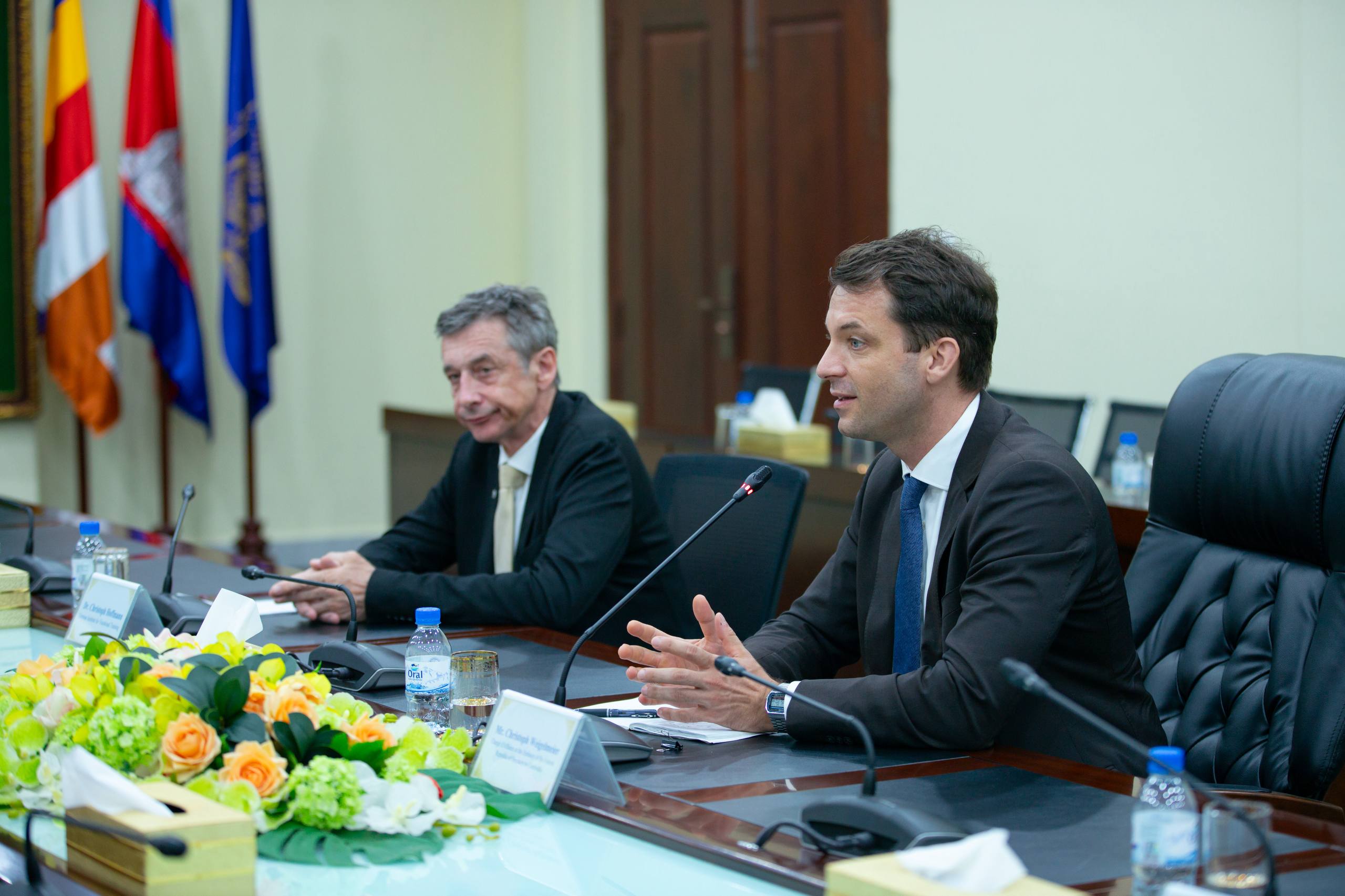 ជាមួយនឹងការស្វាគមន៍យ៉ាងកក់ក្តៅ ឯកឧត្តមរដ្ឋមន្ត្រីបានថ្លែងអំណរគុណយ៉ាងជ្រាលជ្រៅចំពោះ លោក Weigelmeier និងលោកបណ្ឌិត Hoffmann ដែលបានបង្ហាញចំណាប់អារម្មណ៍ក្នុងការពង្រីកកិច្ចសហប្រតិបត្តិការលើការបណ្តុះបណ្តាលវិជ្ជាជីវៈ និងការអភិវឌ្ឍជំនាញកម្លាំងពលកម្ម។ ឯកឧត្តមបានរំឮកផងដែរពីប្រវត្តិដ៏យូរអង្វែង និងសមិទ្ធផលនានារបស់អាល្លឺម៉ង់ ដែលបានជួយជ្រោមជ្រែងដល់ការអភិវឌ្ឍធនធានមនុស្ស នៅកម្ពុជានាពេលកន្លងមក ។