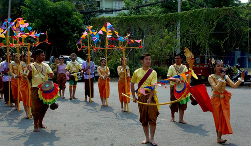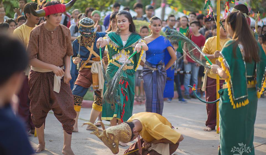 -កន្ទុយក្ងោក ៖ យកកន្ទុយក្ងោកមែនទែនមកកាន់ ហើយកាច់កែឲ្យមានសណ្ឋានដូចសត្វក្ងោកមែនទែន ។