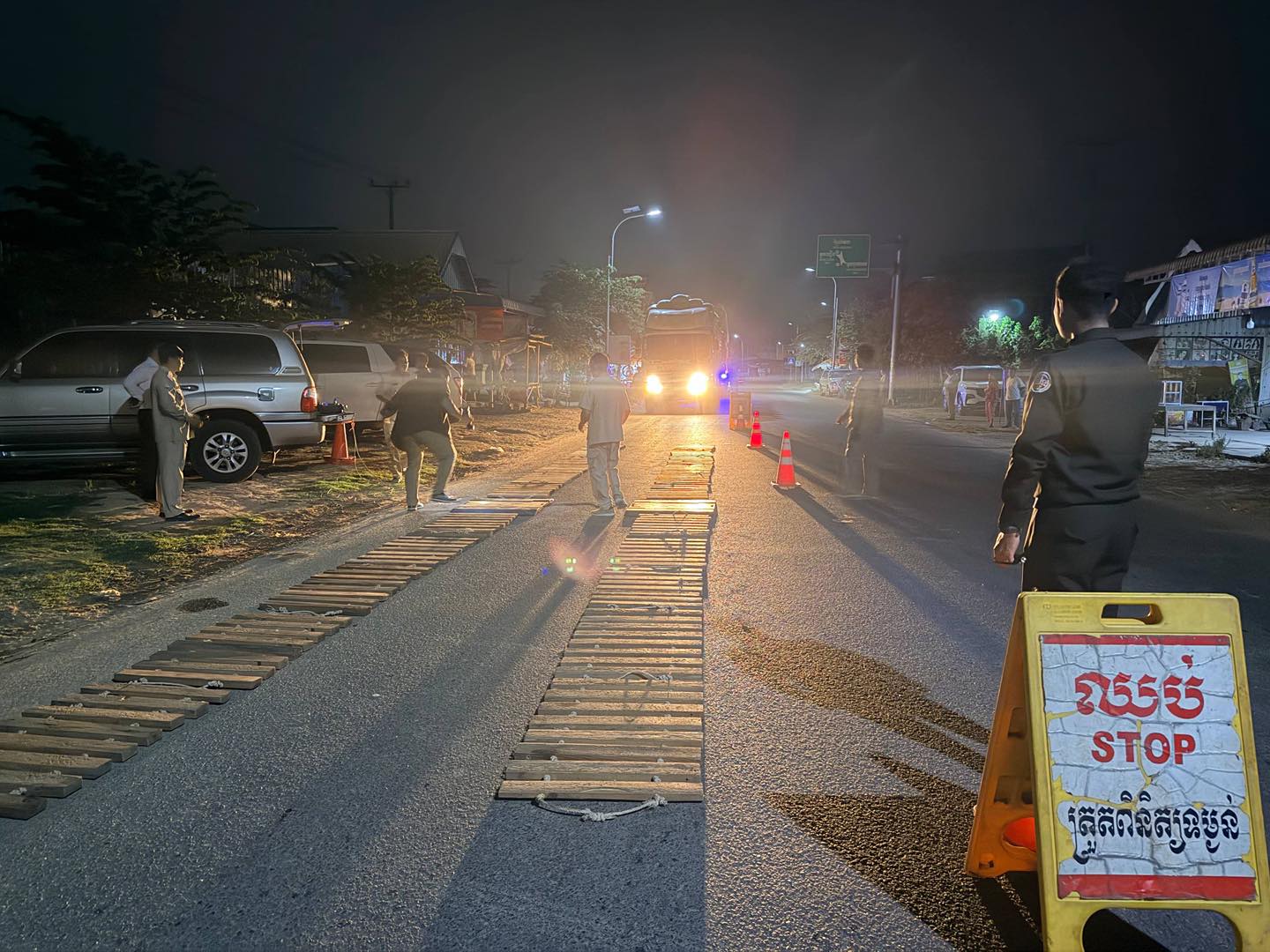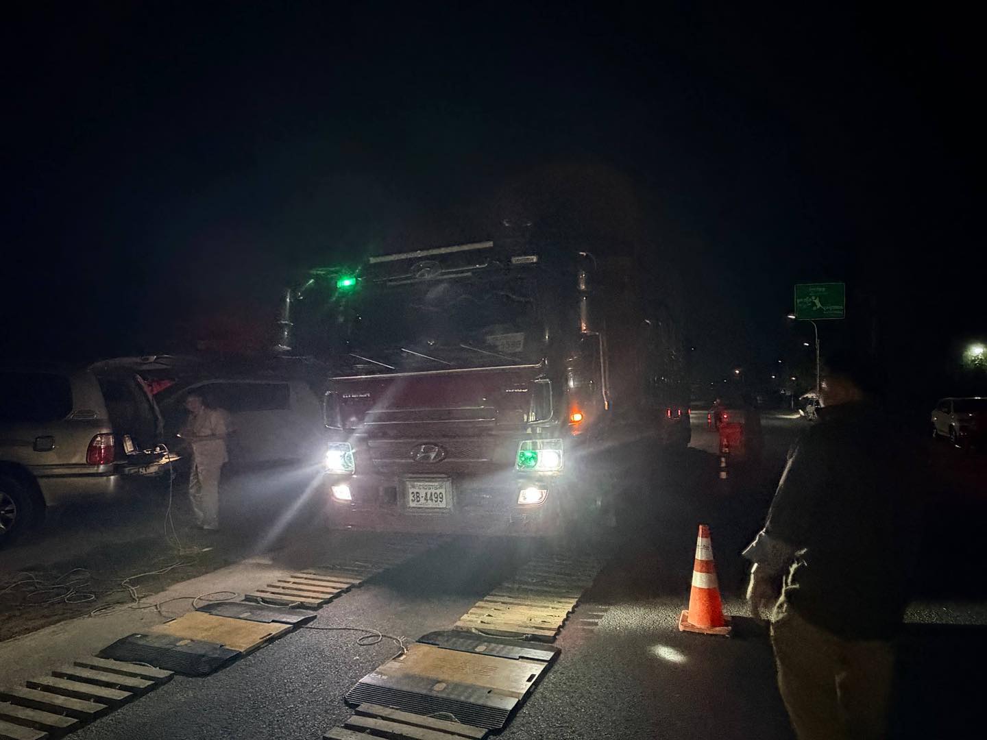 នៅវេលាម៉ោង១២:៣០នាទីទៀបភ្លឺ ព្រឹកថ្ងៃទី៣ ខែមេសា ឆ្នាំ២០២៦ ក្រុមការងារត្រួតពិនិត្យចល័តរបស់ក្រសួង ដឹកនាំដោយឯកឧត្តម ប៉េង ពោធិ៍នា រដ្ឋមន្ត្រីក្រសួងសាធារណការ និងដឹកជញ្ជូន និងជាប្រធានគណៈកម្មាធិការដឹកនាំការត្រួតពិនិត្យយានយន្តដឹកជញ្ជូន លើសទម្ងន់កម្រិតកំណត់សហការជាមួយស្ថានីយជញ្ជីងអចល័ត ព្រៃព្នៅ ខេត្តព្រៃវែង ព្រមទាំងកងកម្លាំងសមត្ថកិច្ចពាក់ព័ន្ធ ចុះប្រតិបត្តិការត្រួតពិនិត្យយានយន្តដឹកជញ្ជូនលើសទម្ងន់កម្រិតកំណត់ នៅទីតាំងចំណុចផ្លូវលេខ៣៨៤ ភូមិភ្លយ សង្កាត់តាកោ ក្រុងព្រៃវែង ខេត្តព្រៃវែង ក្រុមការងារឃាត់បានរថយន្តចំនួន២គ្រឿង ។