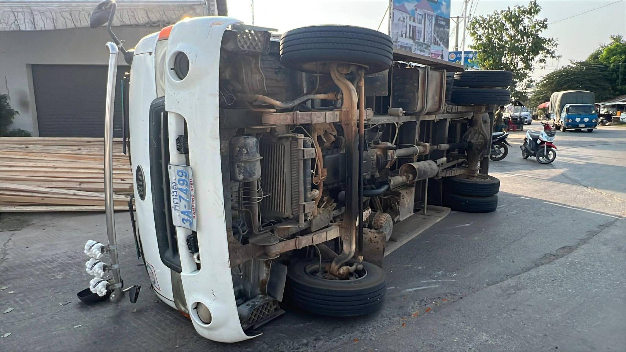 អ្នកភូមិខាងលើ បានប្រាប់ថា រថយន្តដែលក្រឡាប់នោះម៉ាកគា (KIA) ពណ៌ស ពាក់ស្លាកលេខកំពង់ស្ពឺ 3A-7499 ដឹកឈើស្រល់ពេញទ្រុង បើកបរដោយបុរសម្នាក់ ដែលពុំដឹងថា ដឹកឈើស្រល់នោះមកពីទីណា និងយកទៅដាក់នៅកន្លែងណាមួយនោះទេ ។ មិនតែប៉ុណ្ណោះ ក៏ពុំដឹងថា ជាឈើមានច្បាប់ឬឈើអត់ច្បាប់នោះដែរ ដោយឡែកនៅមុនពេលកើតហេតុ រថយន្តនេះបានបើកបរធ្វើដំណើរតាមផ្លូវបេតុងផ្សារទួលលៀប ក្នុងទិសដៅពីកើតទៅលិច ក្នុងល្បឿនលឿនគ្រាន់បើដែរ ។