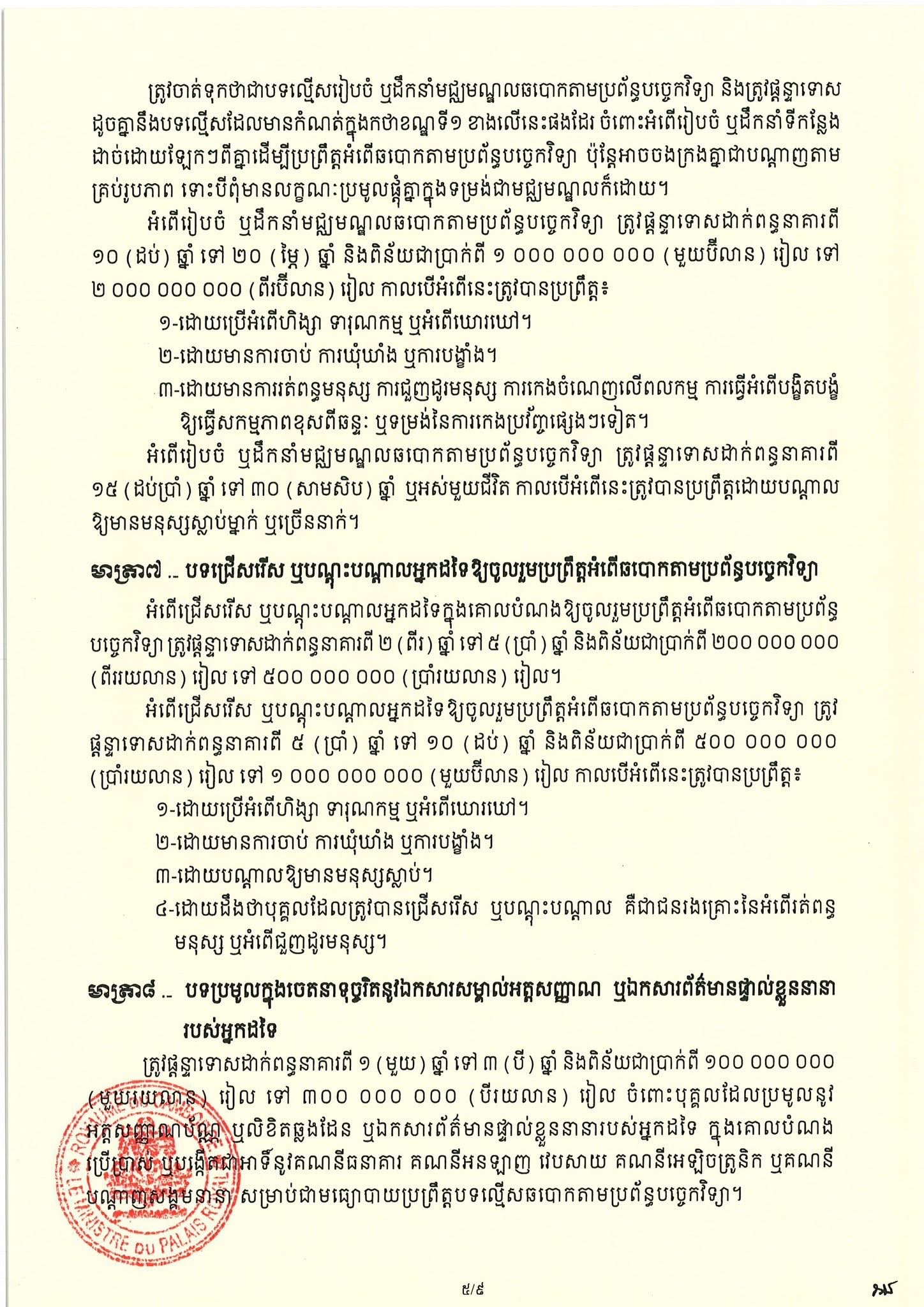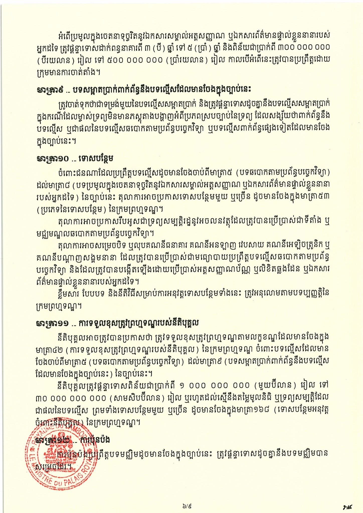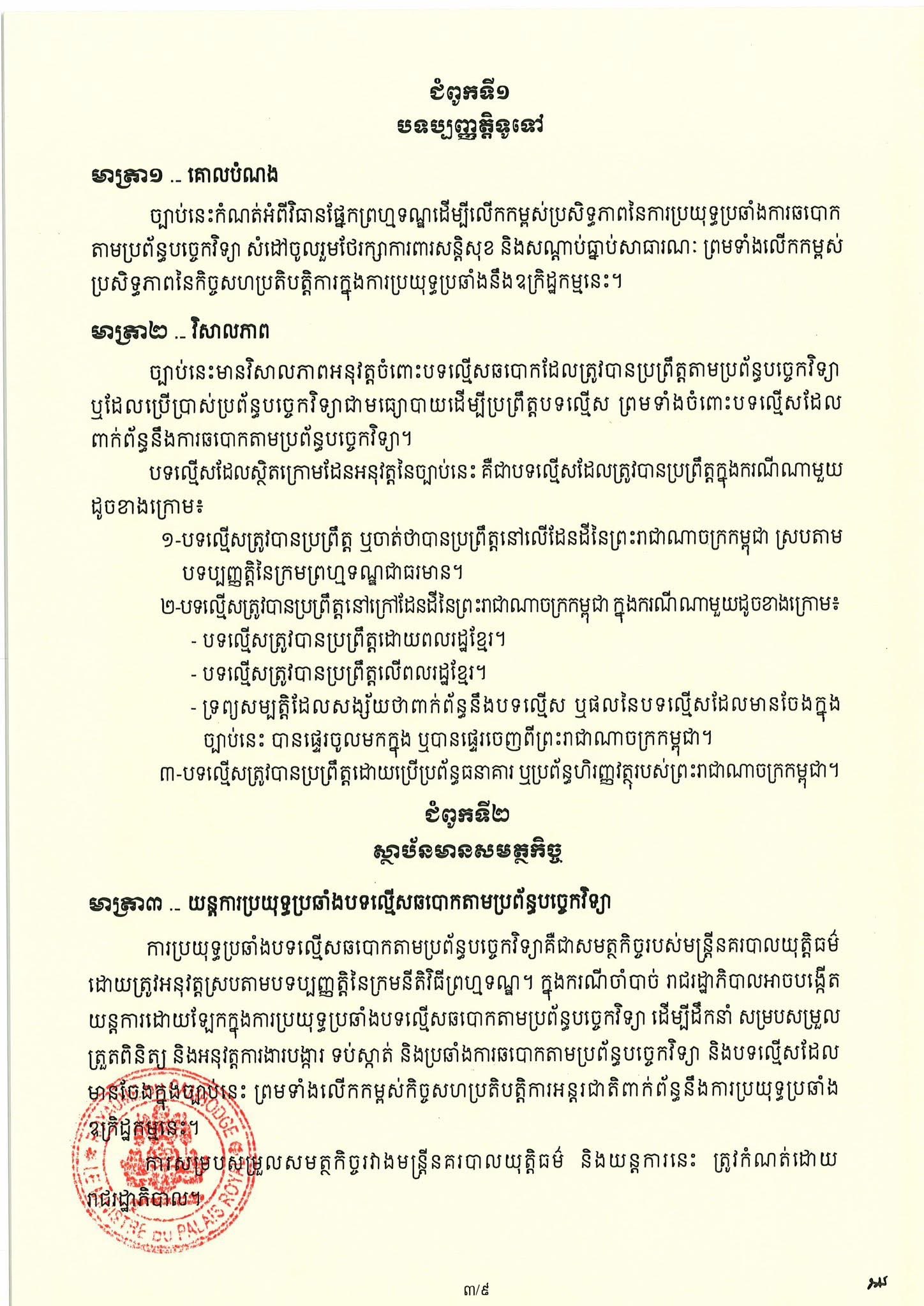 ព្រះរាជក្រម ប្រកាសឱ្យប្រើច្បាប់ ស្តីពីការប្រឆាំងការឆបោកតាមប្រព័ន្ធបច្ចេកវិទ្យា
