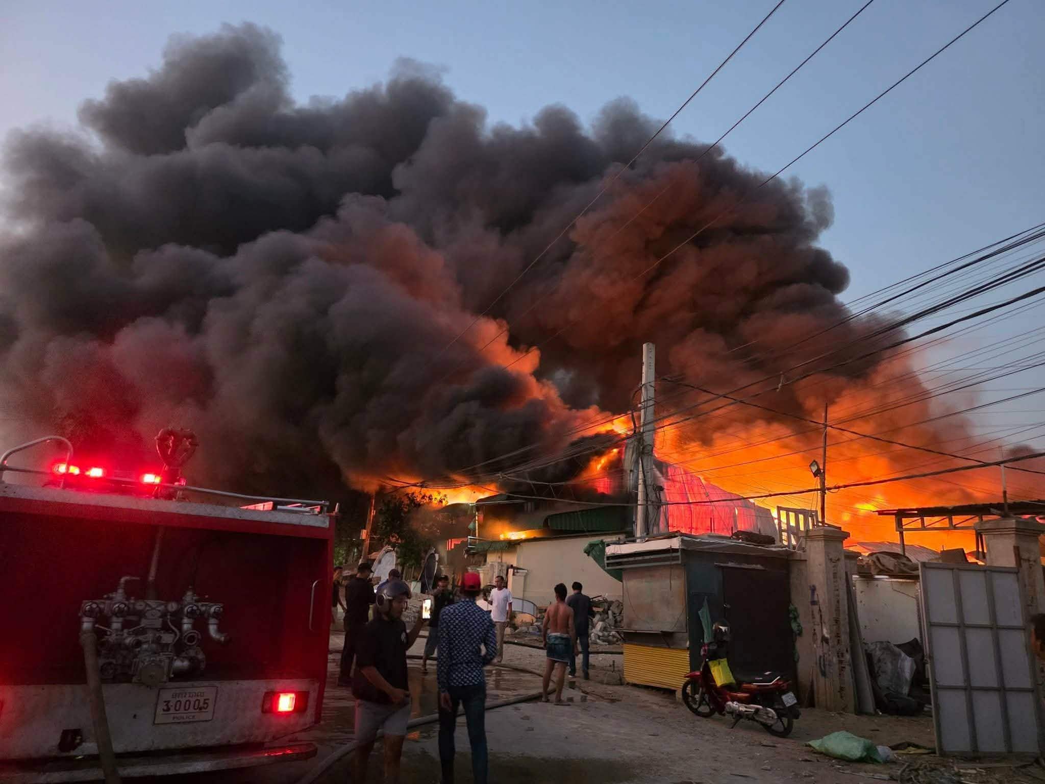 តាមសាក្សីបានឲ្យដឹងថា នៅមុនពេលកើតហេតុគឺឃើញភ្លើងបានឆាប់ឆេះយ៉ាងសន្ធោរសន្ធៅចេញពីឃ្លាំងដែលដេគ័រខាងលើហើយឆេះរាលដាយ៉ាងឆាប់រហ័សទៅឃ្លាំងស្តុកគ្រឿង សំណង់ដែលនៅជាប់នោះនិងឆេះរាលដាលយ៉ាងសន្ធោសន្ធៅ។ភ្លាមៗបង្កឲ្យមានការភ្ញាក់ផ្អើលយ៉ាងខ្លាំងដល់ប្រជាពលរដ្ឋបាននាំគ្នាជញ្ជូនអីវ៉ាន់ចេញនិងទាក់ទងហៅរថយន្តពន្លត់អគ្គីភ័យជាច្រើនគ្រឿងទៅអន្តរាគមន៍បាញ់ពន្លត់។