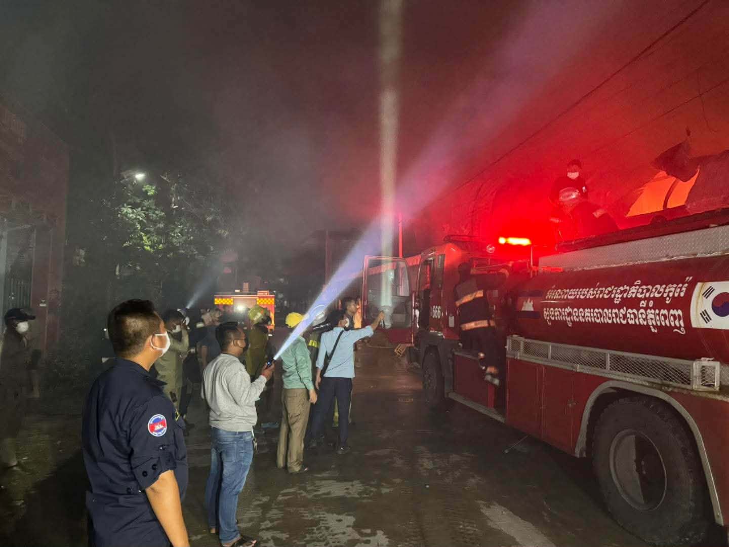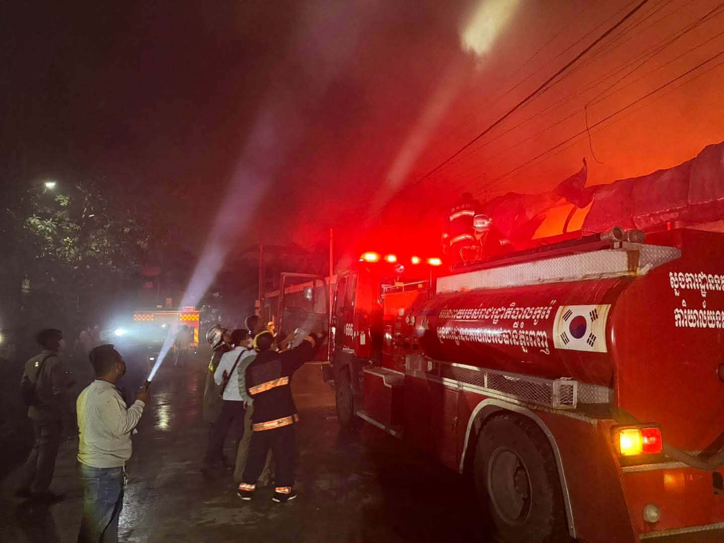 តាមនគរបាលការិយាល័យបង្ការពន្លត់អគ្គីភ័យនិងសង្គ្រោះនៃស្នងការនគរបាលរាជធានីភ្នំពេញបានឲ្យដឹងថា បន្ទាប់ពីកើតមានអគ្គិភ័យនគរបាល ជំនាញបានចេញរថយន្តទៅអន្តរាគមន៍ភ្លាមៗចំនួន២៦គ្រឿងដែលក្នុងនោះរថយន្តការិ .អគ្គិភ័យ : ចំនួន ២១គ្រឿង ប្រេីប្រាស់ទឹកអស់ចំនួន ១៤៧ឡាន ស្មើនឹង ៥៨៨ម៉ែត្រគូប ,រថយន្តអគ្គិភ័យកងរាជអាវុធហត្ថចំនួន ០២គ្រឿង ប្រើប្រាស់ទឹកអស់ចំនួន ០១ឡាន ស្មើនឹង ០៦ម៉ែត្រគូប ,រថយន្តអគ្គិភ័យបុរីប៉េងហួតចំនួន០២គ្រឿង ប្រើប្រាស់ទឹកអស់ចំនួន ០៦ឡាន ស្មើនឹង ៣៦ម៉ែត្រគូប និងរថយន្តអគ្គិភ័យស្រាបៀរកម្ពុជាចំនួន ០១គ្រឿង ប្រើប្រាស់ទឹកអស់ចំនួន ០៣ឡាន ស្មើនឹង ១៨ម៉ែត្រគូប ហើយភ្លើងបានរលត់នៅម៉ោង ២៣នឹង៥៥នាទីយប់ នាថ្ងៃខែ ឆ្នាំដដែល។