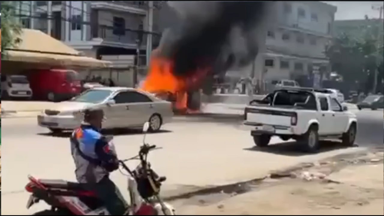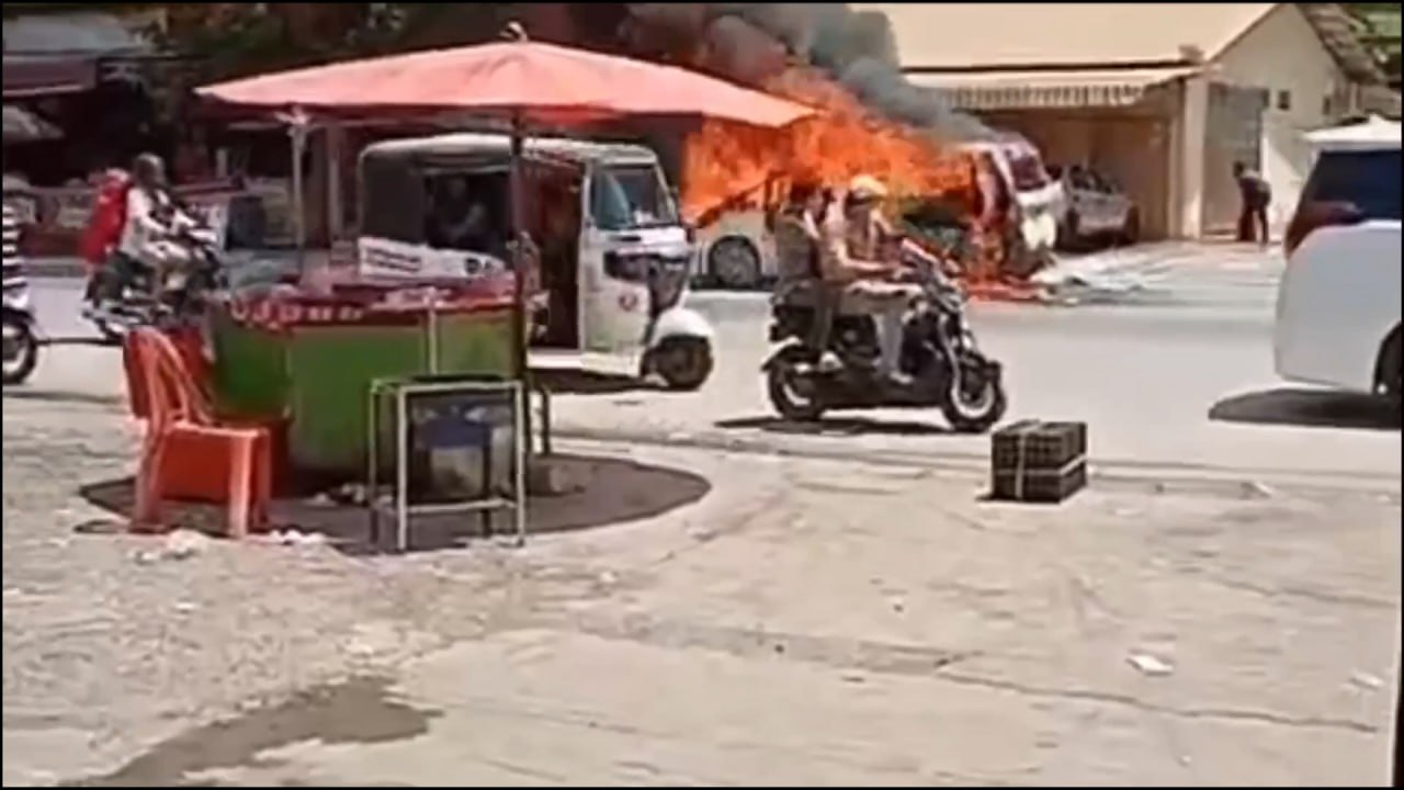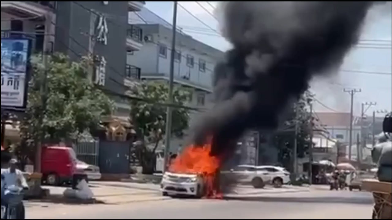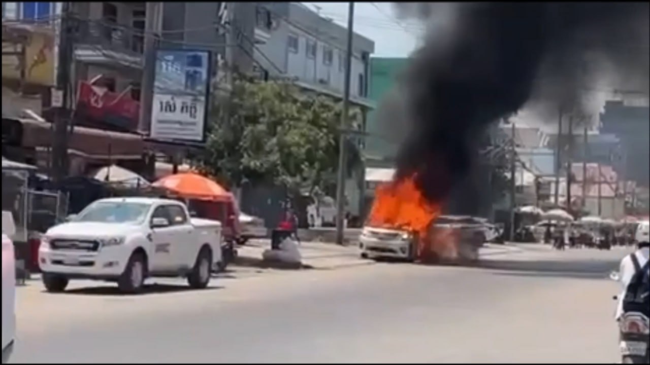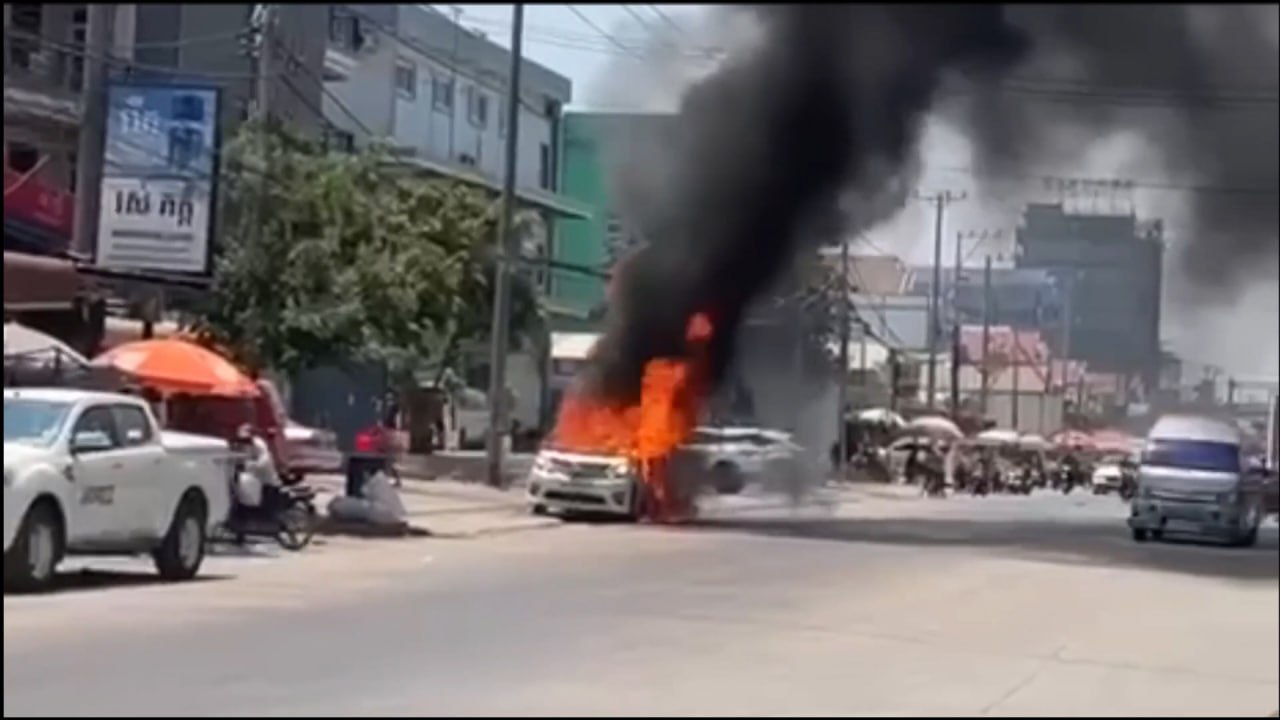 ខេត្តបន្ទាយមានជ័យ ៖ រថយន្តអាល់ហ្វាដ១គ្រឿង ខណៈកំពុងបើកបរស្រាប់តែត្រូវភ្លើងហុយផ្សែងទ្រលោម ហើយអណ្ដាតភ្លើងបានឆេះរោលដល់គូទរថយន្ត៣គ្រឿងដែលចតនៅក្បែរនោះ ។ ករណីនេះ កើតឡើងកាលពីរសៀលថ្ងៃទី៦ ខែមេសា ឆ្នាំ២០២៦កន្លងទៅ នៅផ្សារកណ្តាល ក្នុងសង្កាត់ផ្សារកណ្តាល ក្រុងប៉ោយប៉ែត។