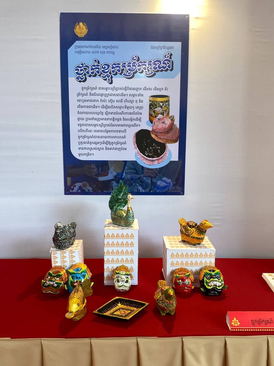 លោក យុន តារារ័ត្ន អាយុ៥២ឆ្នាំ ជំនាញសិល្បៈសូនរូប និងជាគ្រូបង្គោលក្នុងគម្រោងបណ្តុះបណ្តាលជំនាញវិជ្ជាជីវៈដូនតាអស់រយៈពេល១១ខែមកហើយ ។ គ្រូបង្គោលរូបនេះបានឱ្យដឹងថា ខ្មុកម្រ័ក្សណ៍ គឺជាខ្មុកធ្វើពីស្មាច់ ឬក្រដាស និងម្រ័ក្សណ៍ជាដើម ។ ចំណេះដឹងធ្វើខ្មុកម្រ័ក្សណ៍នេះ មានរាប់រយឆ្នាំមកហើយនៅក្នុងសង្គមខ្មែរ ។ ការណ៍នេះ គេត្រូវតែបណ្តុះបណ្តាលបន្តដើម្បីឱ្យចំណេះដឹងនេះមានភាពទូលំទូលាយ និងកុំឱ្យបាត់បង់ ។ ចំពោះមុខខ្មុក ចាស់បុរាណធ្វើឡើងសម្រាប់ពាក់សម្តែងល្ខោនខោល មានតួអង្គផ្សេងៗនៅក្នុងរឿងរាមកេរ្តិ៍ ។