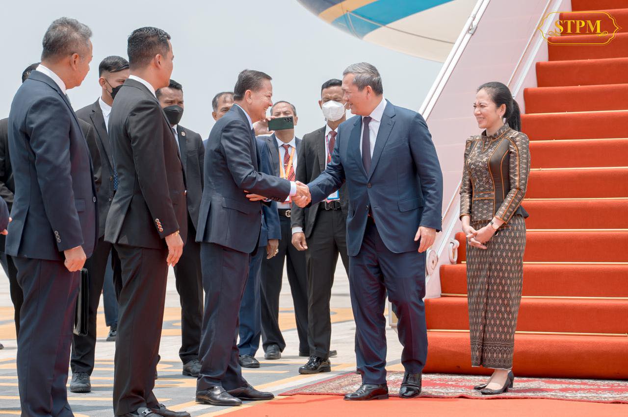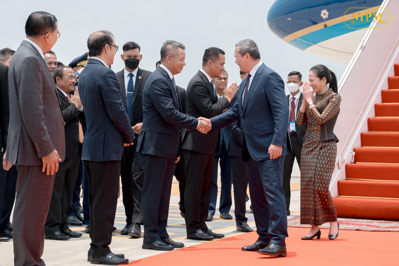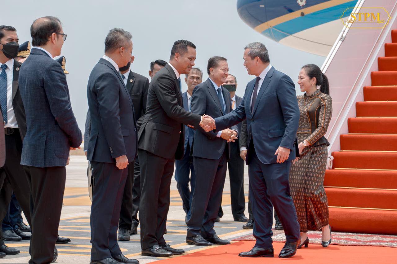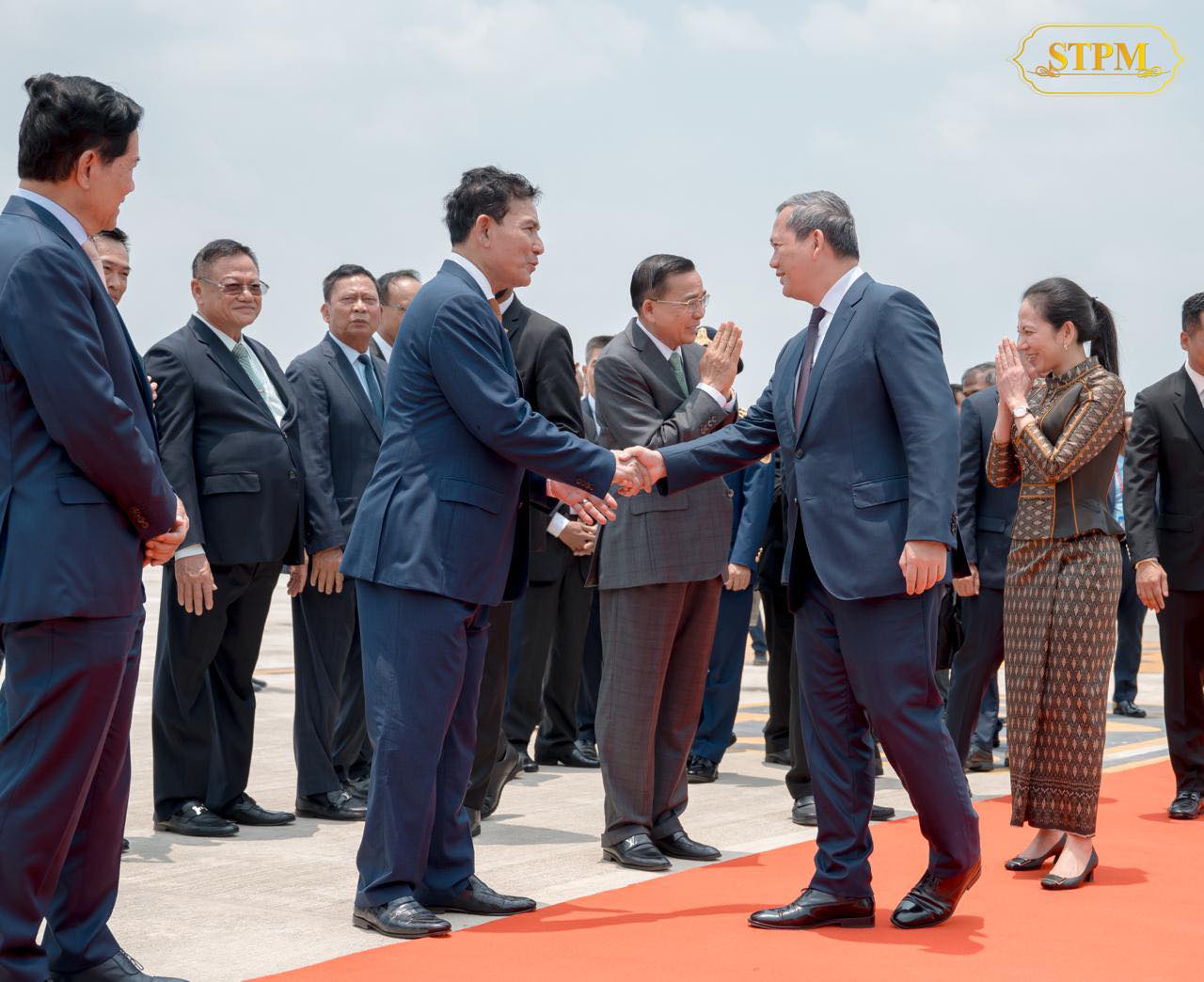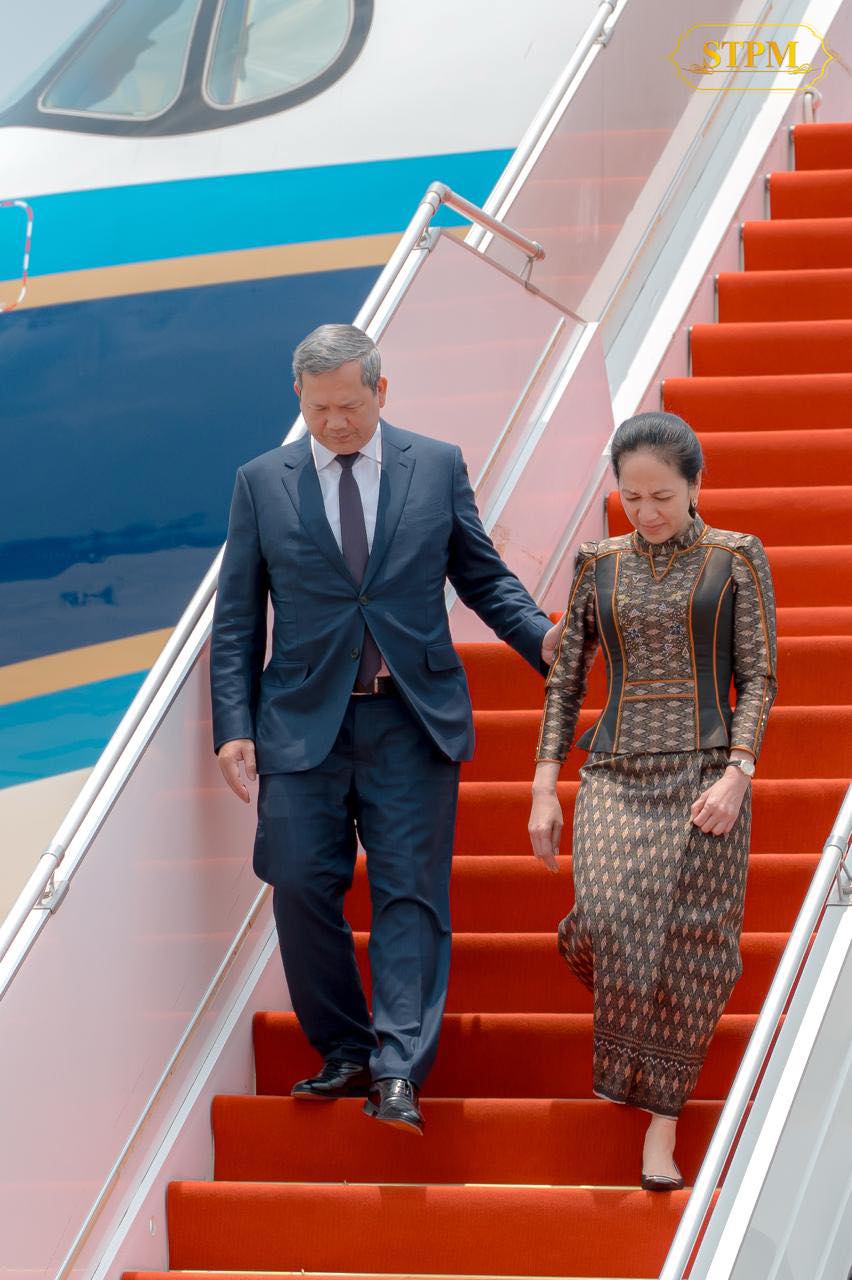 សម្តេចមហាបវរធិបតី ហ៊ុន ម៉ាណែត នាយករដ្ឋមន្ត្រី នៃព្រះរាជាណាចក្រកម្ពុជា និងលោកជំទាវបណ្ឌិត ពេជ ចន្ទមុន្នី ហ៊ុនម៉ាណែត ដឹកនាំគណៈប្រតិភូជាន់ខ្ពស់កម្ពុជា អញ្ជើញមកដល់អាកាសយានដ្ឋានអន្តរជាតិតេជោ ខេត្តកណ្តាល នាព្រឹកថ្ងៃទី៩ ខែមេសា ឆ្នាំ២០២៦ បន្ទាប់ពីបានអញ្ជើញទៅចូលរួមកិច្ចប្រជុំកំពូលស្តីពីសុខភាពតែមួយ និងធ្វើទស្សនកិច្ចការងារ នៅទីក្រុងលីយ៉ុង និងទីក្រុងប៉ារីស តបតាមការអញ្ជើញរបស់ ឯកឧត្តម Emmanuel Macron ប្រធានាធិបតីសាធារណរដ្ឋបារាំង ។