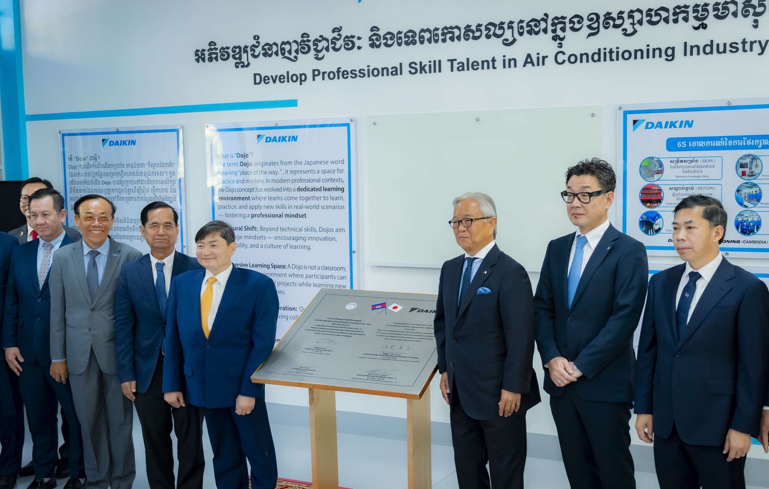 ការដាក់ឱ្យដំណើរការ Daikin Dojo គឺជាចំណុចរបត់ដ៏សំខាន់មួយក្នុងភាពជាដៃគូ ជាមួយវិទ្យាស្ថានបច្ចេកទេសឧស្សាហកម្ម តាមរយៈការបង្កើតមជ្ឈមណ្ឌលបណ្តុះបណ្តាលបច្ចេកទេសម៉ាស៊ីនត្រជាក់ Daikin ដំបូងគេបង្អស់ នៅក្នុងវិស័យអប់រំបណ្តុះបណ្តាលបច្ចេកទេស និងវិជ្ជាជីវៈ (TVET) នៅកម្ពុជា ។
